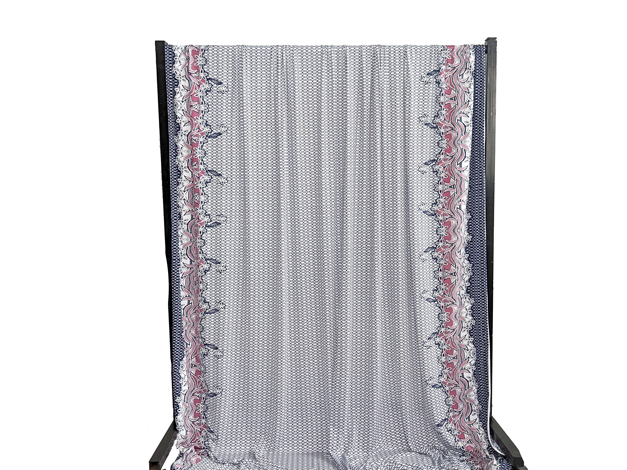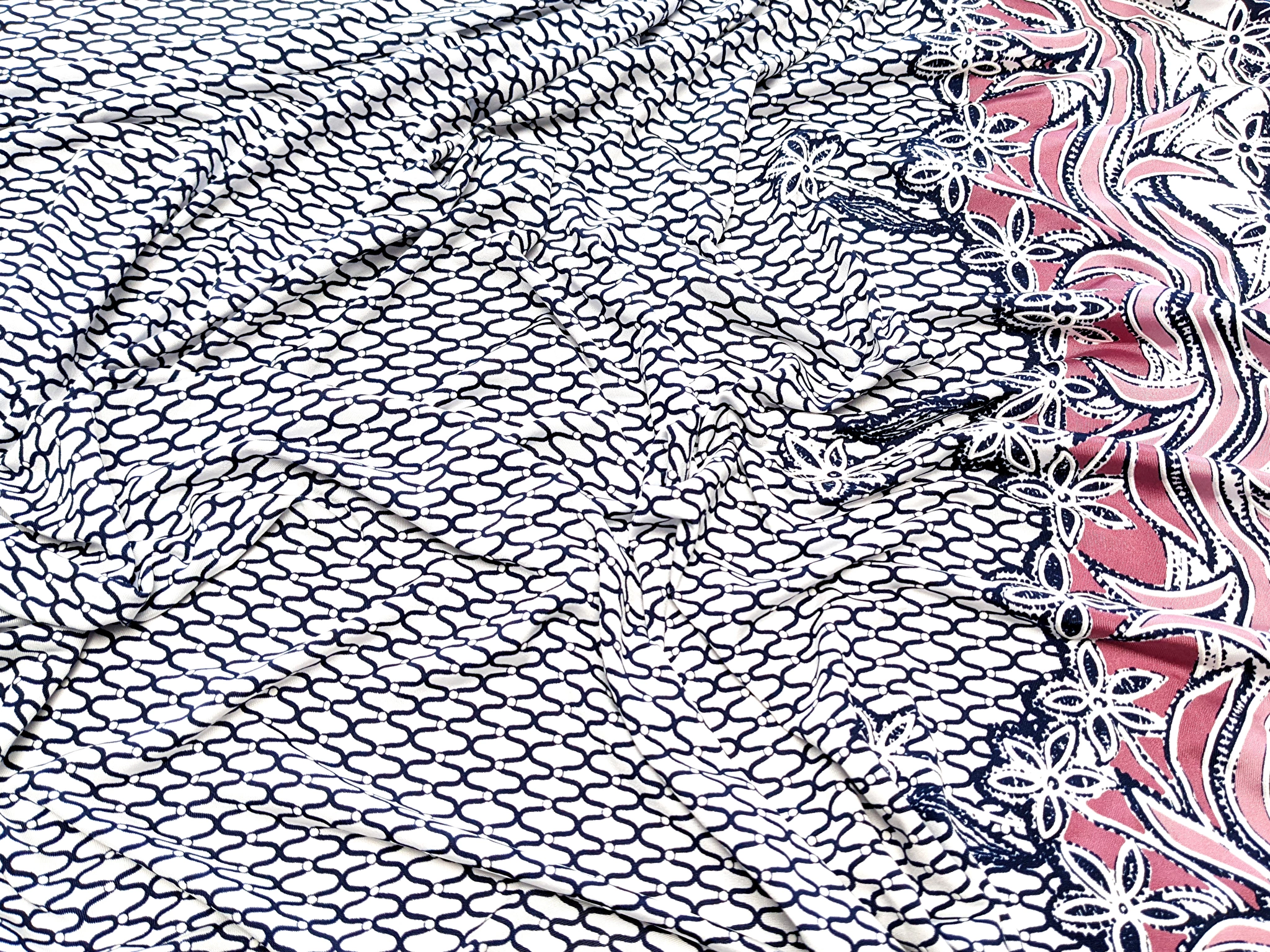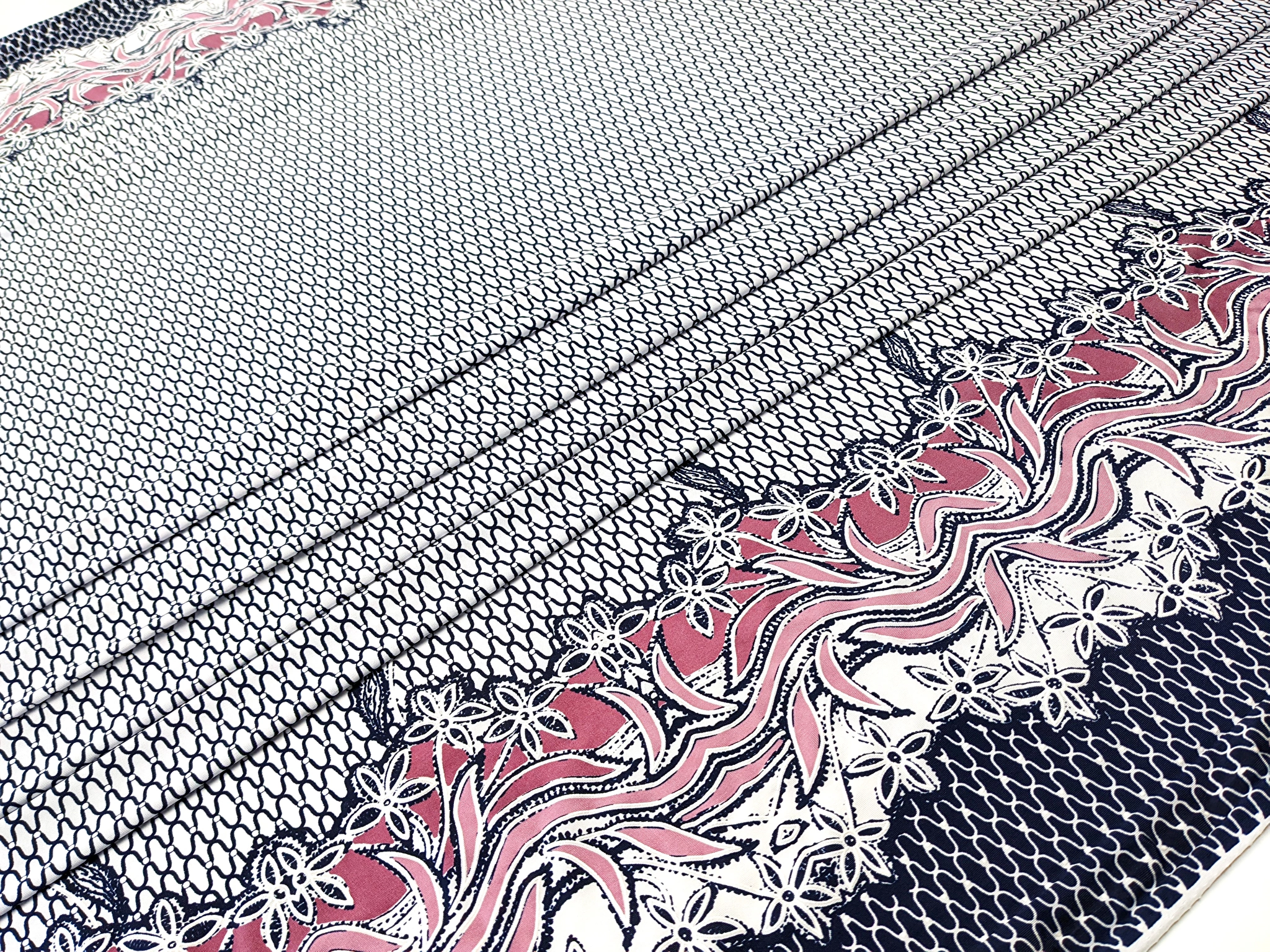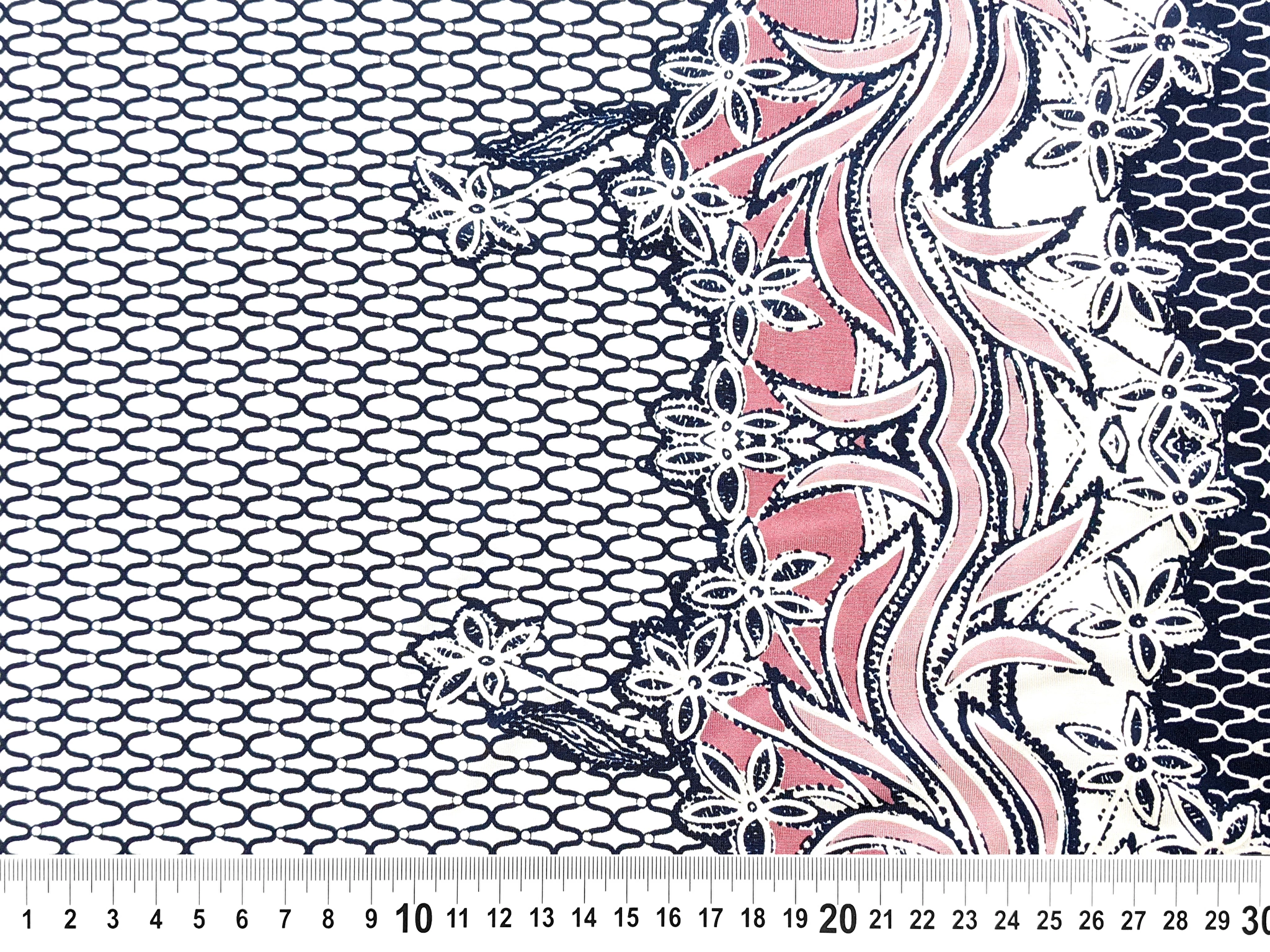 Масло лакр - тонкий, приємний на дотик, ковзний, падучий трикотаж. На лицьовій стороні полотна на малюнок принта нанесений контур у вигляді дрібних крапочок білого кольору, виворіт - рівний і гладкий. Трикотаж має приємний ефект, що охолоджує, еластичний, добре тягнеться в обидві сторони, не мнеться, непрозорий на тілі, добре драпірується.