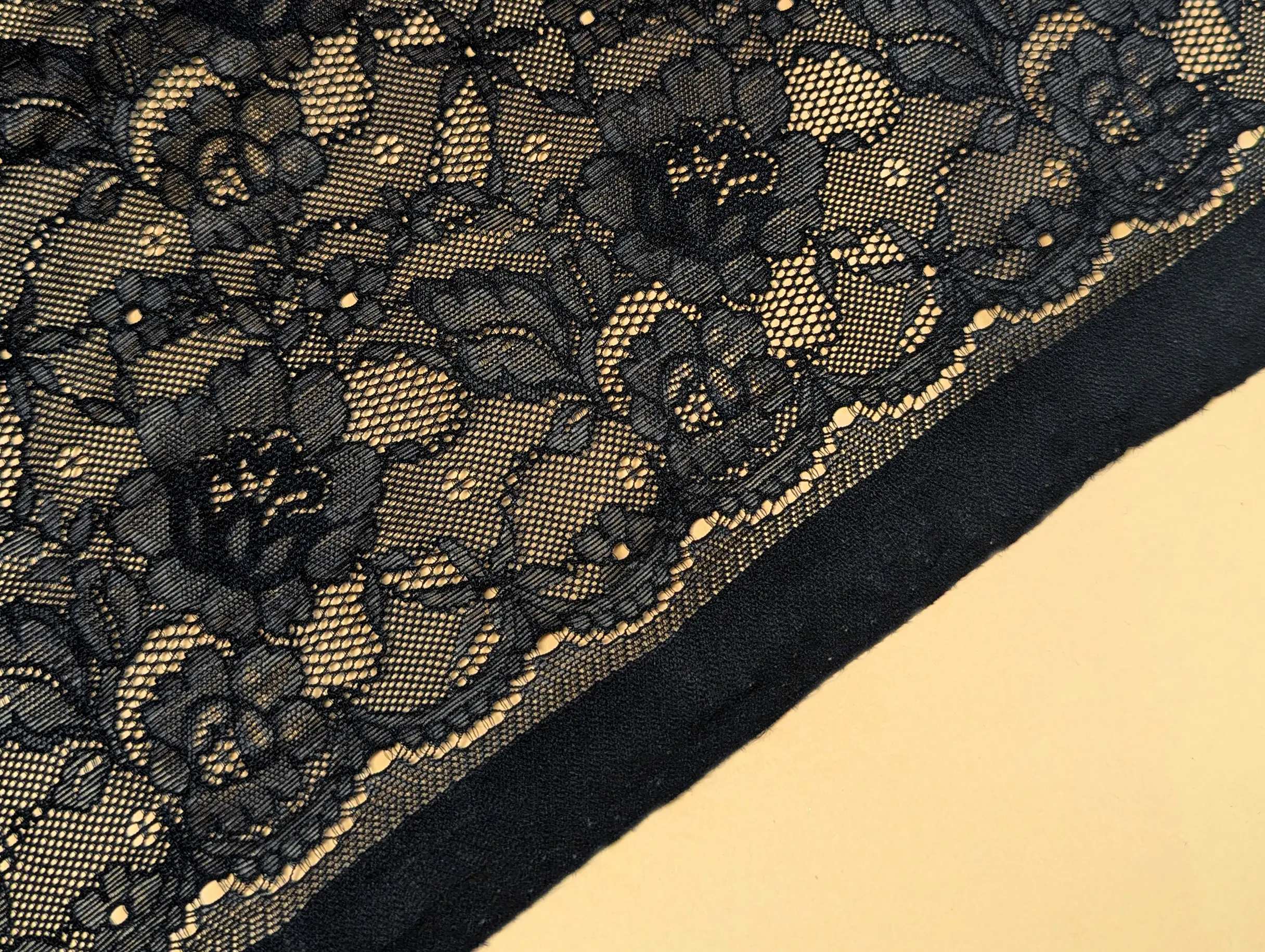 Мереживо Венеція квітковий сад, чорний (відріз 1,9 м)