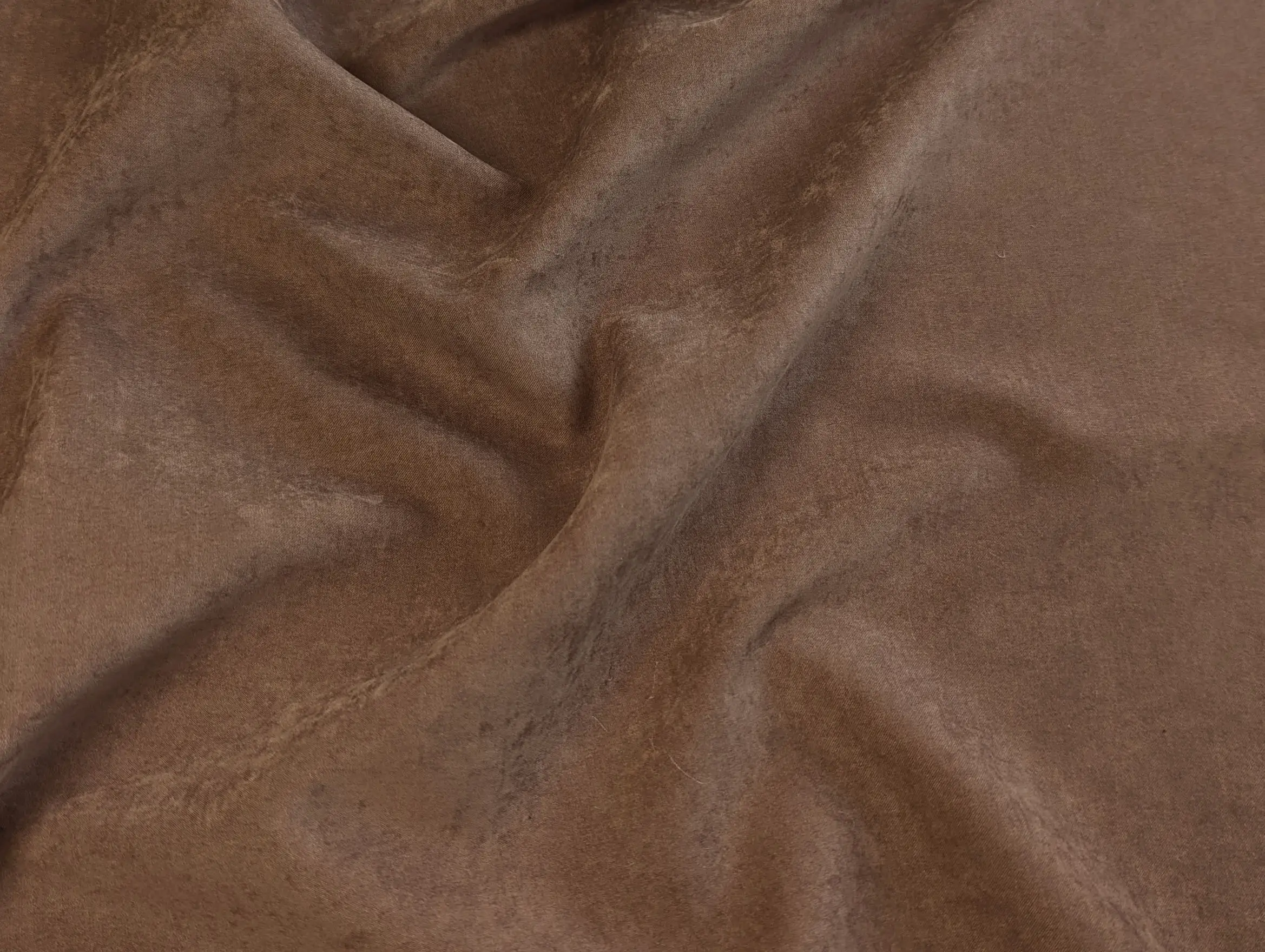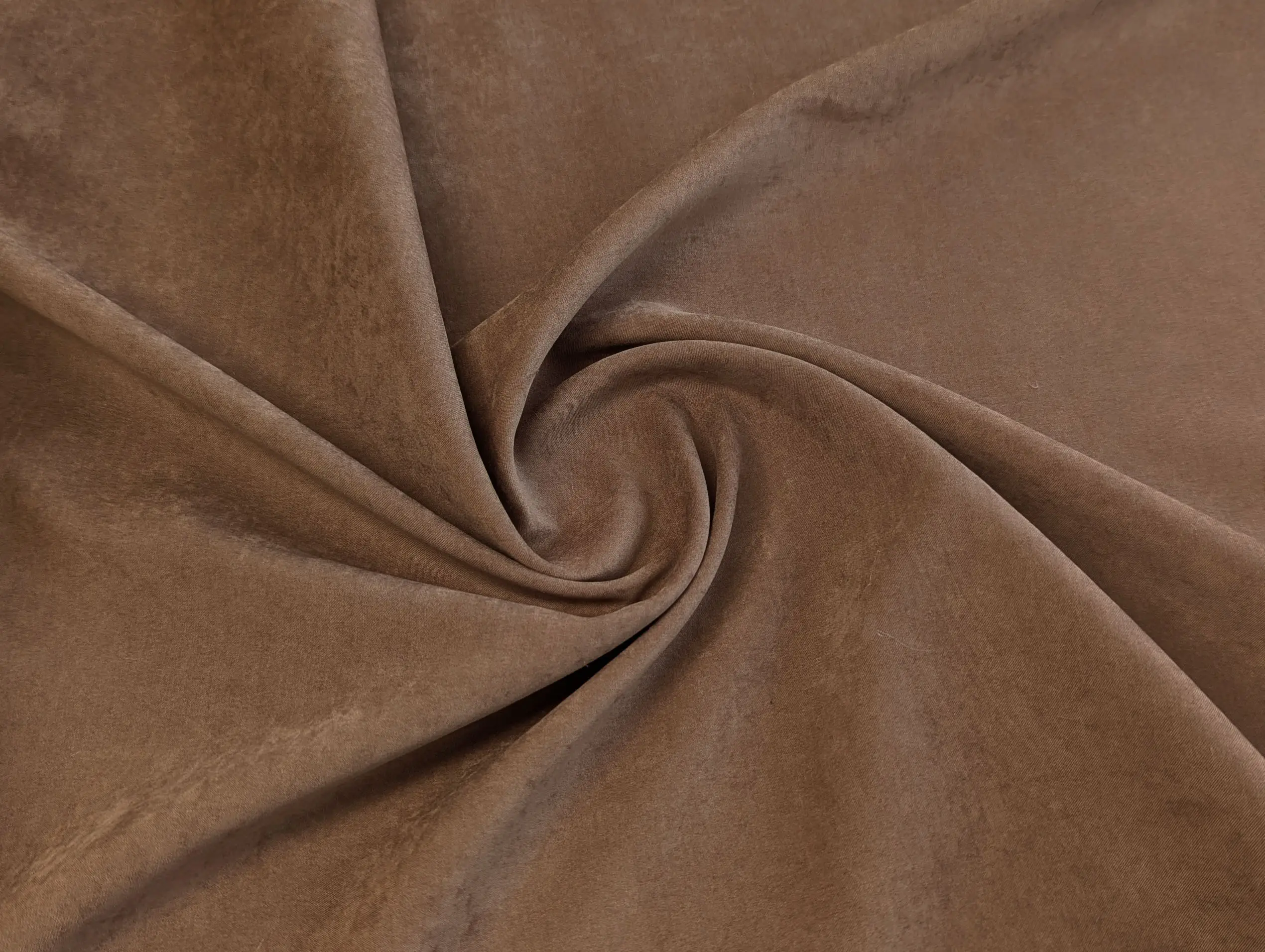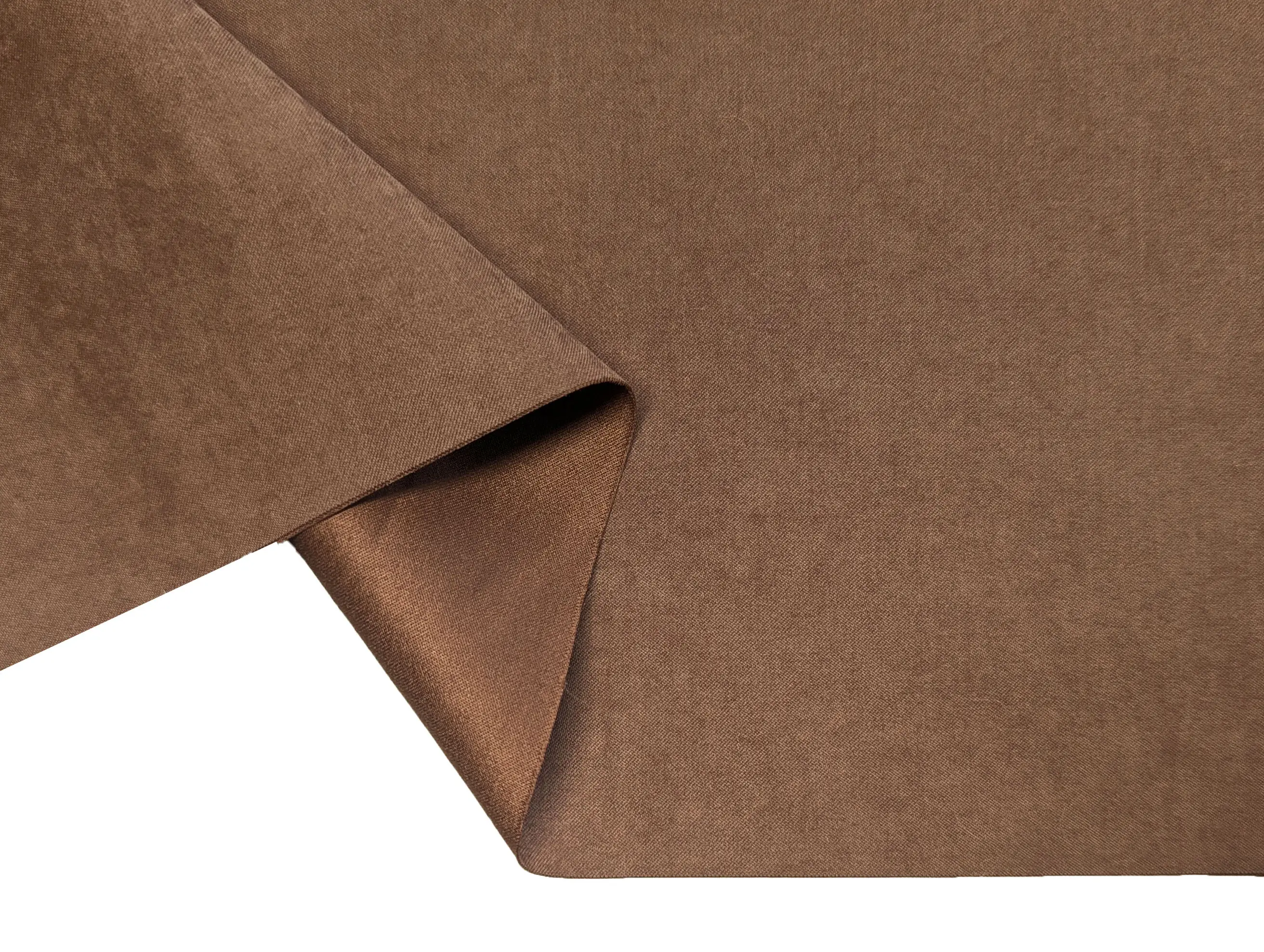 Мікрофібра - м'який, приємний на дотик матеріал, що поєднує в собі комфорт і естетичність. Лицьова сторона має делікатну оксамитову текстуру, що створює легкий матовий блиск і приємні тактильні відчуття. Виворітна сторона тканини виконана з гладкого сатину з характерним м'яким блиском, її можна використовувати в підворотах, декоративних манжетах, швах, окантовках. Матеріал не тягнеться, злегка мнеться, в драпіровці тримає форму, має міцність і практичність.