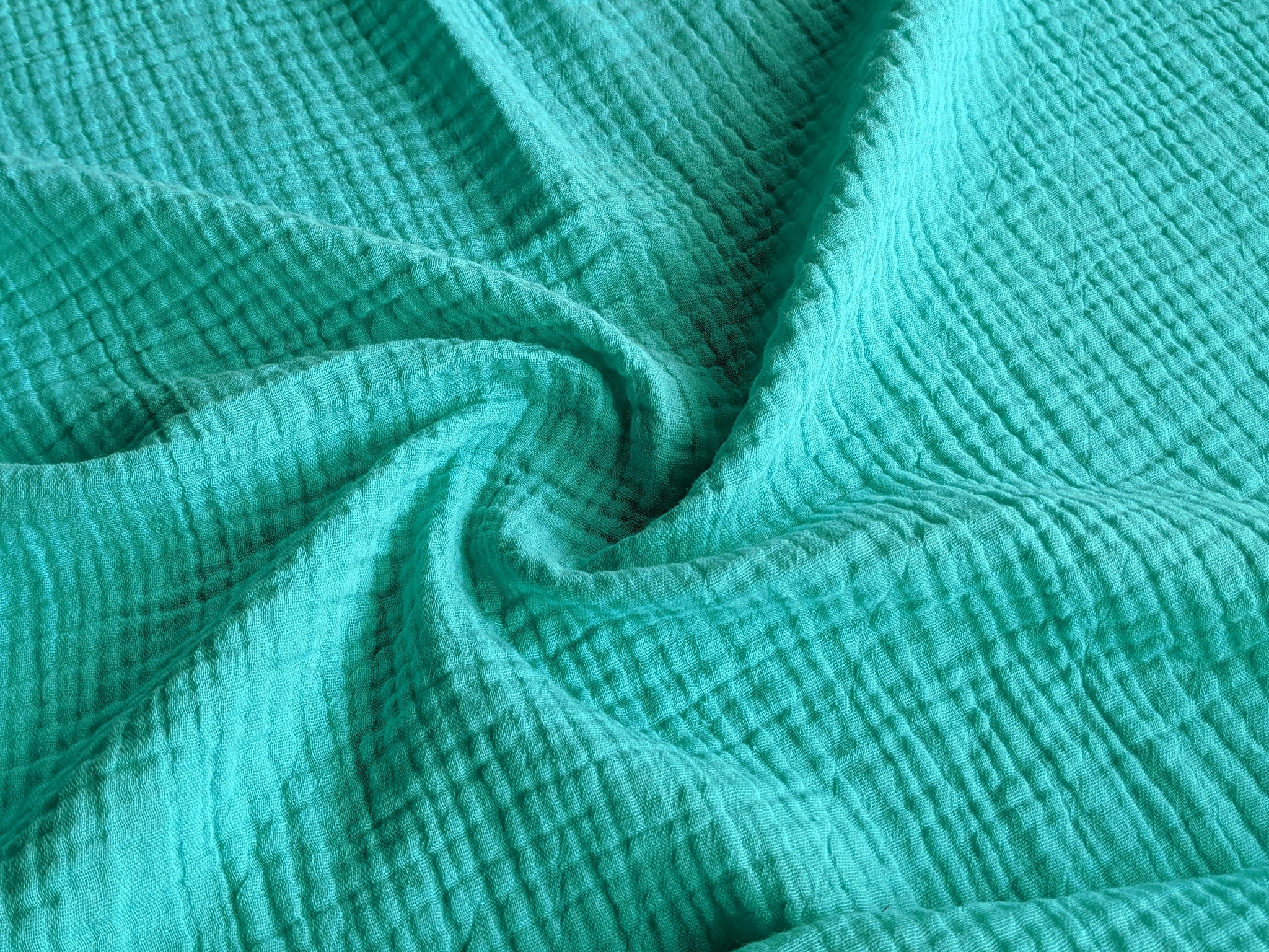 Муслін - це двошарова бавовна, приємна, м'яка до тіла тканина. Структура полотна злегка піджата, щільна, але має легкий просвіт, вироби з нього будуть дуже зносостійкими. Абсолютно не парить в жарку погоду, воно легке і практично невагоме. Полотно муслін не мнеться, не вимагає додаткового догляду. Відмінно підійде для пошиття літніх суконь, комбінезонів, блуз як для дорослих так і для дітей.