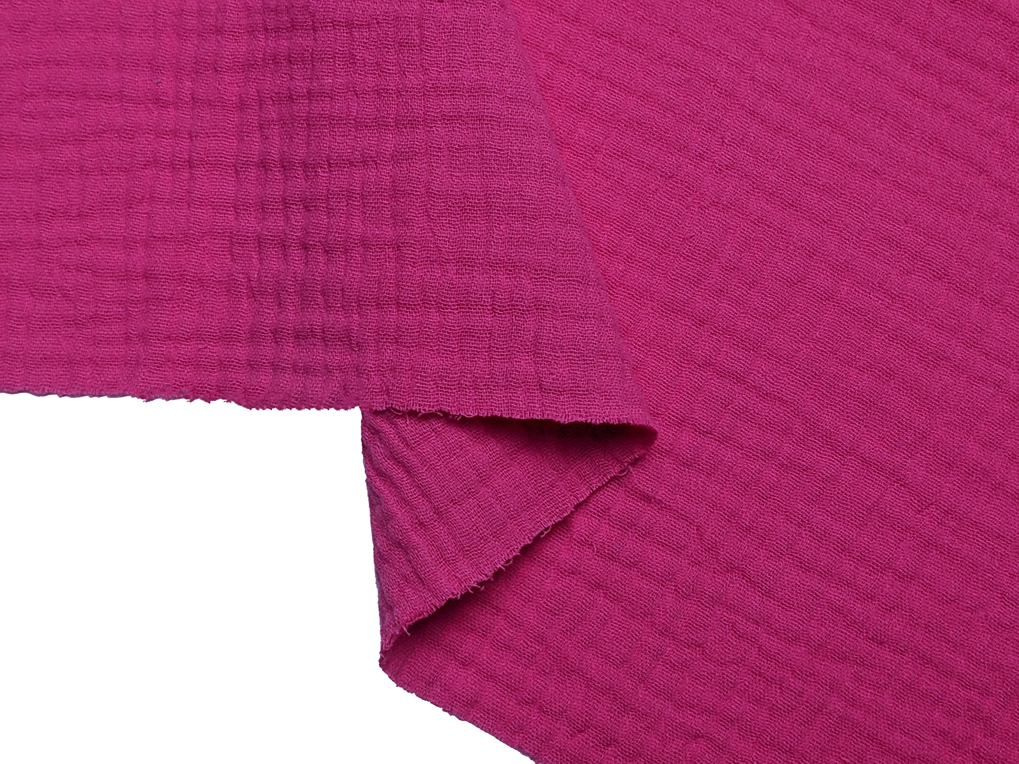 Муслін - це двошарова бавовна, приємна, м'яка до тіла тканина. Структура полотна злегка піджата, щільна, але має легкий просвіт, вироби з нього будуть дуже зносостійкими. Абсолютно не парить в жарку погоду, воно легке і практично невагоме. Полотно муслін не мнеться, не вимагає додаткового догляду. Відмінно підійде для пошиття літніх суконь, комбінезонів, блуз як для дорослих так і для дітей.
