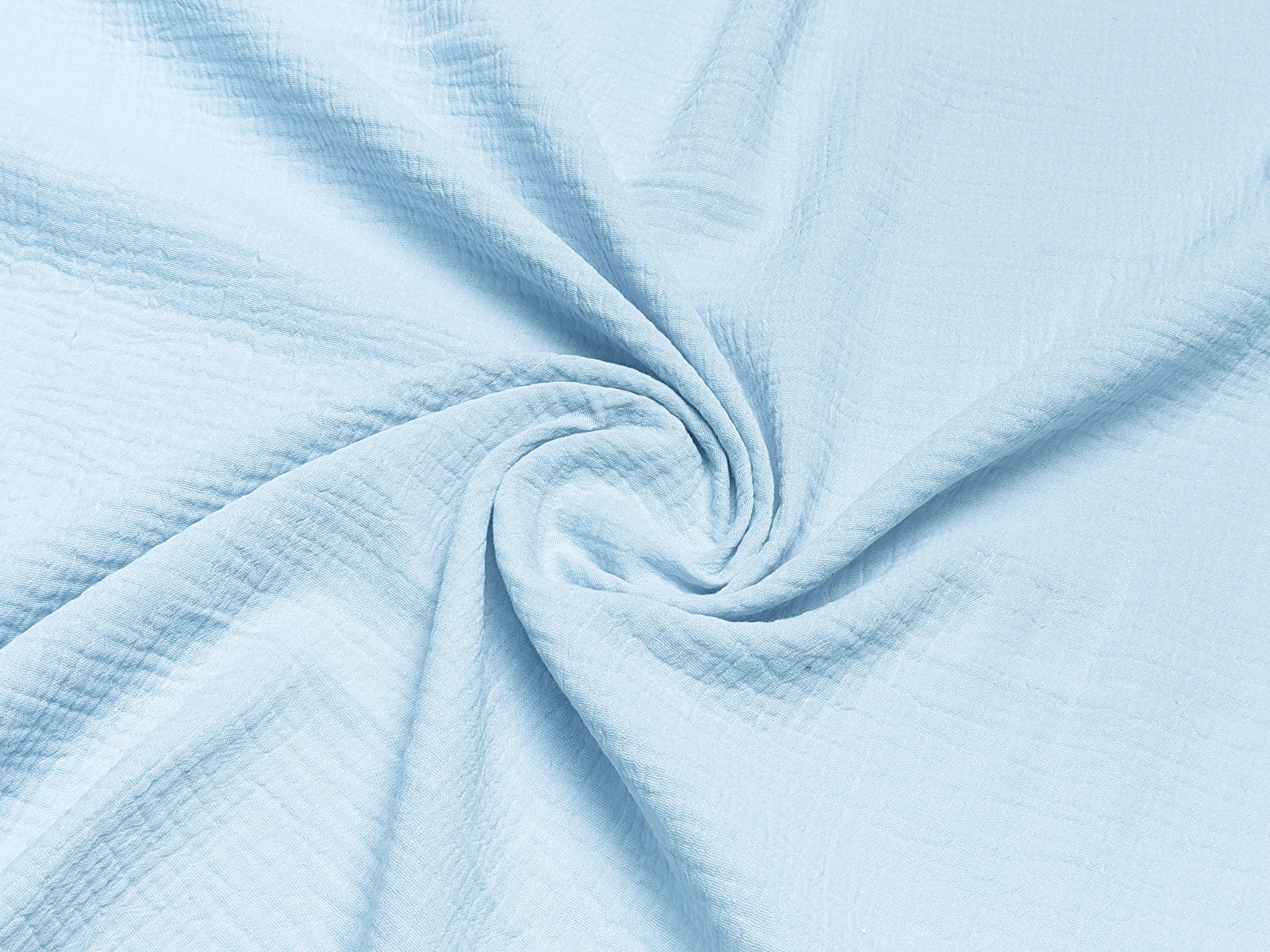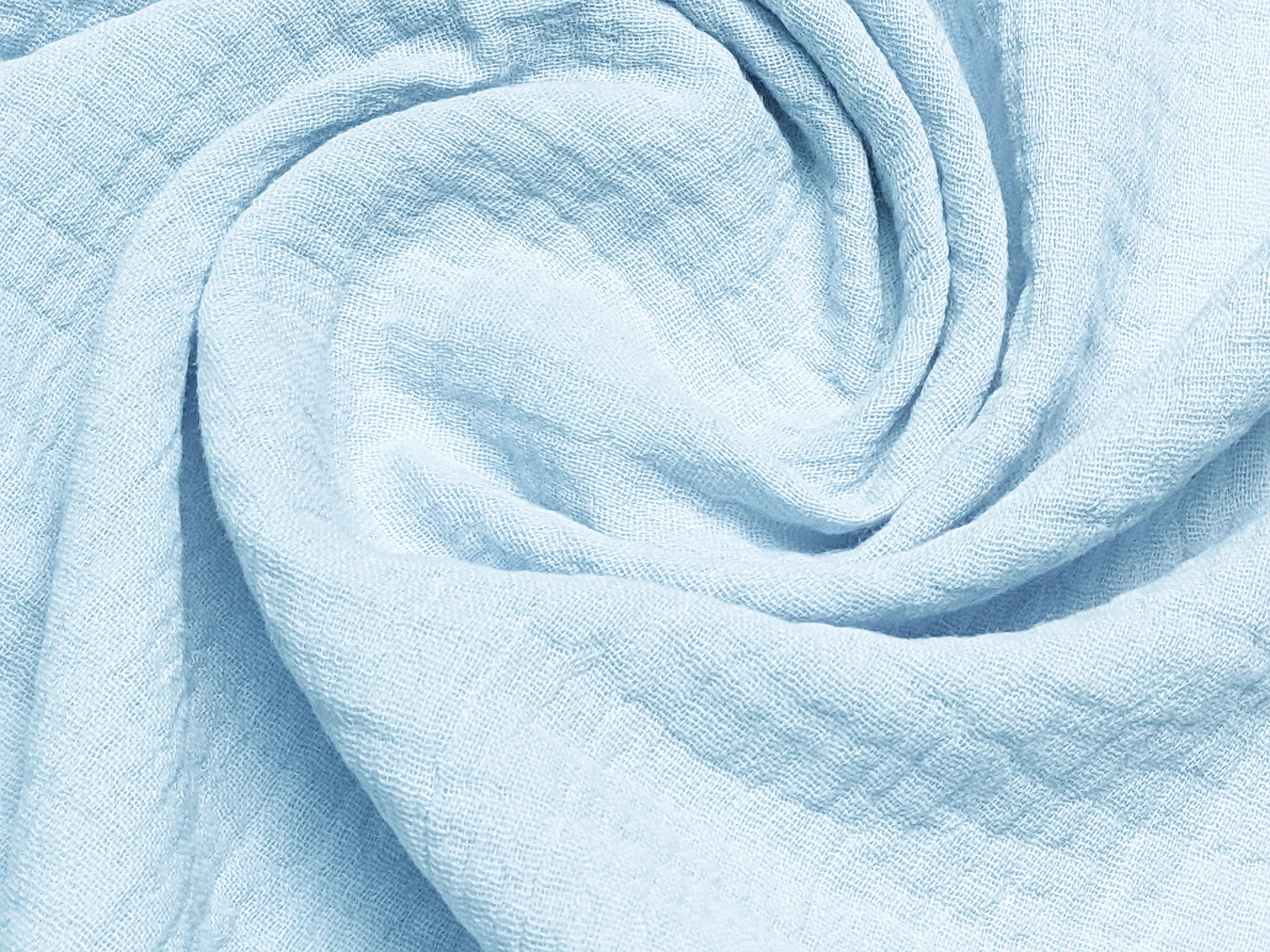 Муслін - це двошарова бавовна, приємна, м'яка до тіла тканина. Структура полотна злегка піджата, щільна, але має легкий просвіт, вироби з нього будуть дуже зносостійкими. Абсолютно не парить в жарку погоду, воно легке і практично невагоме. Полотно муслін не мнеться, не вимагає додаткового догляду. Відмінно підійде для пошиття літніх суконь, комбінезонів, блуз як для дорослих так і для дітей.
