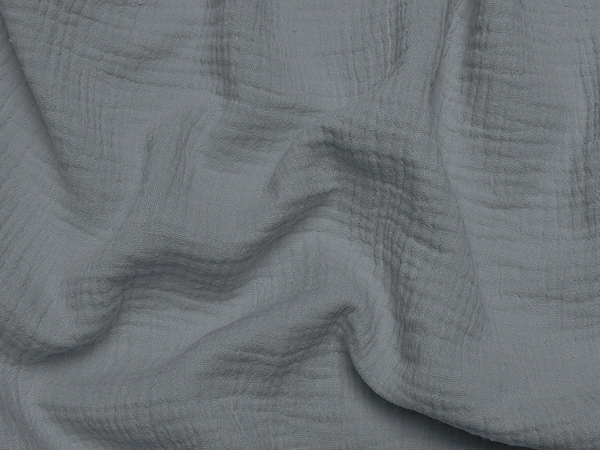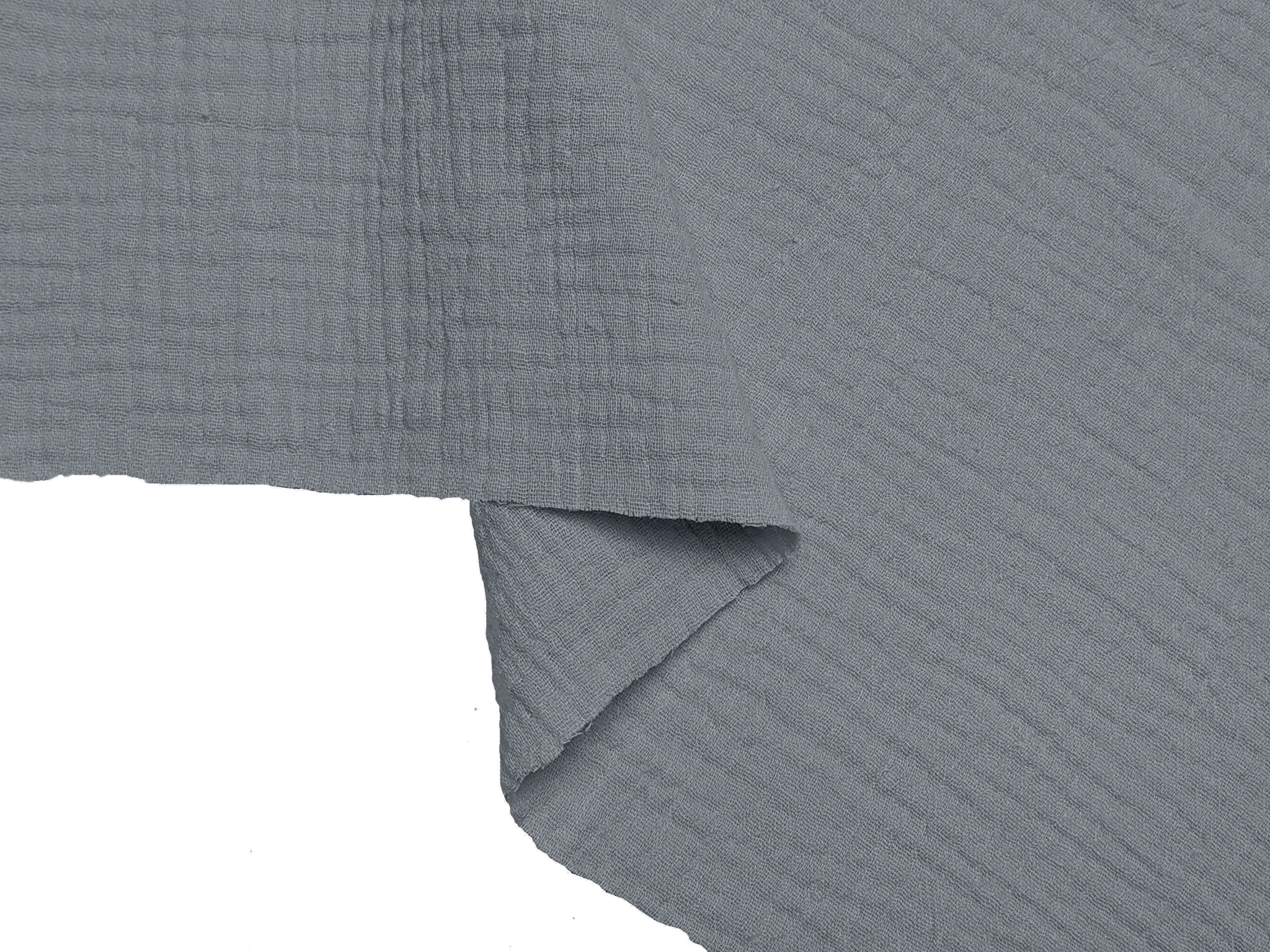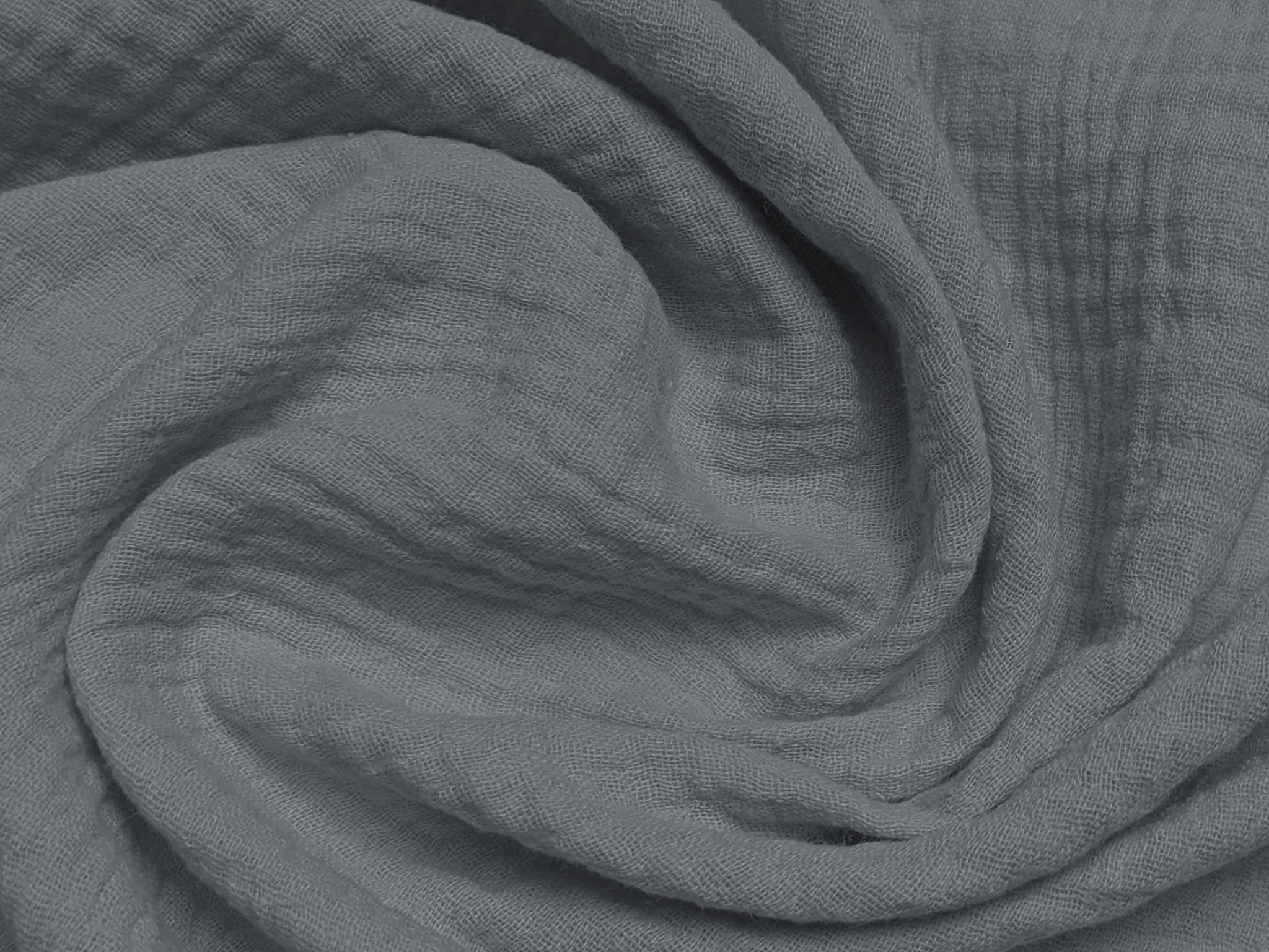 Муслін - це двошарова бавовна, приємна, м'яка до тіла тканина. Структура полотна злегка піджата, щільна, але має легкий просвіт, вироби з нього будуть дуже зносостійкими. Абсолютно не парить в жарку погоду, воно легке і практично невагоме. Полотно муслін не мнеться, не вимагає додаткового догляду. Відмінно підійде для пошиття літніх суконь, комбінезонів, блуз як для дорослих так і для дітей.