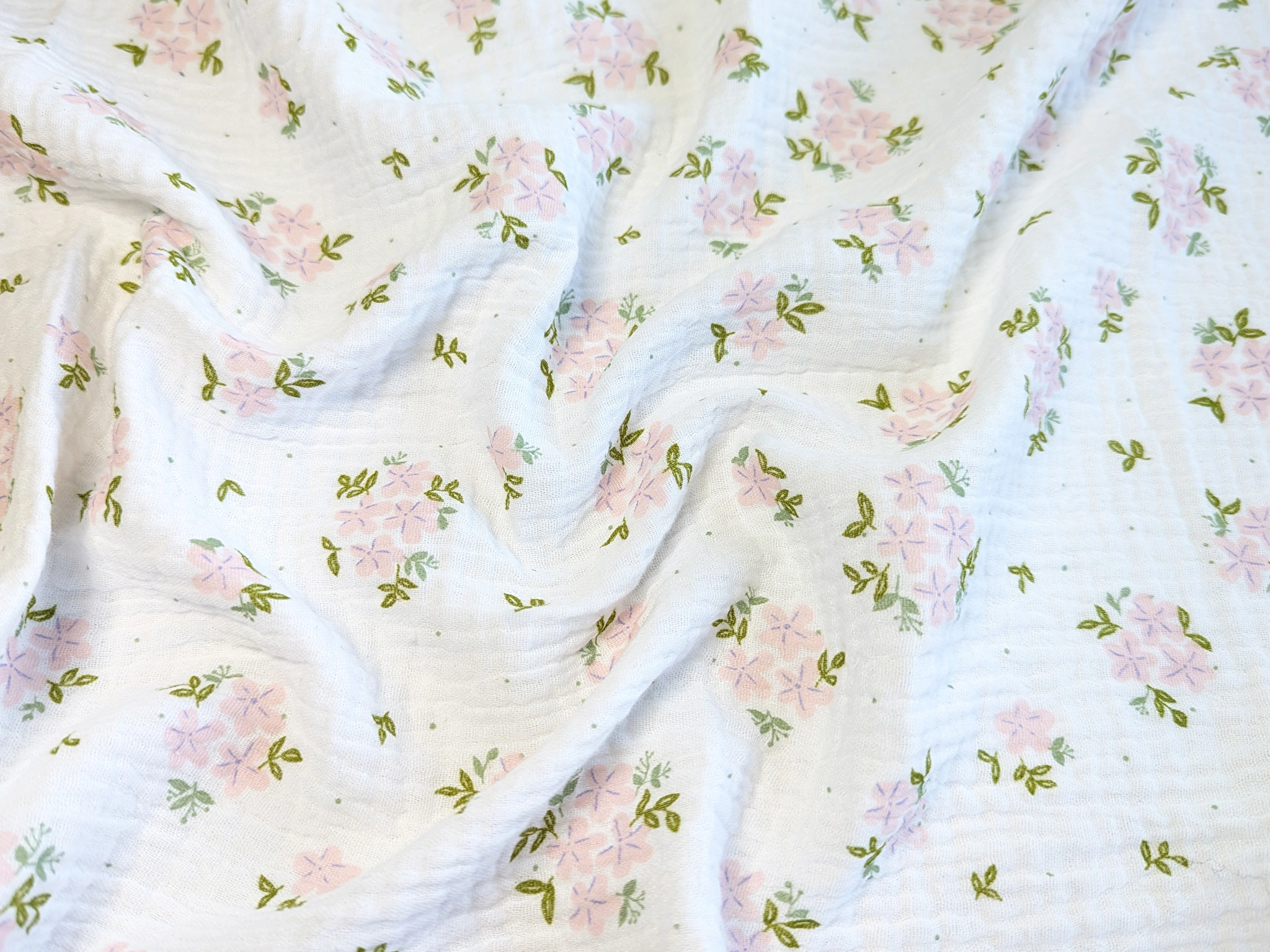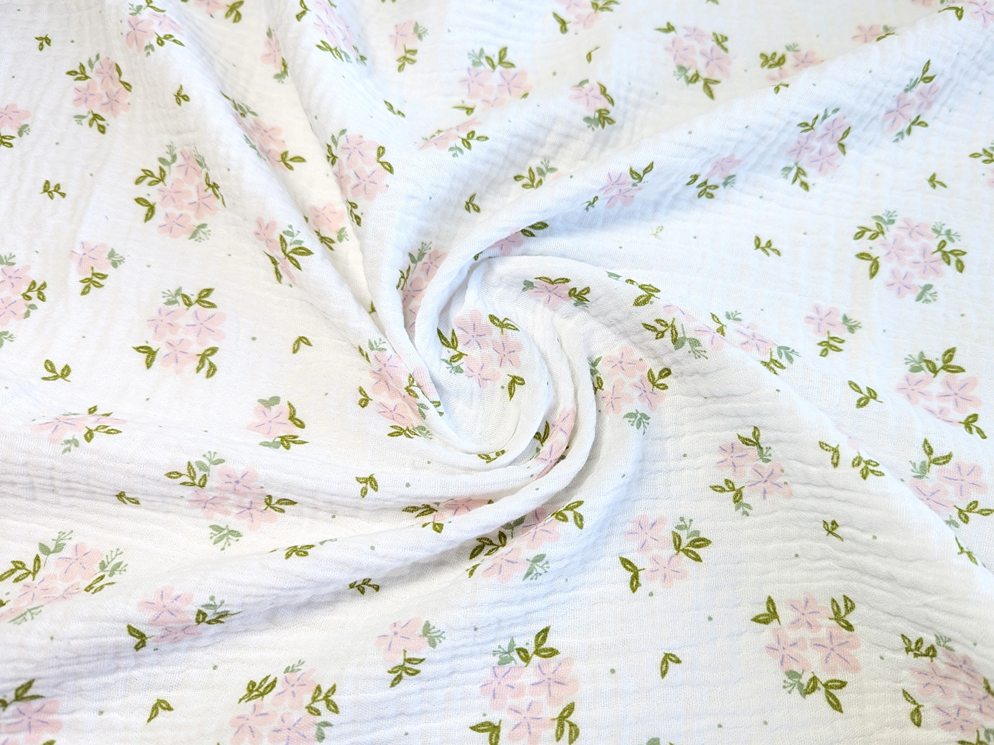 Муслін - це двошарова бавовна, приємна, м'яка до тіла тканина. Структура полотна злегка піджата, щільна, але має легкий просвіт, вироби з нього будуть дуже зносостійкими. Абсолютно не парить в жарку погоду, воно легке і практично невагоме. Полотно муслін не мнеться, не вимагає додаткового догляду. Відмінно підійде для пошиття літніх суконь, комбінезонів, блуз як для дорослих так і для дітей.