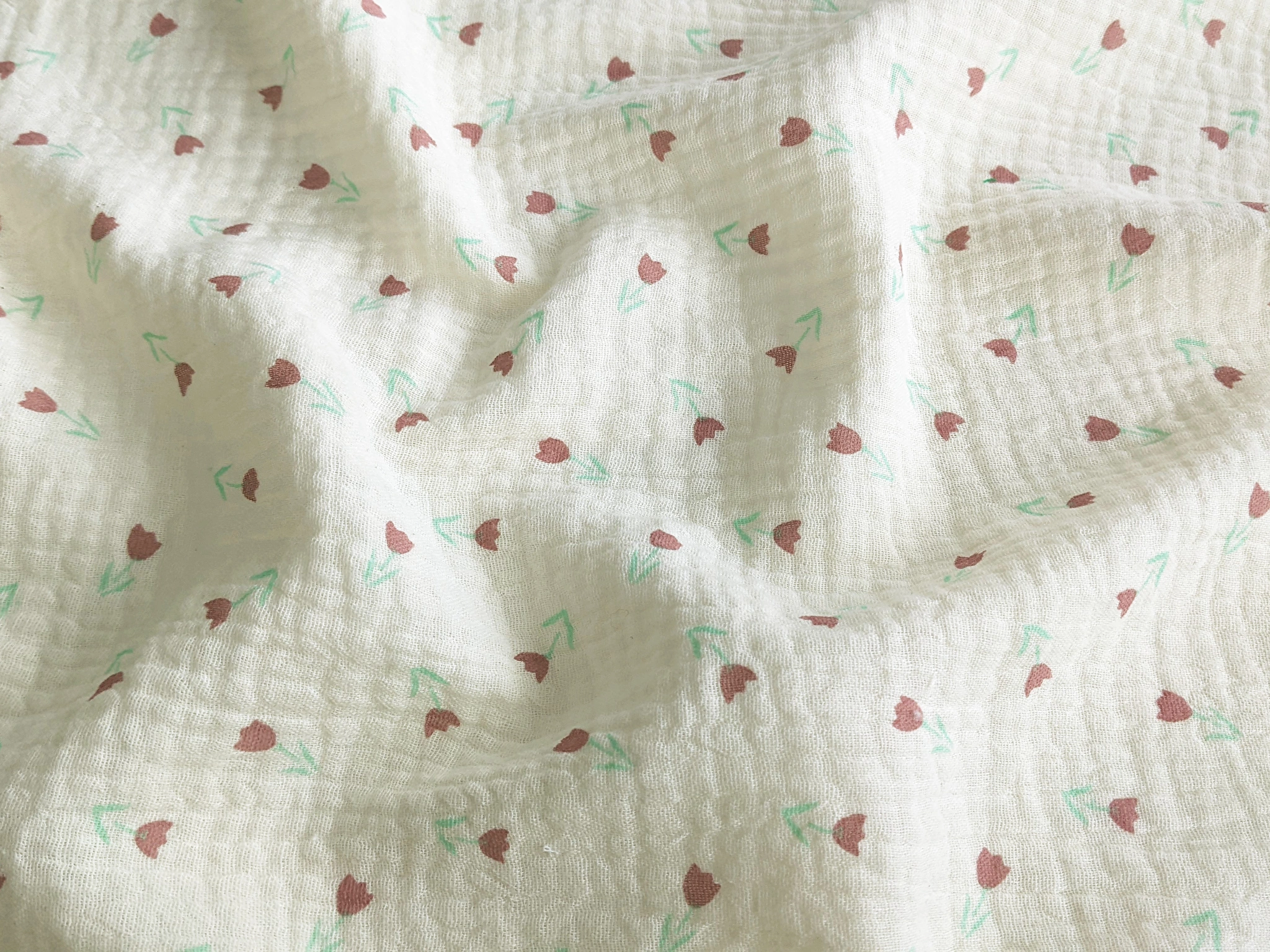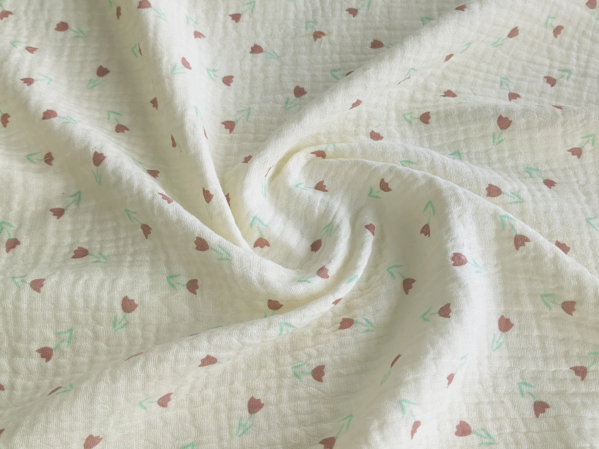 Муслін малюнок дрібні тюльпани, кремовий