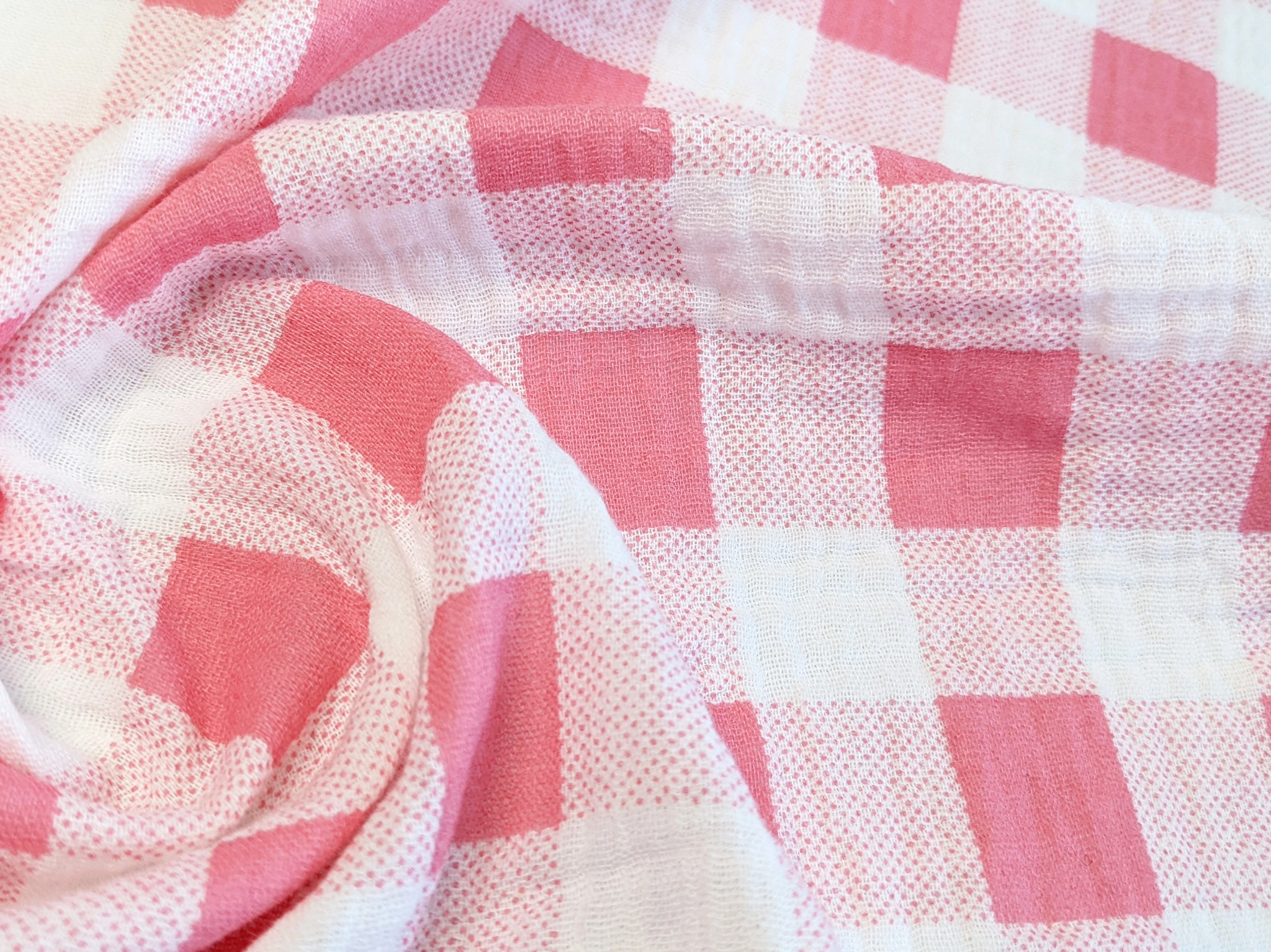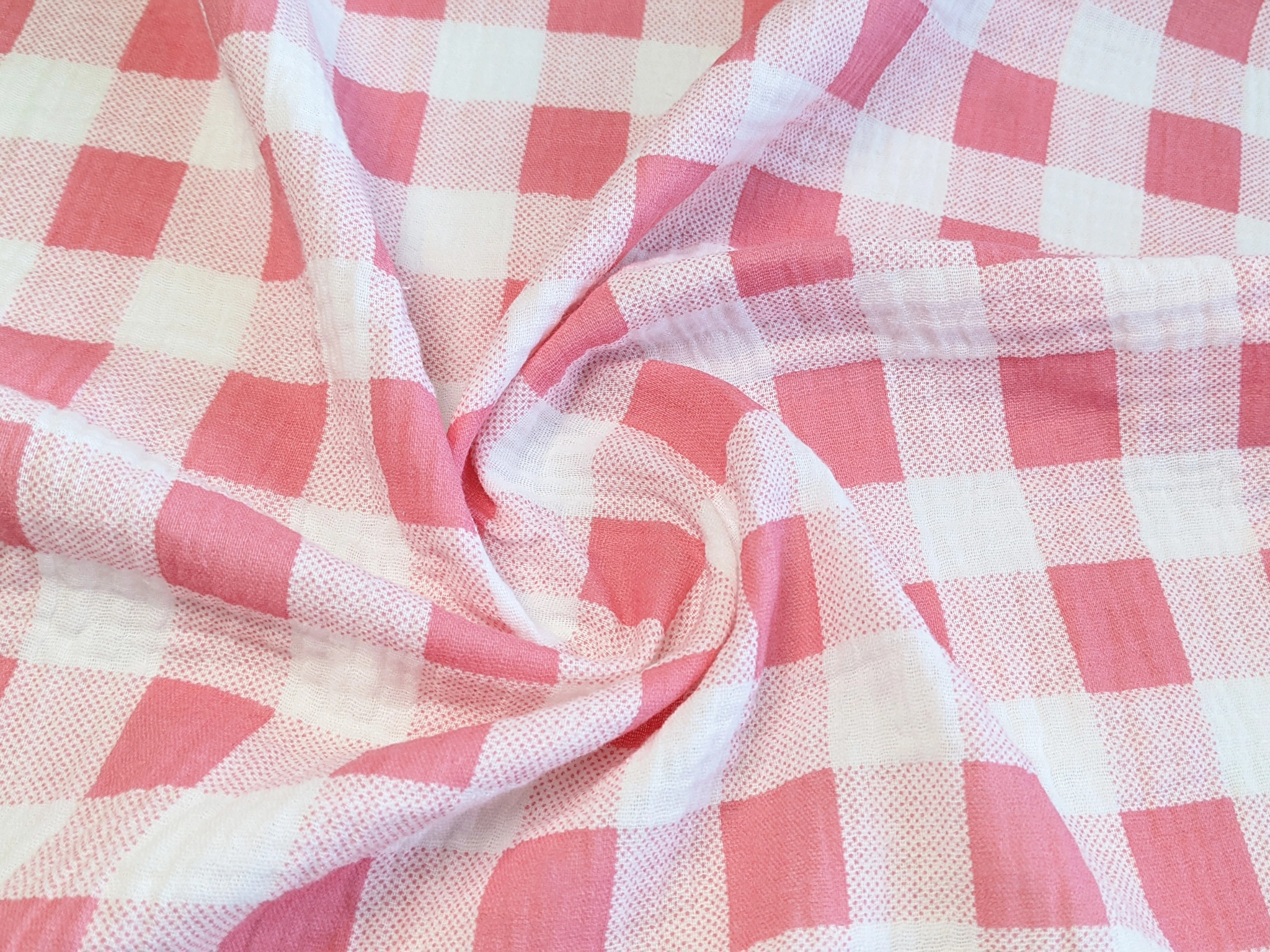 Муслін - це двошарова бавовна, приємна, м'яка до тіла тканина. Структура полотна злегка піджата, щільна, але має легкий просвіт, вироби з нього будуть дуже зносостійкими. Абсолютно не парить в жарку погоду, воно легке і практично невагоме. Полотно муслін не мнеться, не вимагає додаткового догляду. Відмінно підійде для пошиття літніх суконь, комбінезонів, блуз як для дорослих так і для дітей.