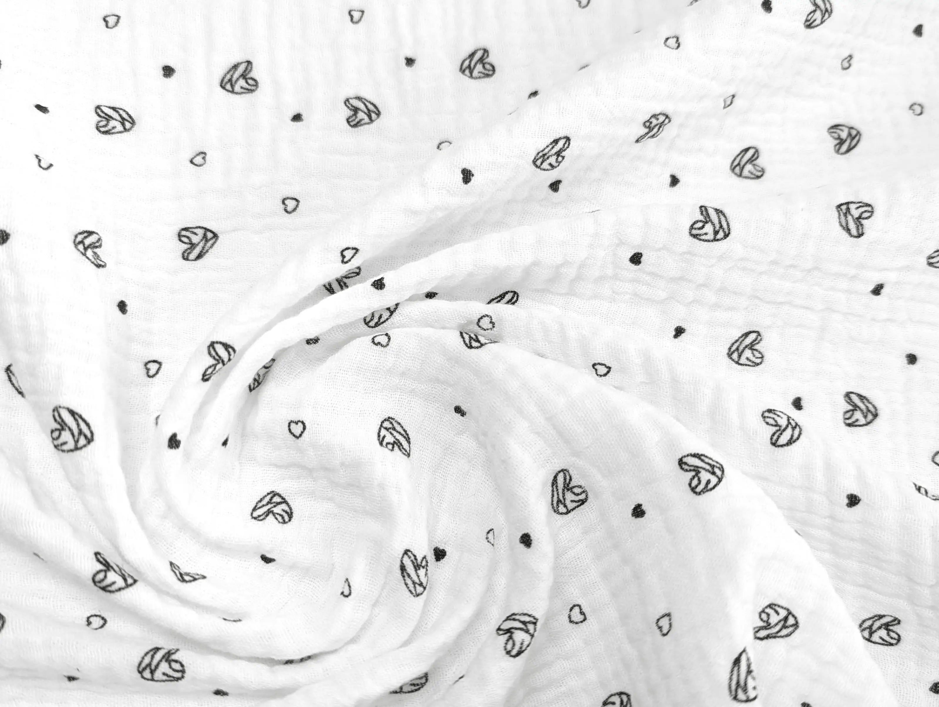 Муслін малюнок сердечки, молочний з чорним