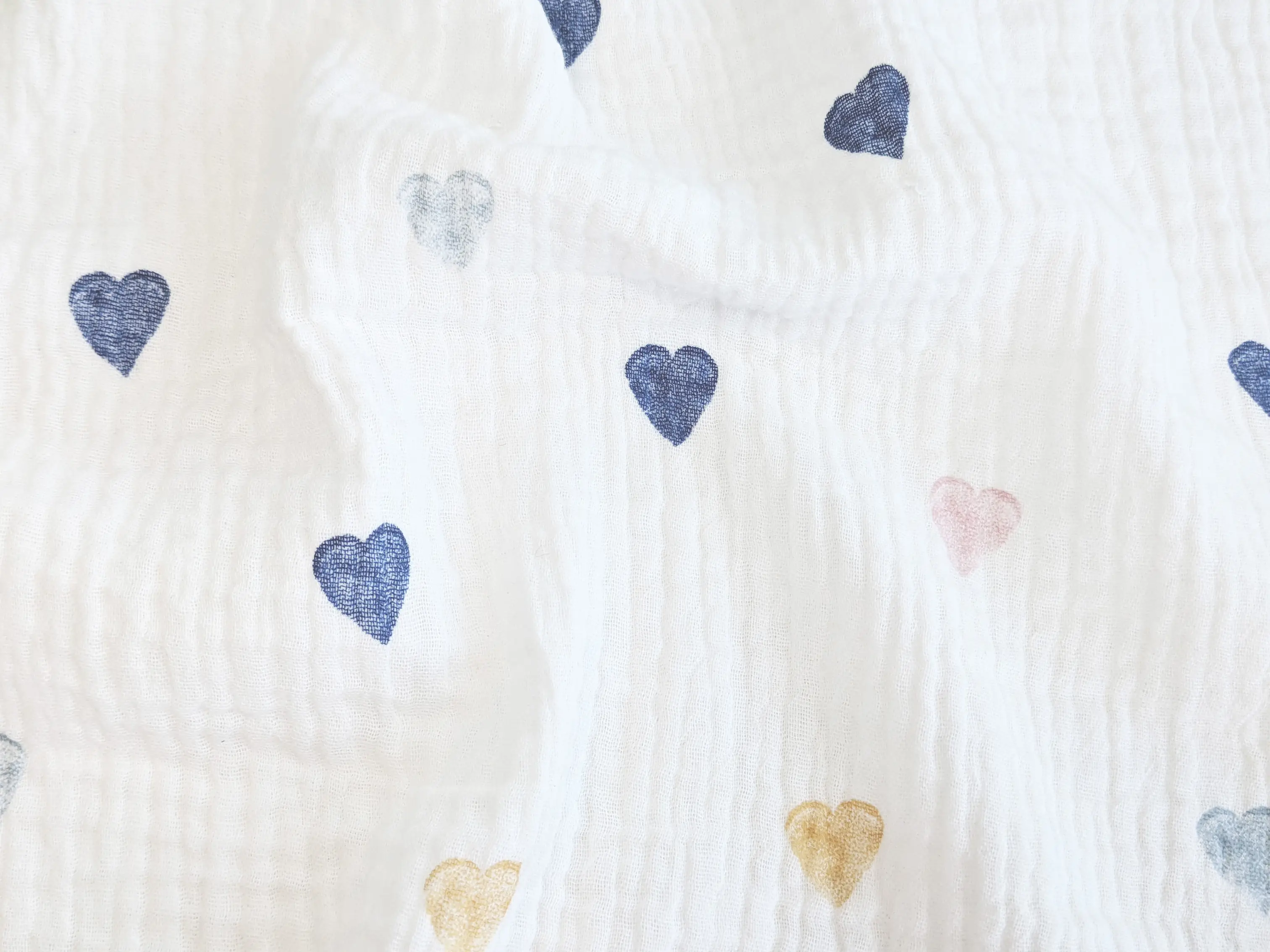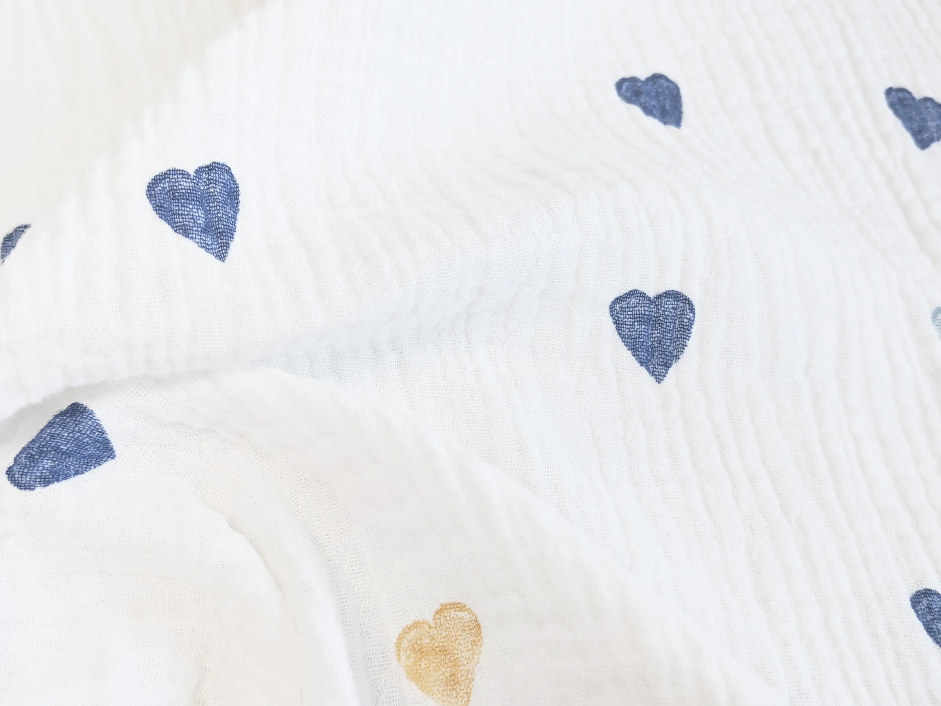 Муслін - це двошарова бавовна, приємна, м'яка до тіла тканина. Структура полотна злегка піджата, щільна, але має легкий просвіт, вироби з нього будуть дуже зносостійкими. Абсолютно не парить в жарку погоду, воно легке і практично невагоме. Полотно муслін не мнеться, не вимагає додаткового догляду. Відмінно підійде для пошиття літніх суконь, комбінезонів, блуз як для дорослих так і для дітей.