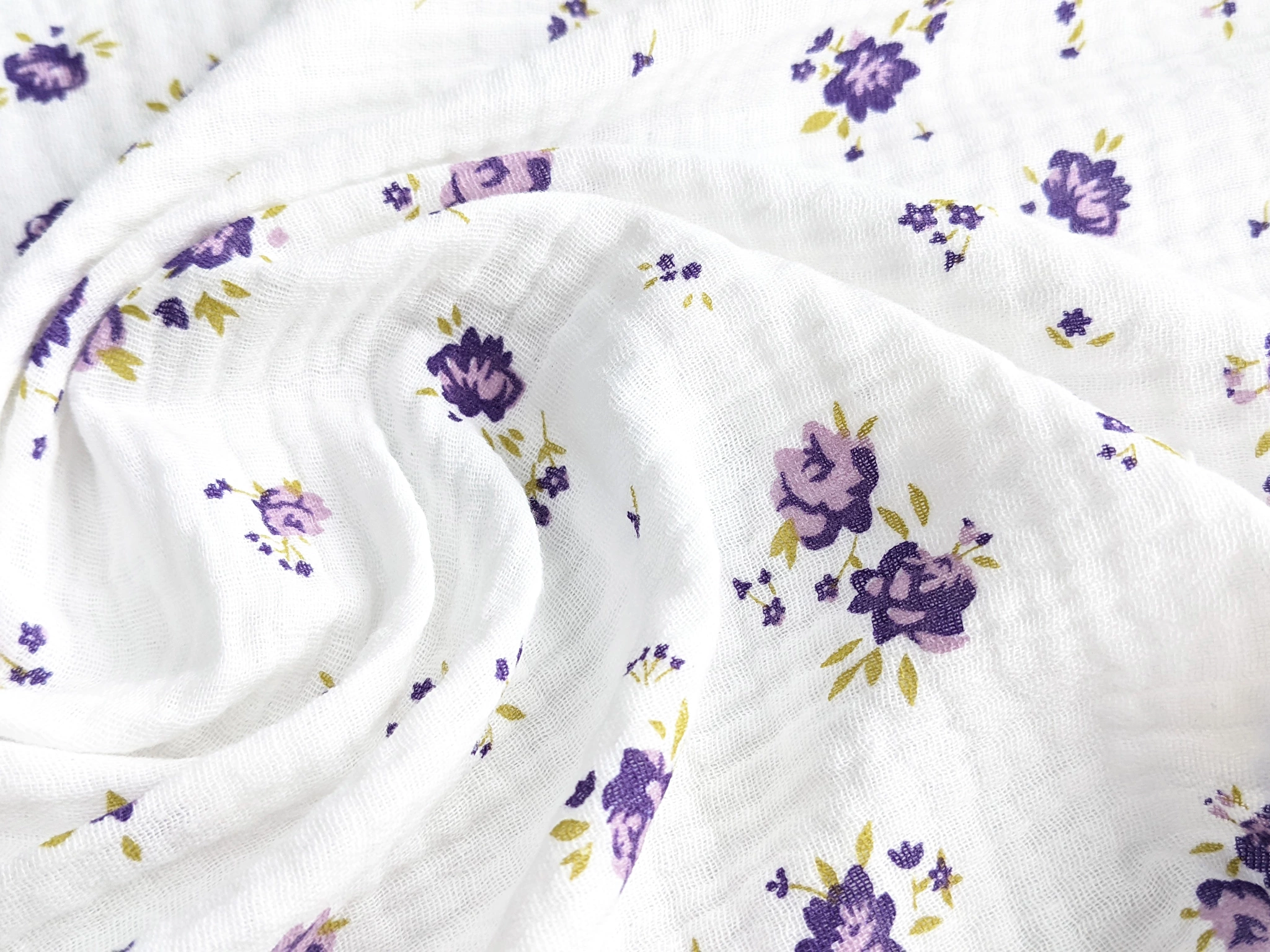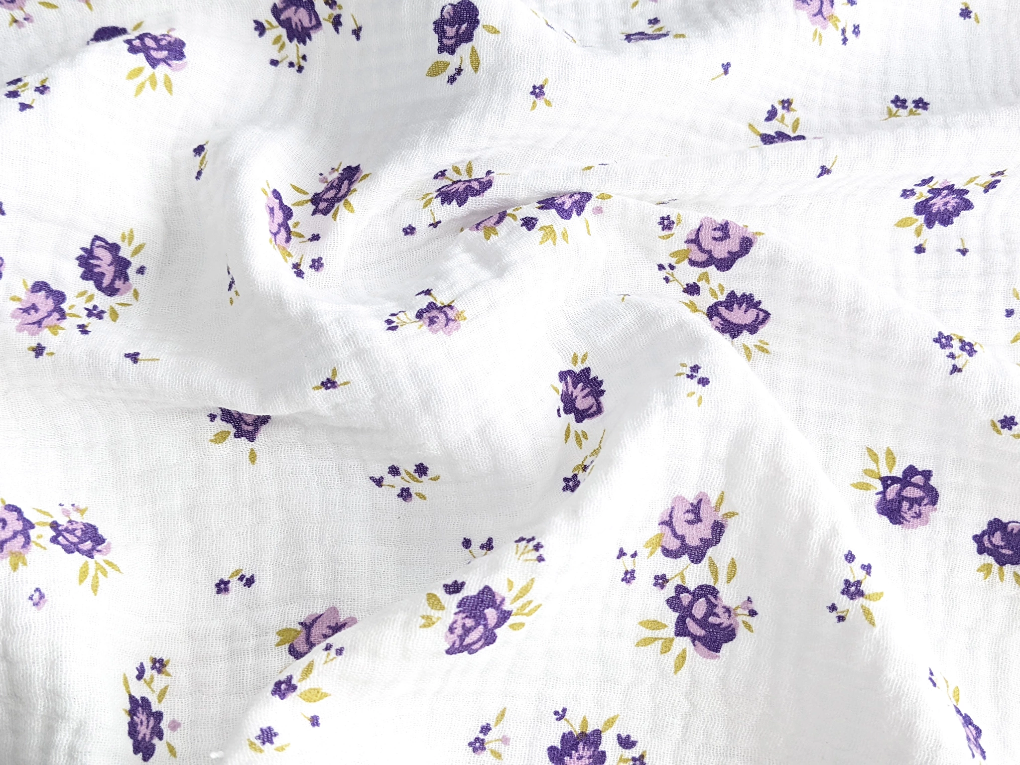 Муслін - це двошарова бавовна, приємна, м'яка до тіла тканина. Структура полотна злегка піджата, щільна, але має легкий просвіт, вироби з нього будуть дуже зносостійкими. Абсолютно не парить в жарку погоду, воно легке і практично невагоме. Полотно муслін не мнеться, не вимагає додаткового догляду. Відмінно підійде для пошиття літніх суконь, комбінезонів, блуз як для дорослих так і для дітей.