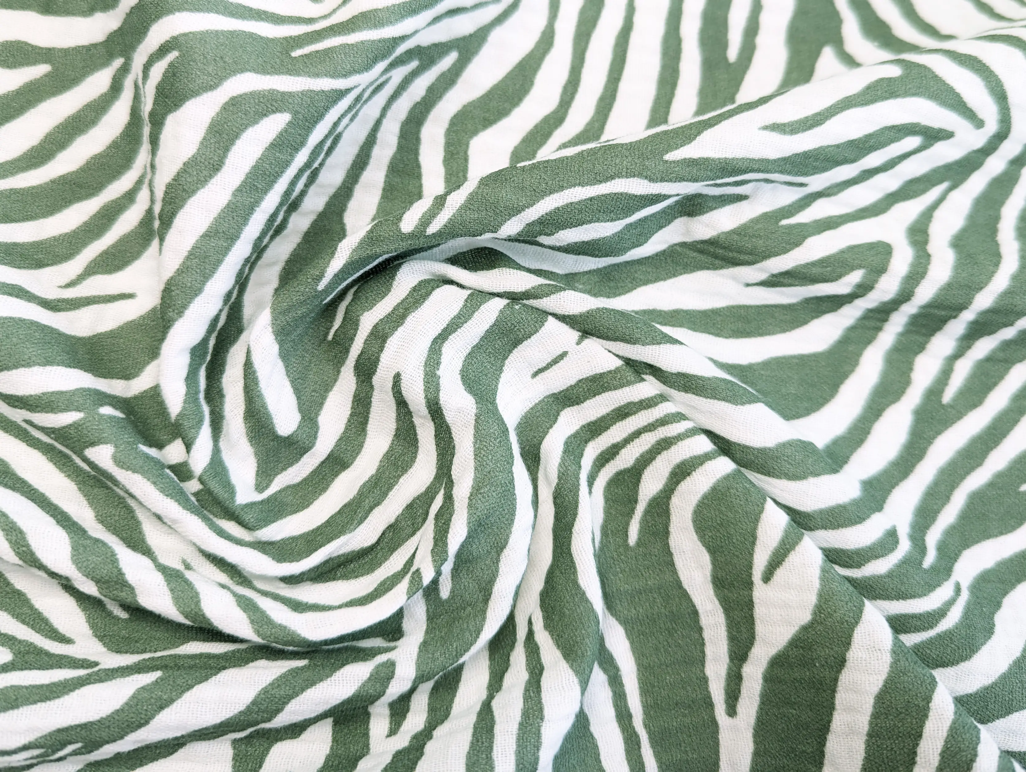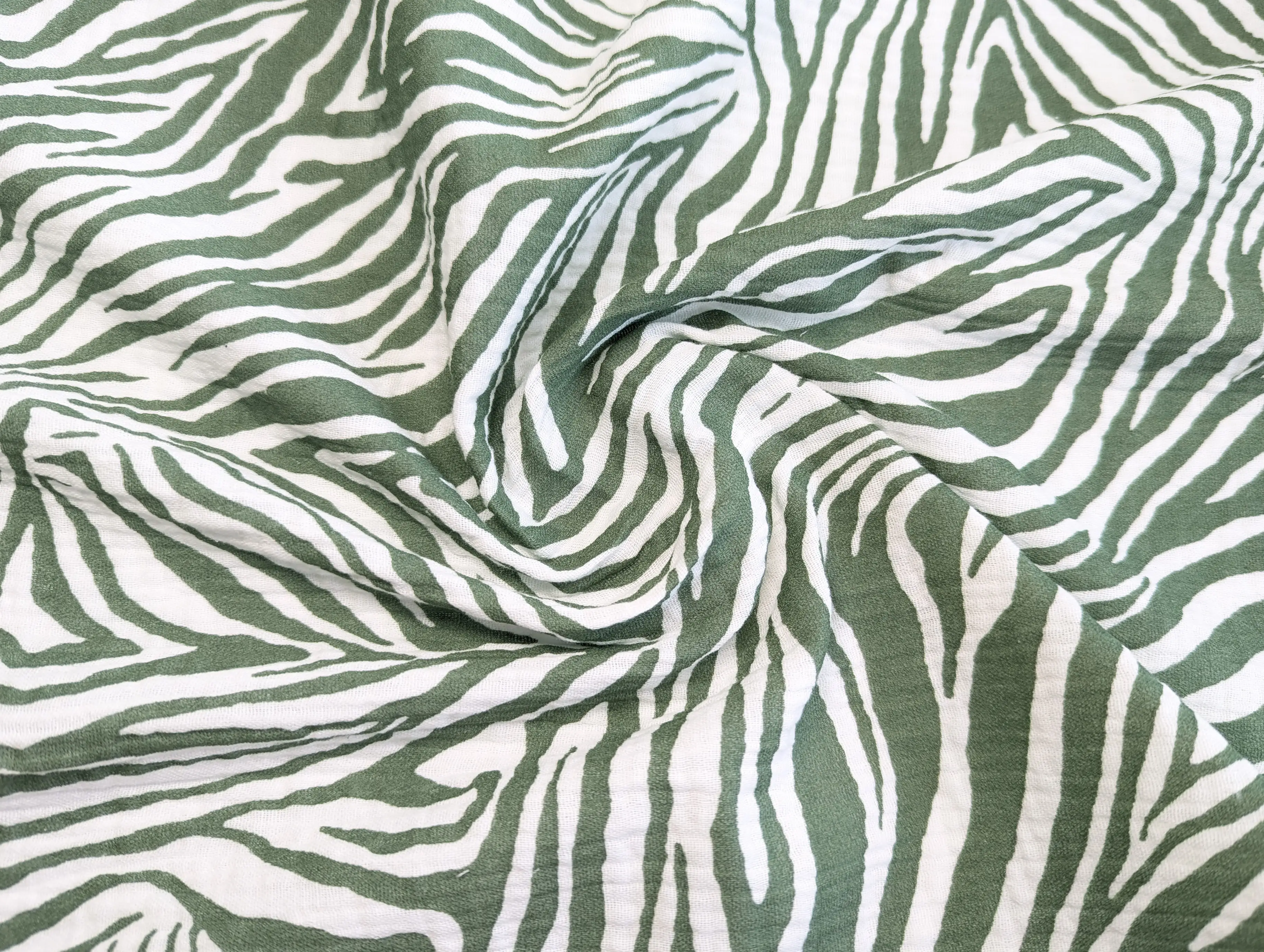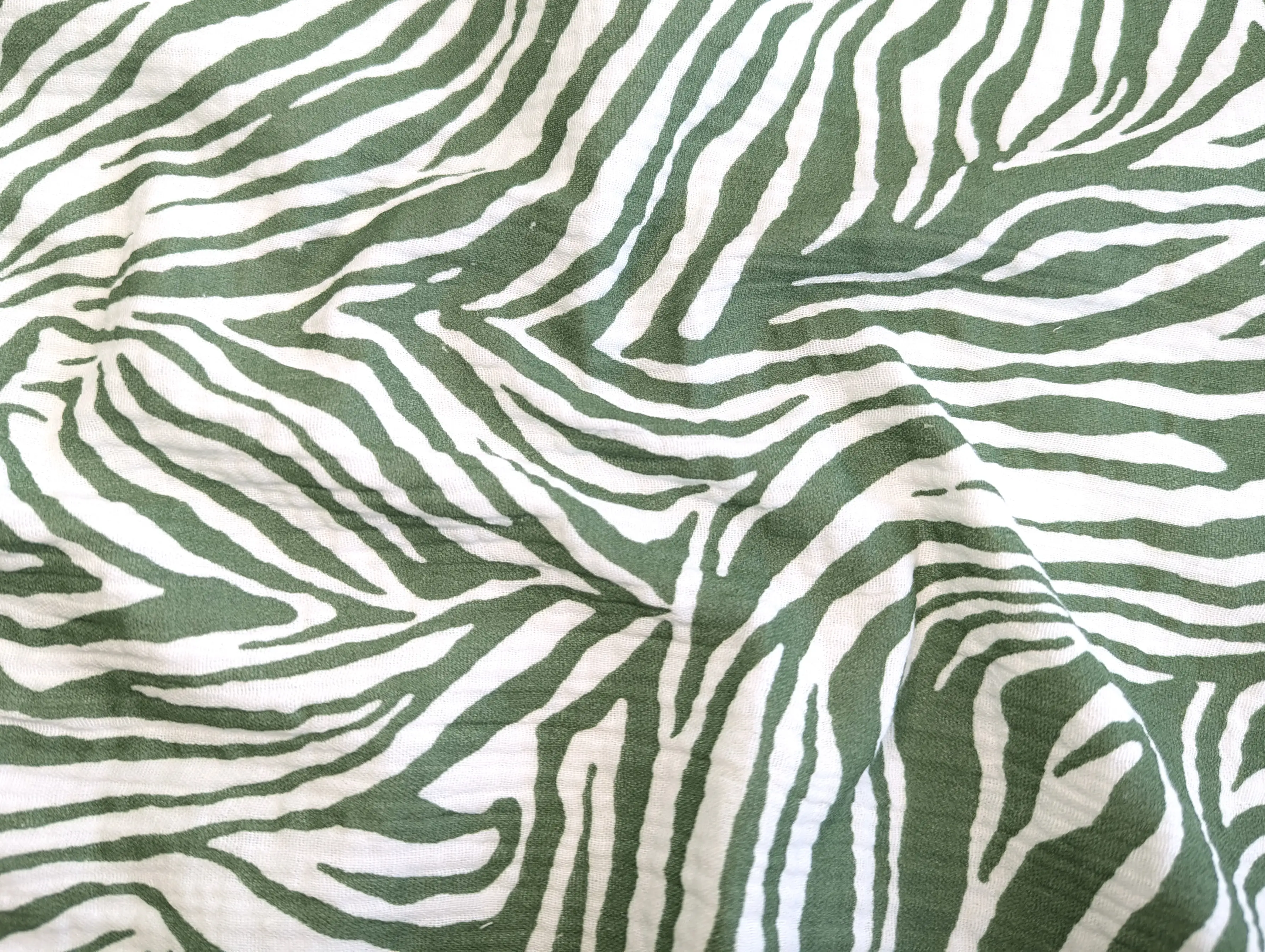 Муслін малюнок зебра, хакі з молочним