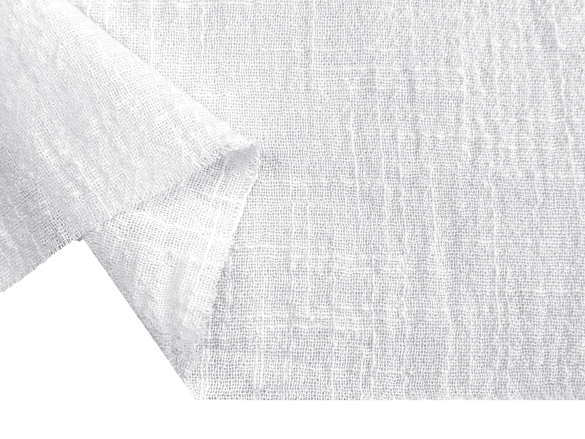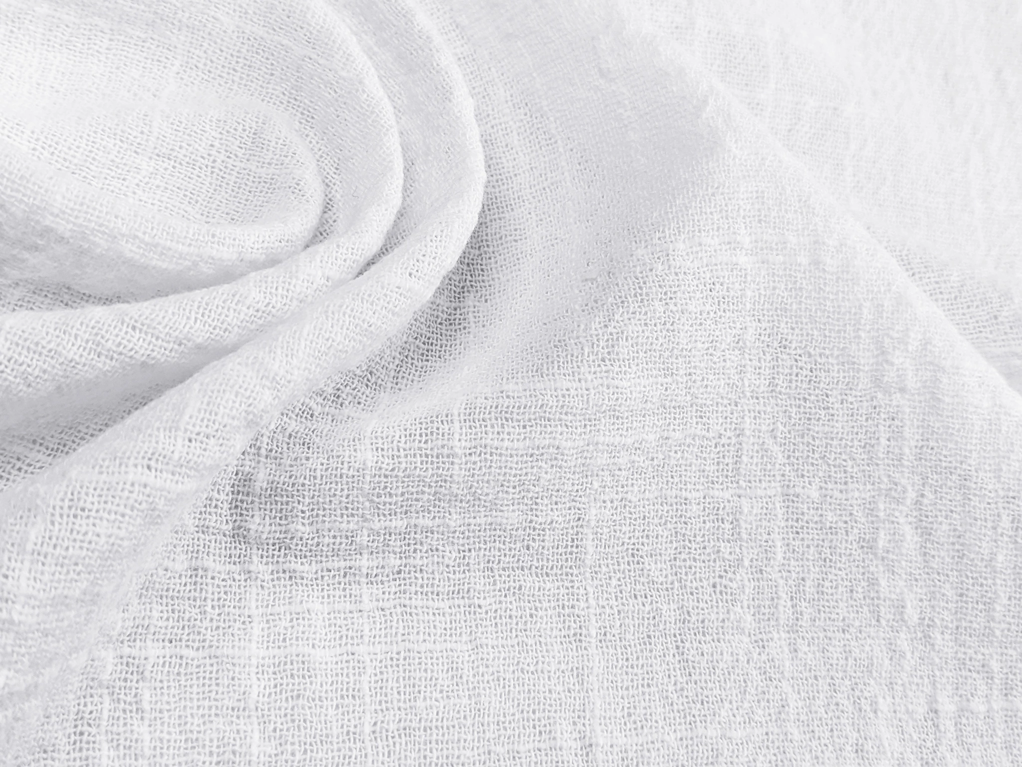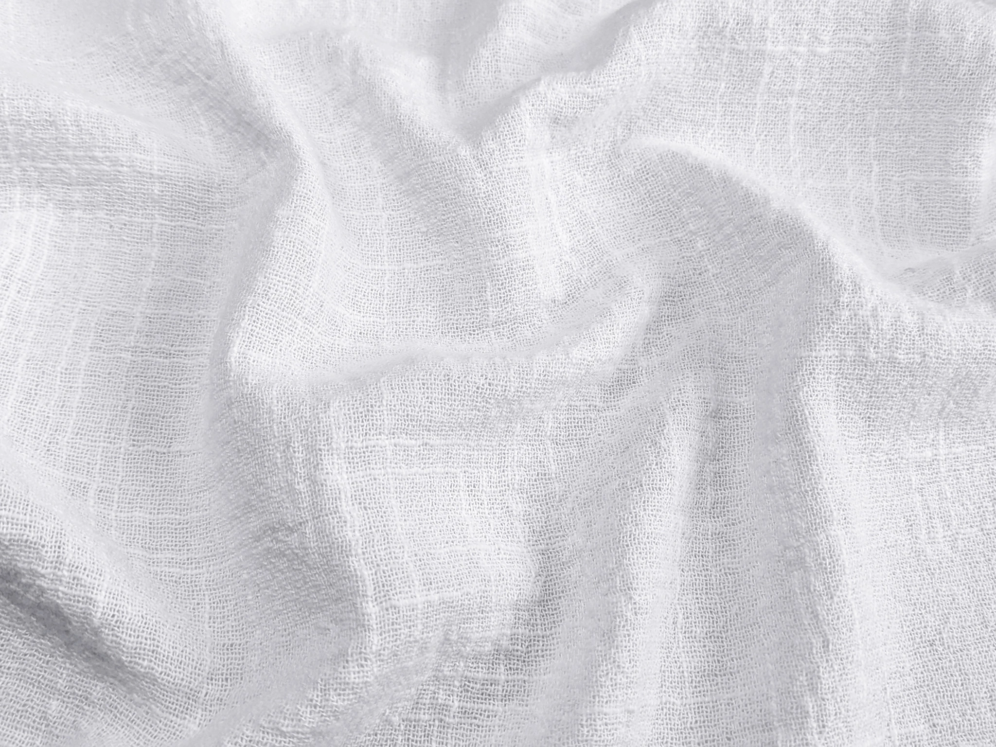 Муслін слаб - одношаровий, бавовняний матеріал з полотняним переплетенням ниток, що надає тканині легкості та невагомості. Фактура поверхні має природне ущільнення нитки у вигляді штрихів по всьому полотну. Тканина тонка, м'яка і водночас міцна, злегка еластична, добре пропускає повітря, відмінно вбирає вологу і швидко висихає. Під час драпірування набуває м'якої форми. На просвіт в один шар матеріал просвічується.
