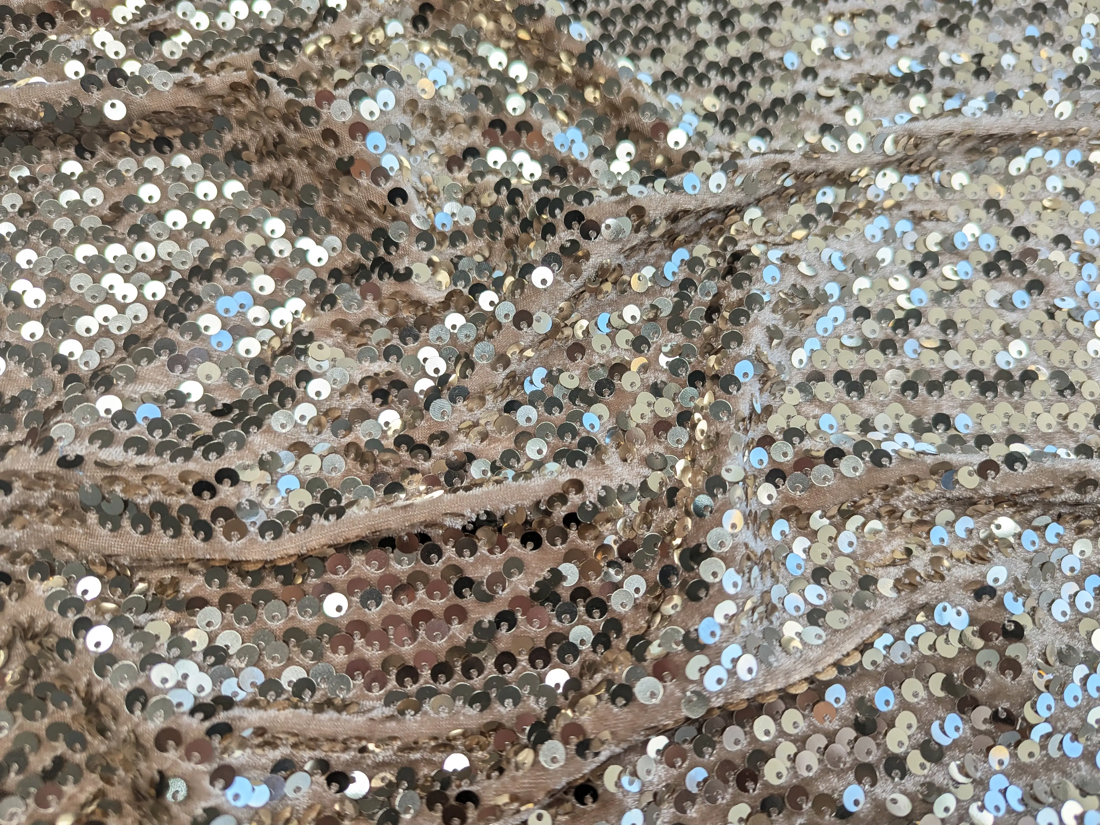 Оксамит з паєткою світле золото на бежевому (відріз 0,9 м)