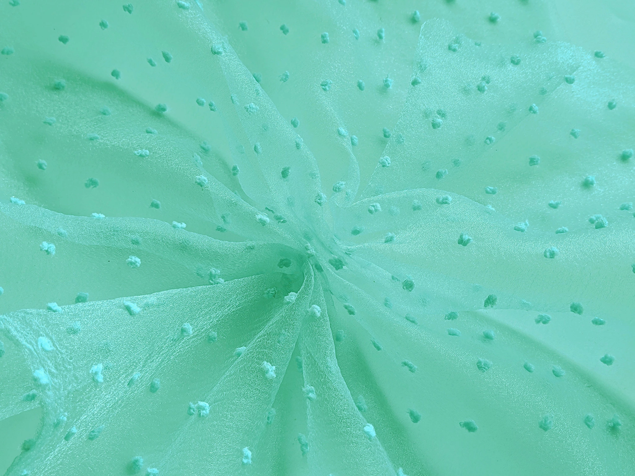Органза - це тонке сітчасте полотно з блиском і текстильними точками рівномірно витканими по полотну.