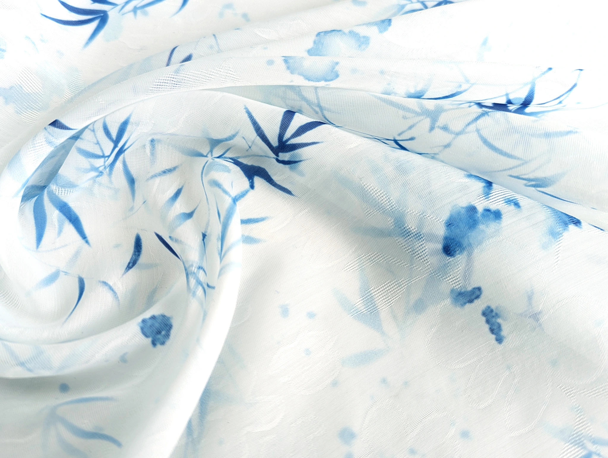 Органза жакард акварель, блакитний на молочному - інтернет-магазин tkani-atlas.com.ua