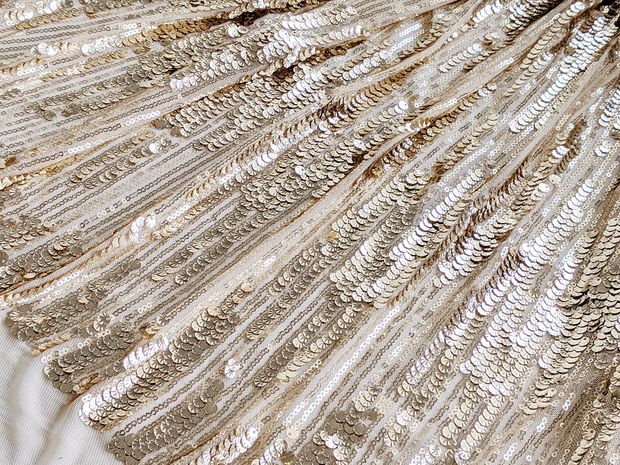 Пайєтка на сітці Мушля - це стрейчева сітка з нашитими паралельно дрібними пайєтками і чергуються пайєтками форми мушлі.