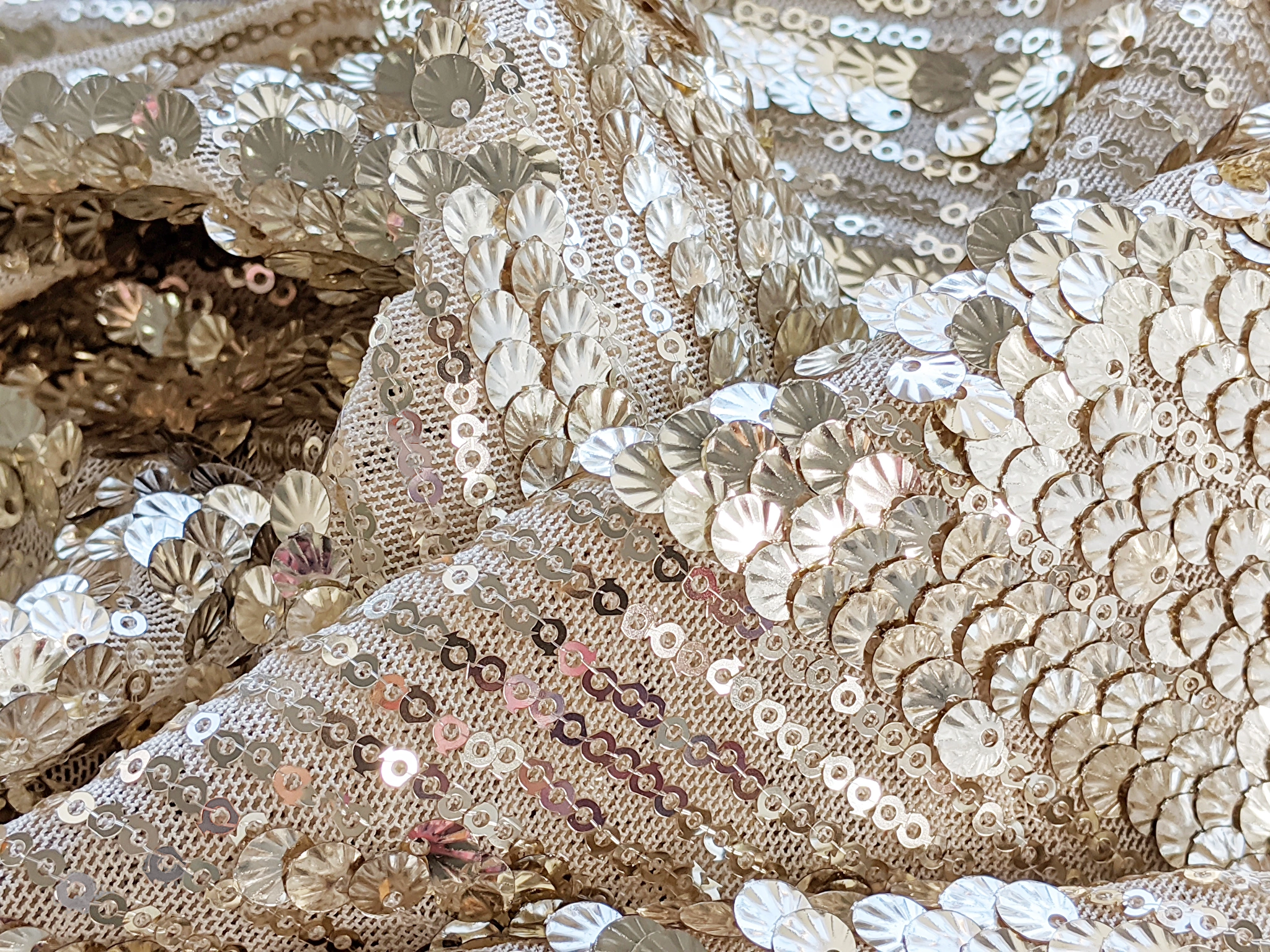 Пайєтка на сітці Мушля - це стрейчева сітка з нашитими паралельно дрібними пайєтками і чергуються пайєтками форми мушлі.