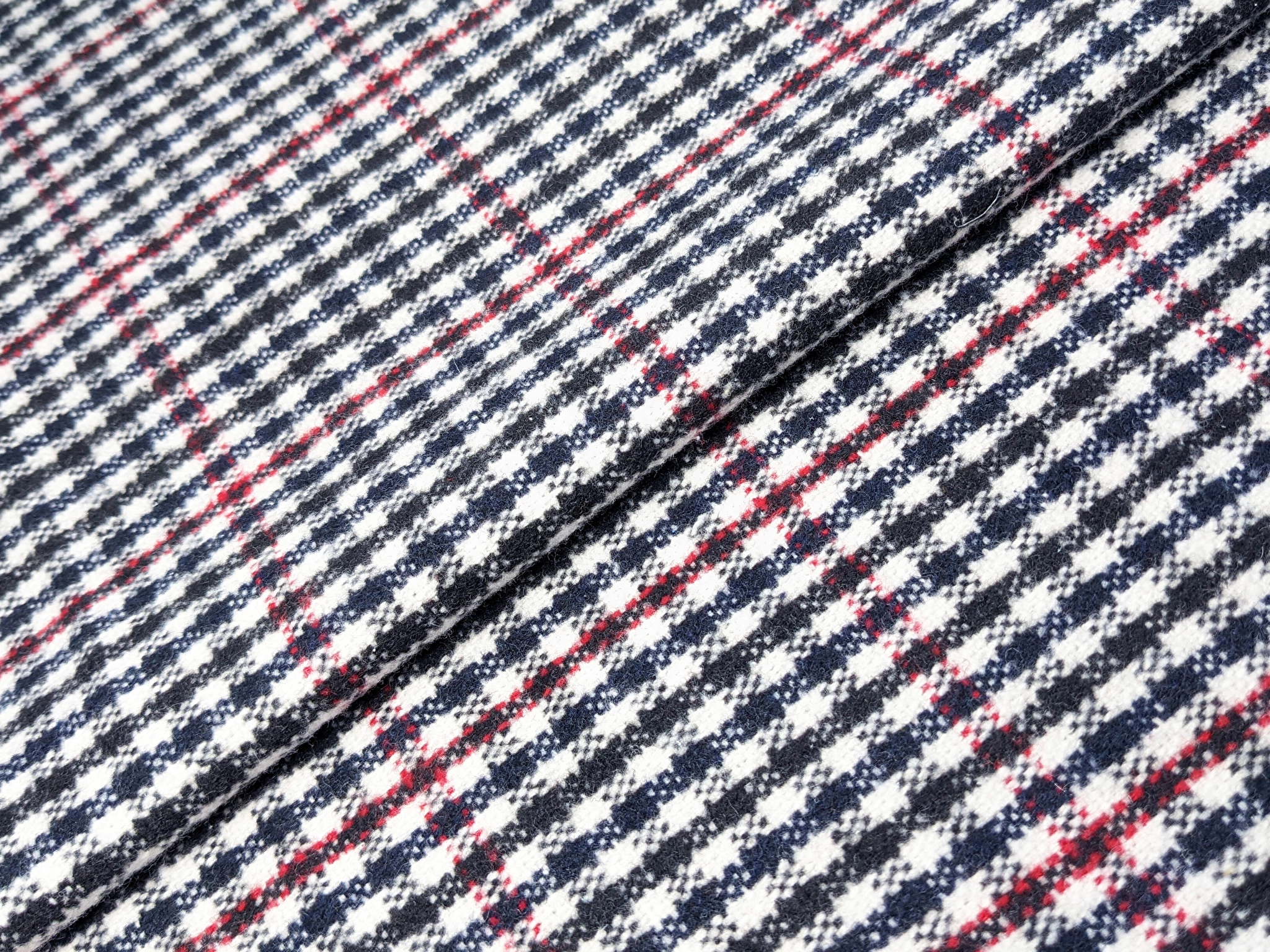 Одним из рекомендуемых материалов для пошива пальто для межсезонья является пальтовая клетка. Стильные принты в клетку выполнены на полотне в составе которого шерсть и полиэстер. Благодаря такому составу ткань обладаем повышенной износоустойчивостью, легкостью и мягкостью, при этом сохраняет тепло. Структура ткани имеет жаккардовое плетение нитей, лицевая сторона имеет небольшой ворс, что добавляет приятных тактильных ощущений изделий из данной ткани.