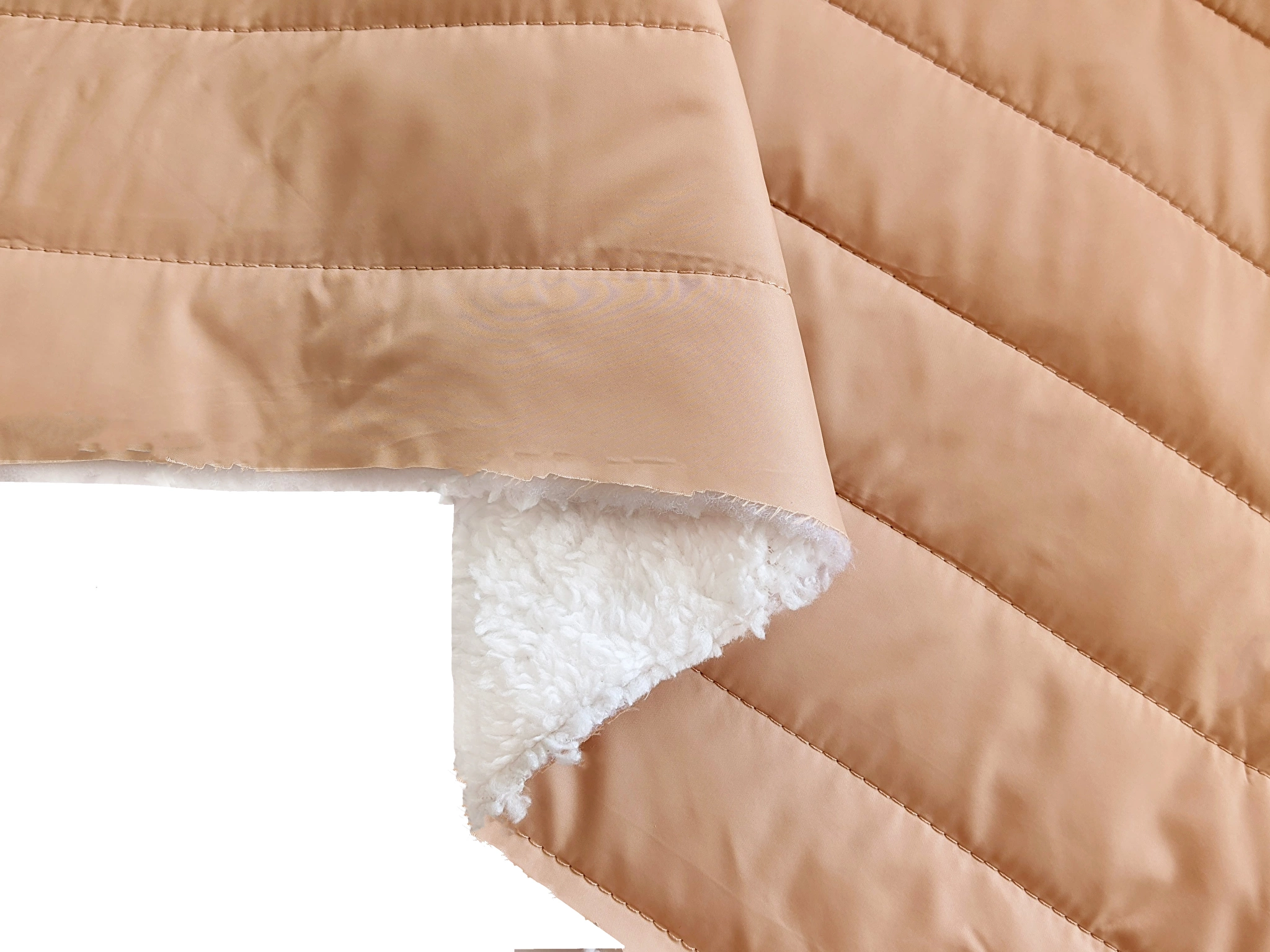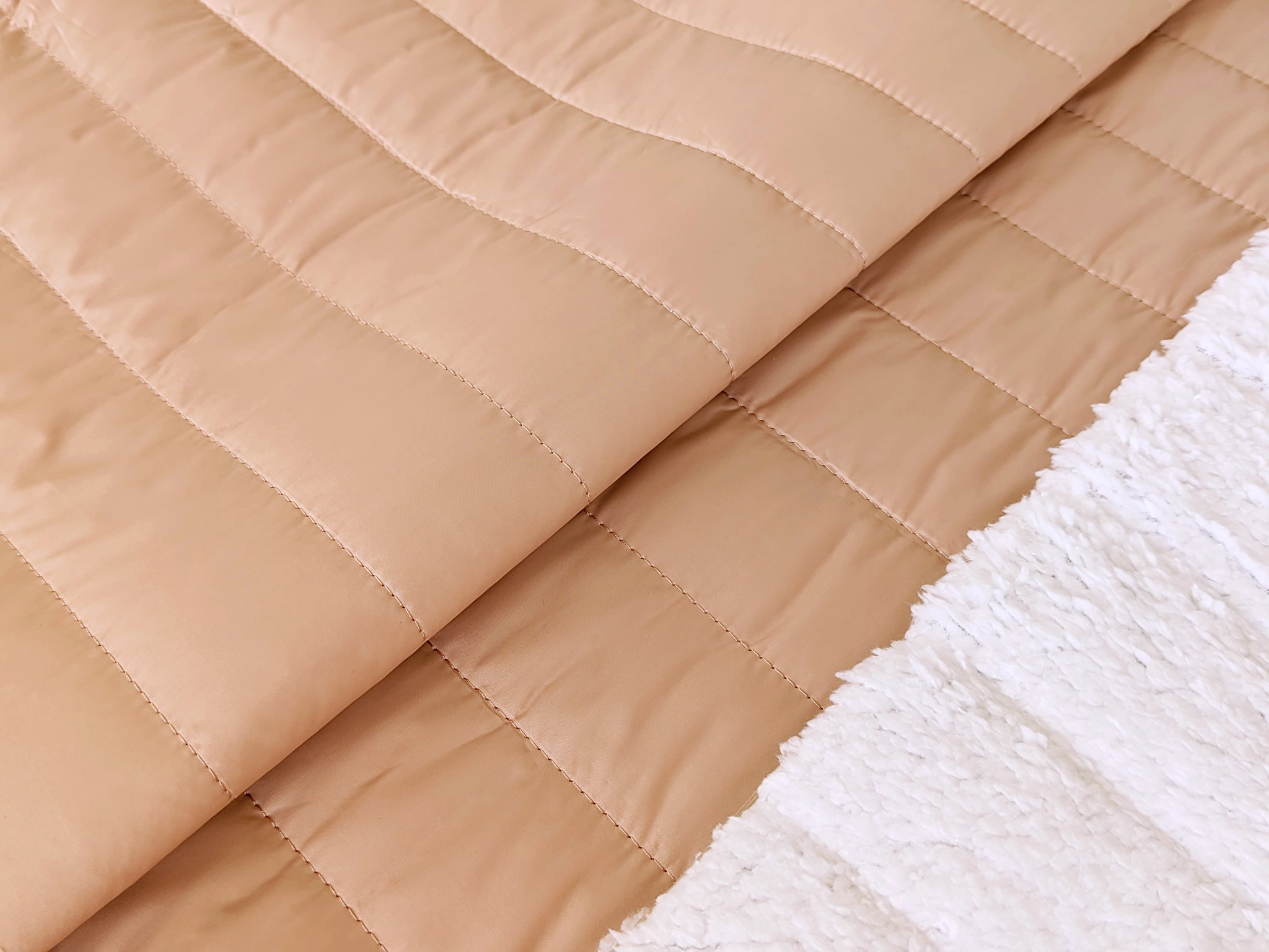 Плащова тканина на синтепоні з хутром на виворітній стороні. Полотно не мнеться і не розтягується. Зворотний бік приємний на дотик. Полотно має гарні теплоізоляційні властивості. Застосовується для пошиття верхнього одягу.