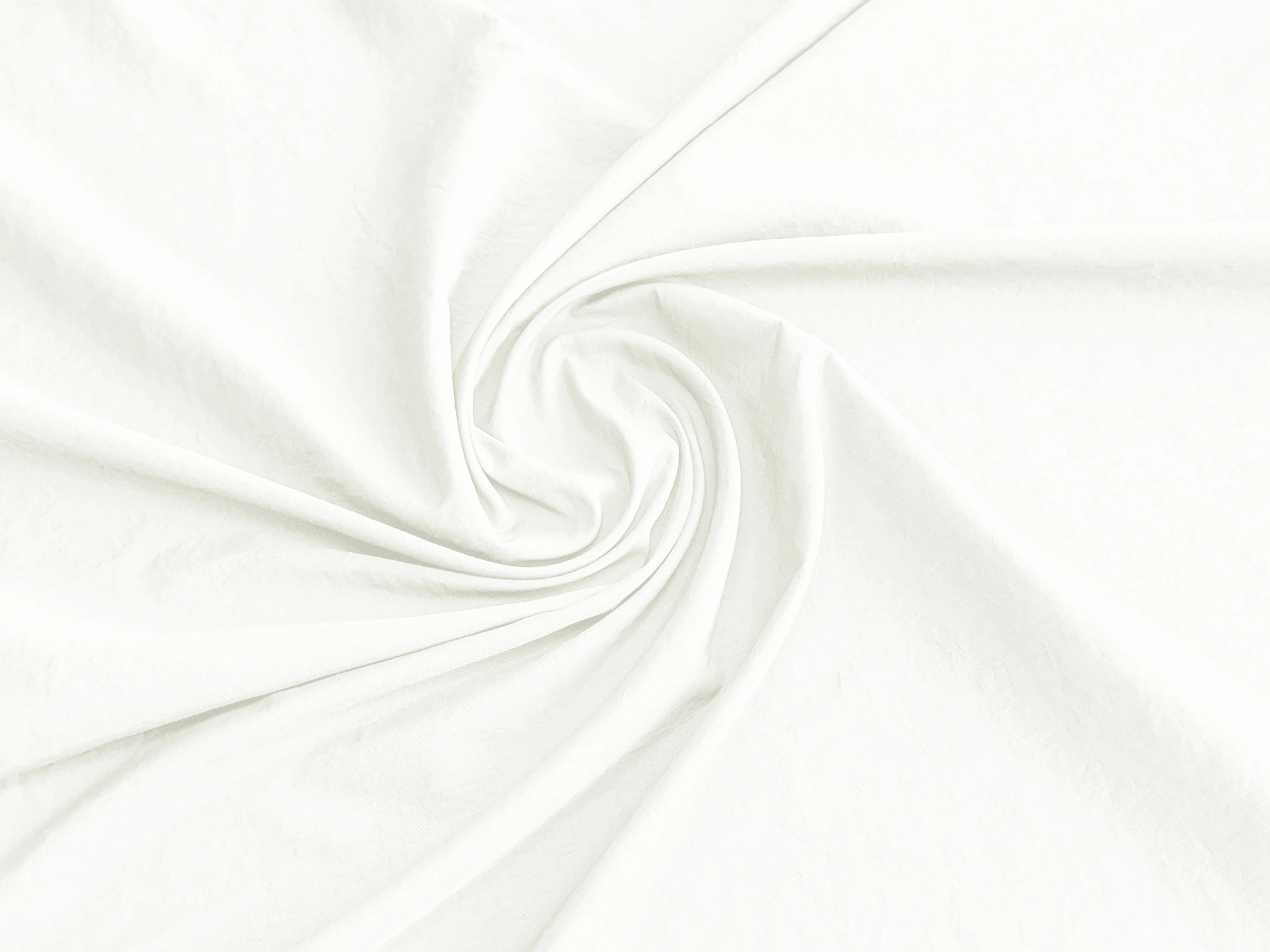 Плащовка щільна жата - це легка і тонка тканина з дуже щільним переплетенням ниток. Тканина дуже міцна, тактильно приємна, з матовою поверхнею та злегка жатою текстурою. На дотик м'яка, трохи ковзна, комфортна в носінні, створює легкий ефект, що шарудить, без просочення. При драпіруванні складки набувають м'якої, повітряної форми. Матеріал нееластичний, міцний, зносостійкий.