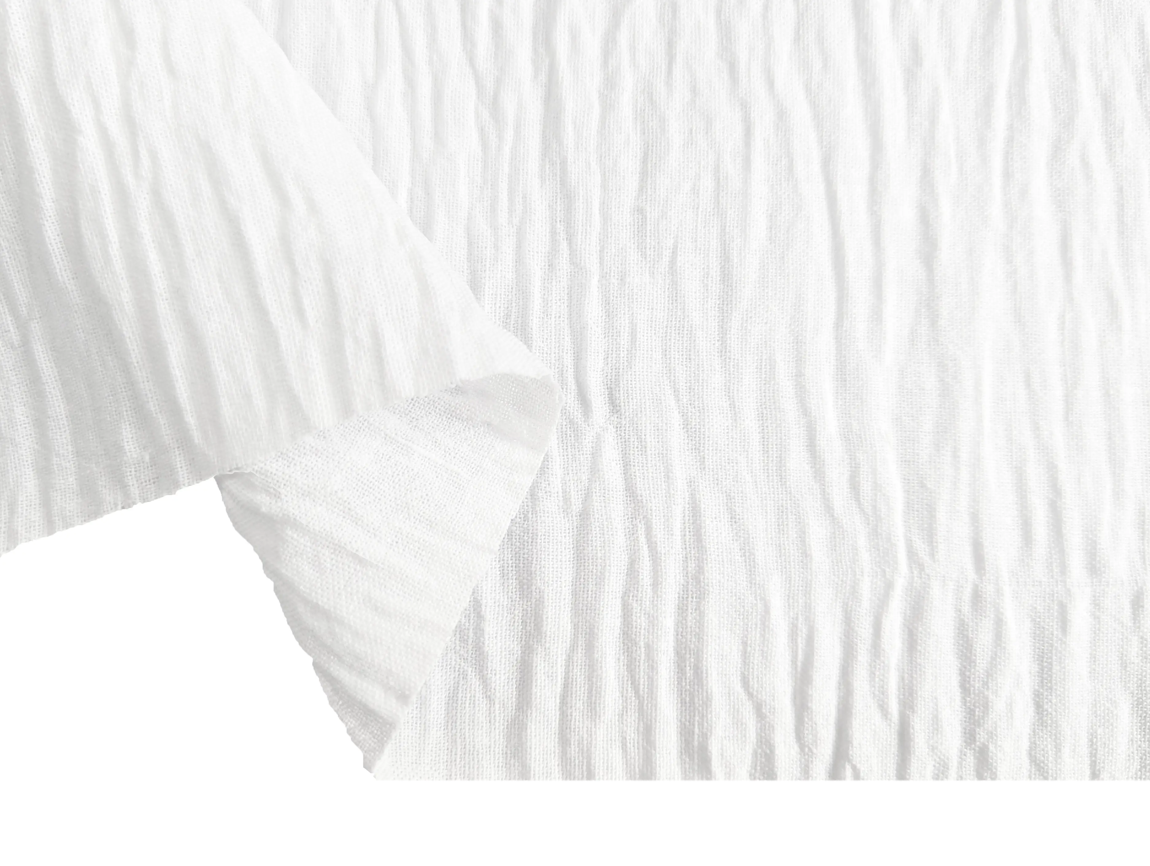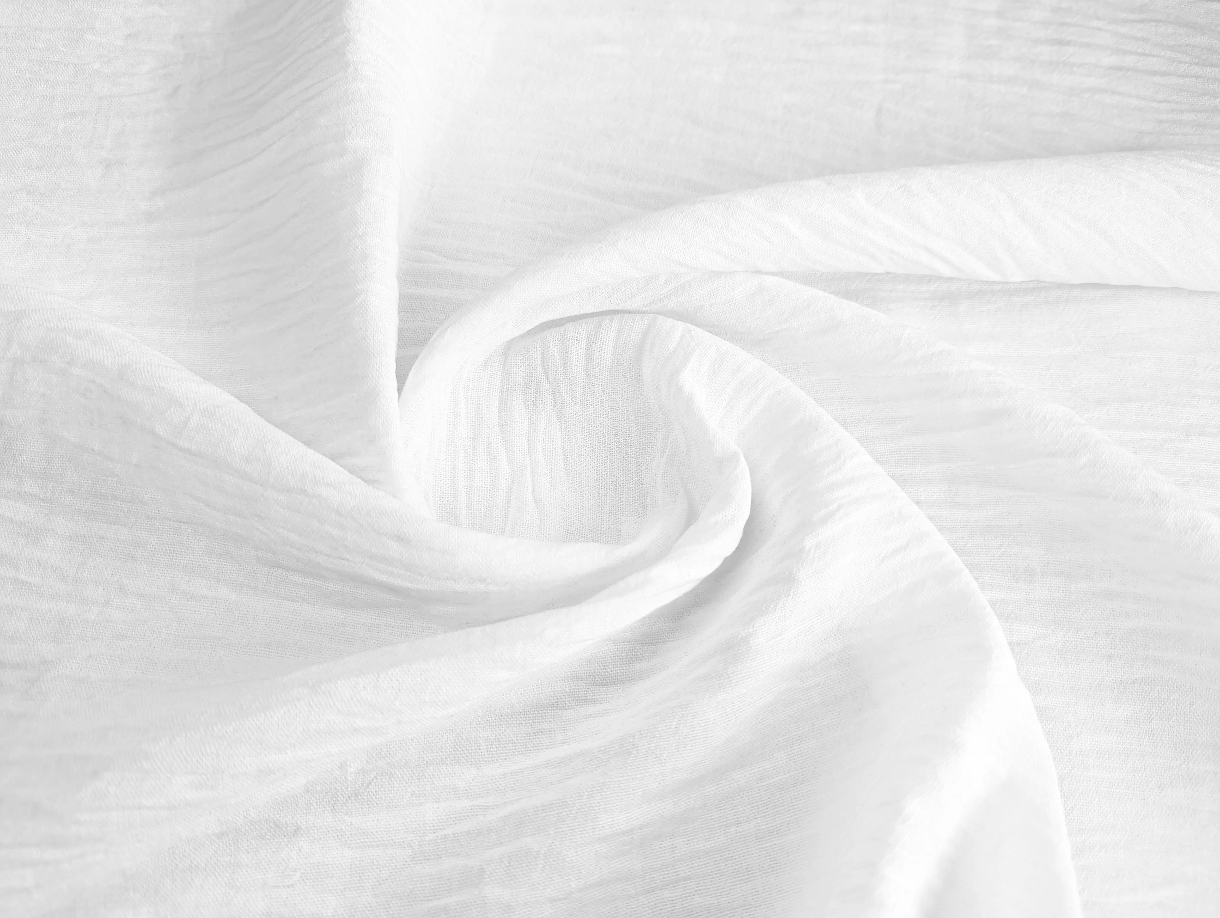 Полільон бохо - матеріал штучного походження з лляним плетінням ниток і виразною жатою структурою. Поверхня тканини матова, на дотик злегка шорстка, але водночас досить м'яка і тактильно приємна. За рахунок жатого ефекту полотно має легку еластичність, володіє легким силуетним просвітом, не мнеться.