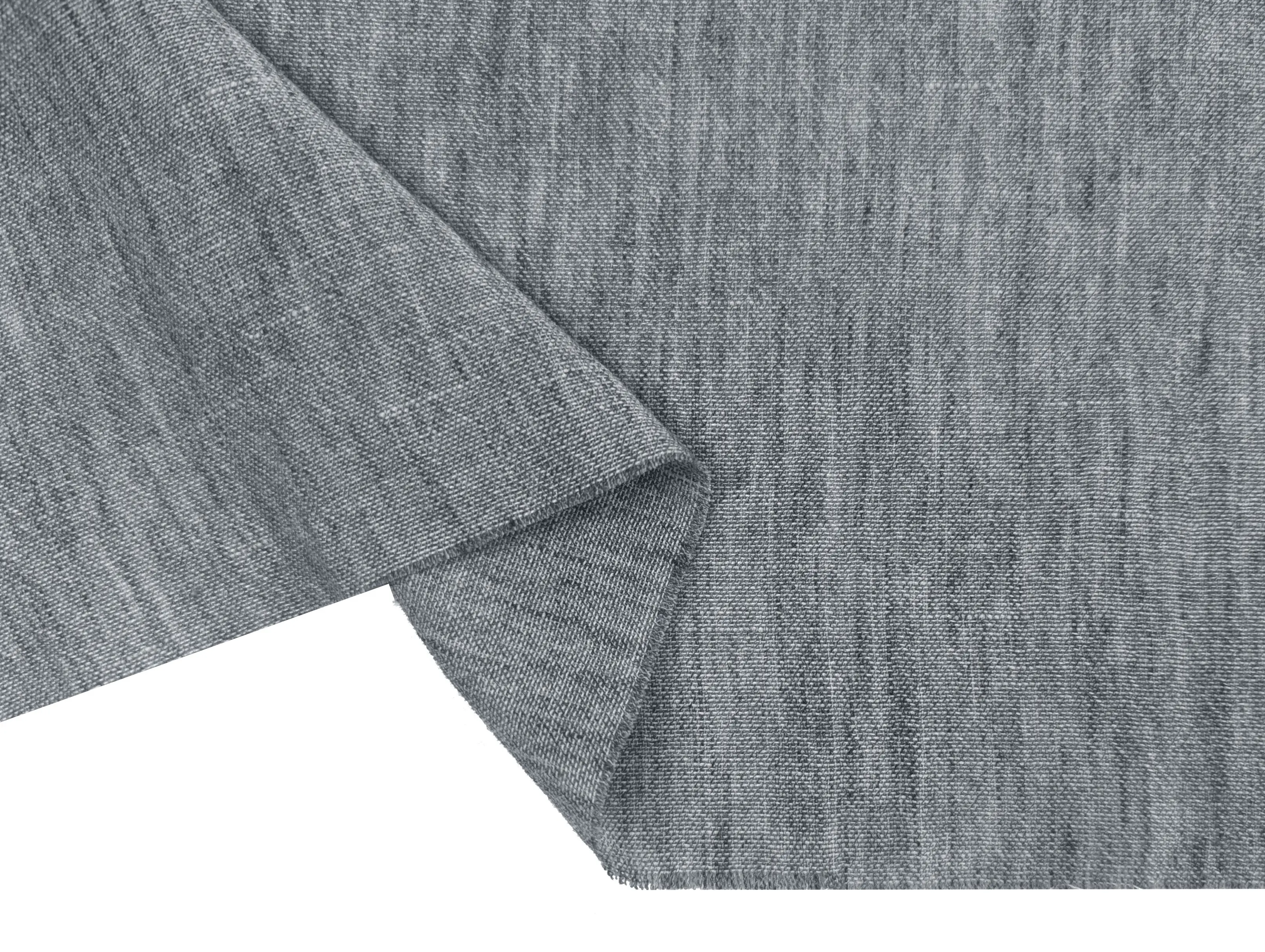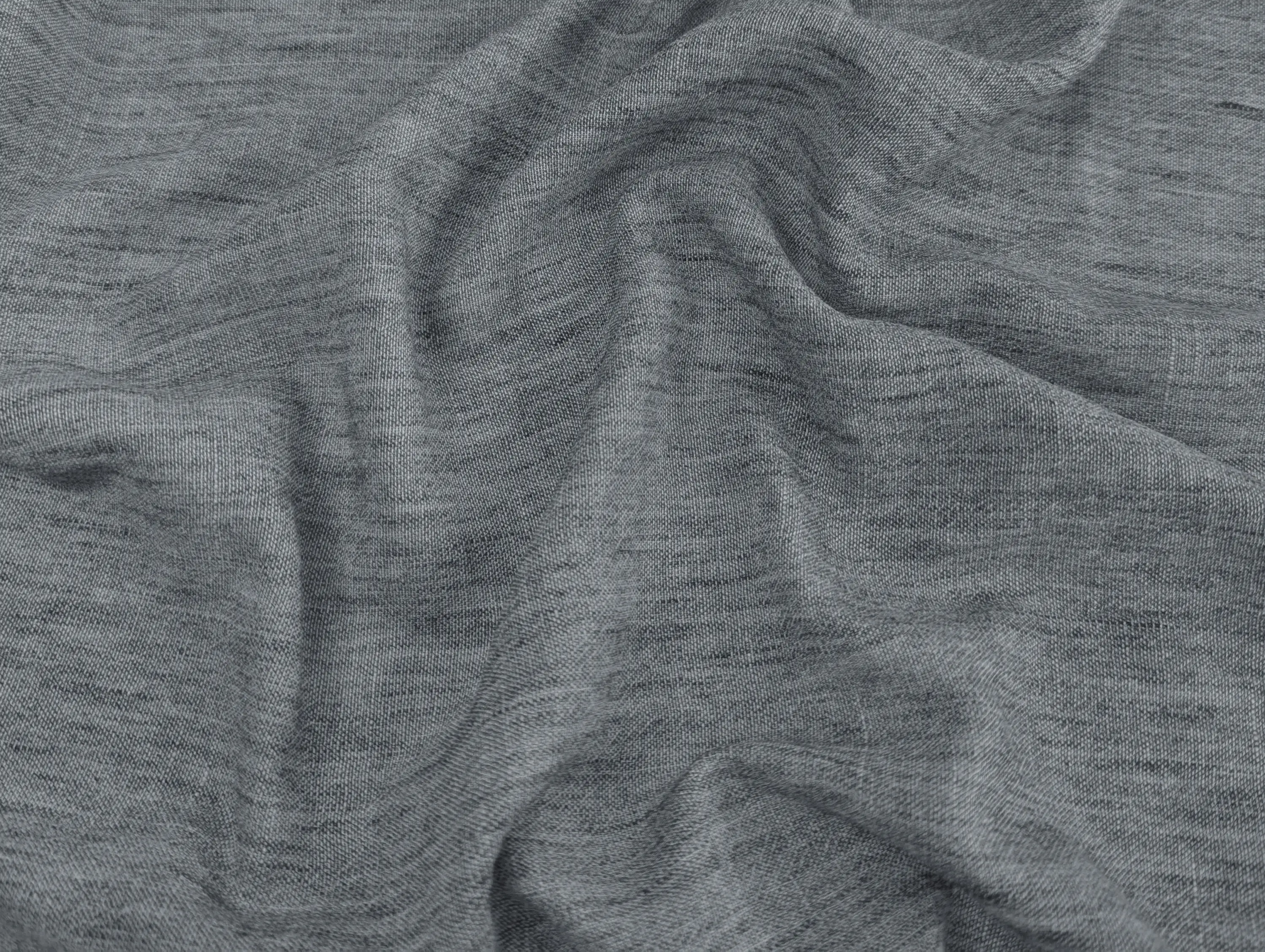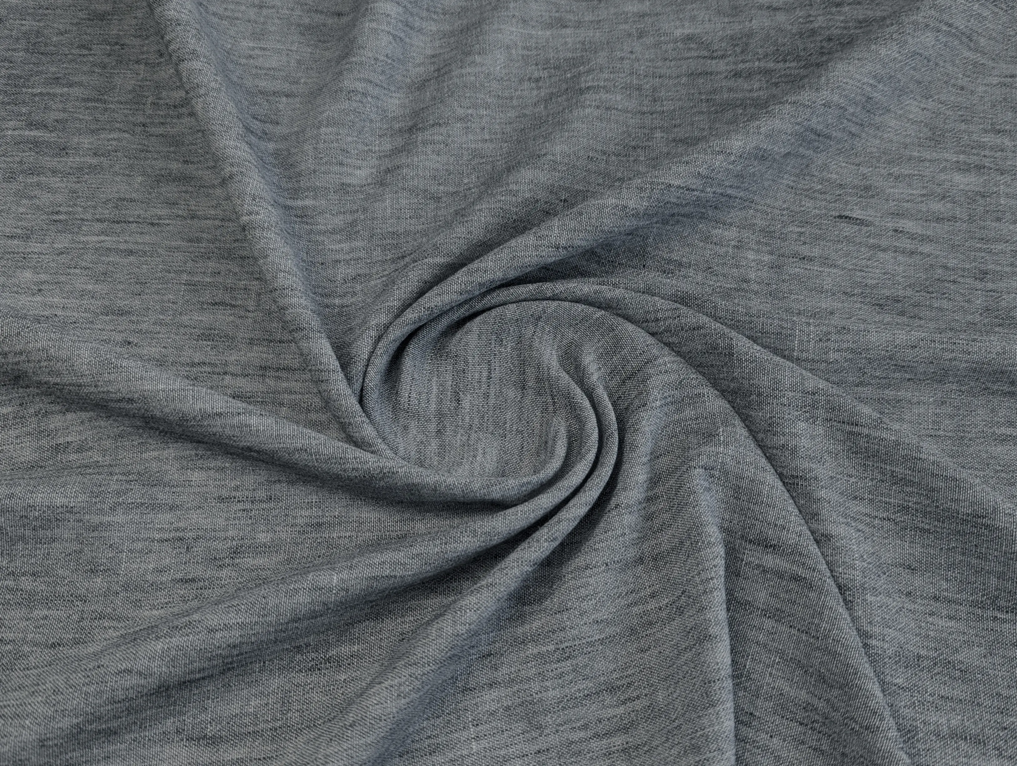 Полільон меланжевий - фактурна тканина з ефектом натурального льону та злегка жатою поверхнею. Тканина легка, м’яка, добре драпірується і не заминається. Забезпечує міцність і комфорт у носінні. Стійка до вигорання та легка у догляді.