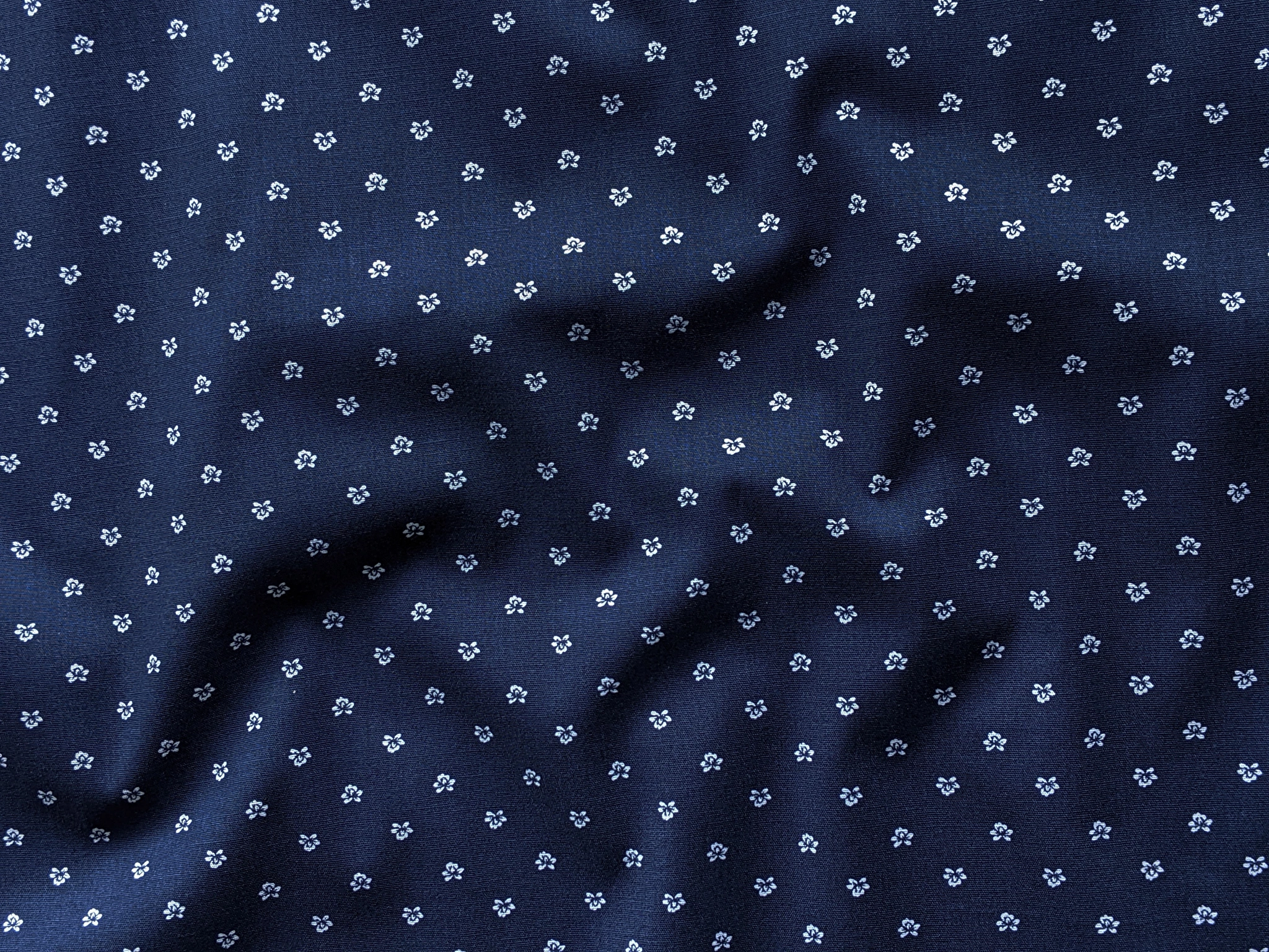 Поплін сорочечний дрібні квіточки, темно-синій (с1901, 1911089, д3 цв3)