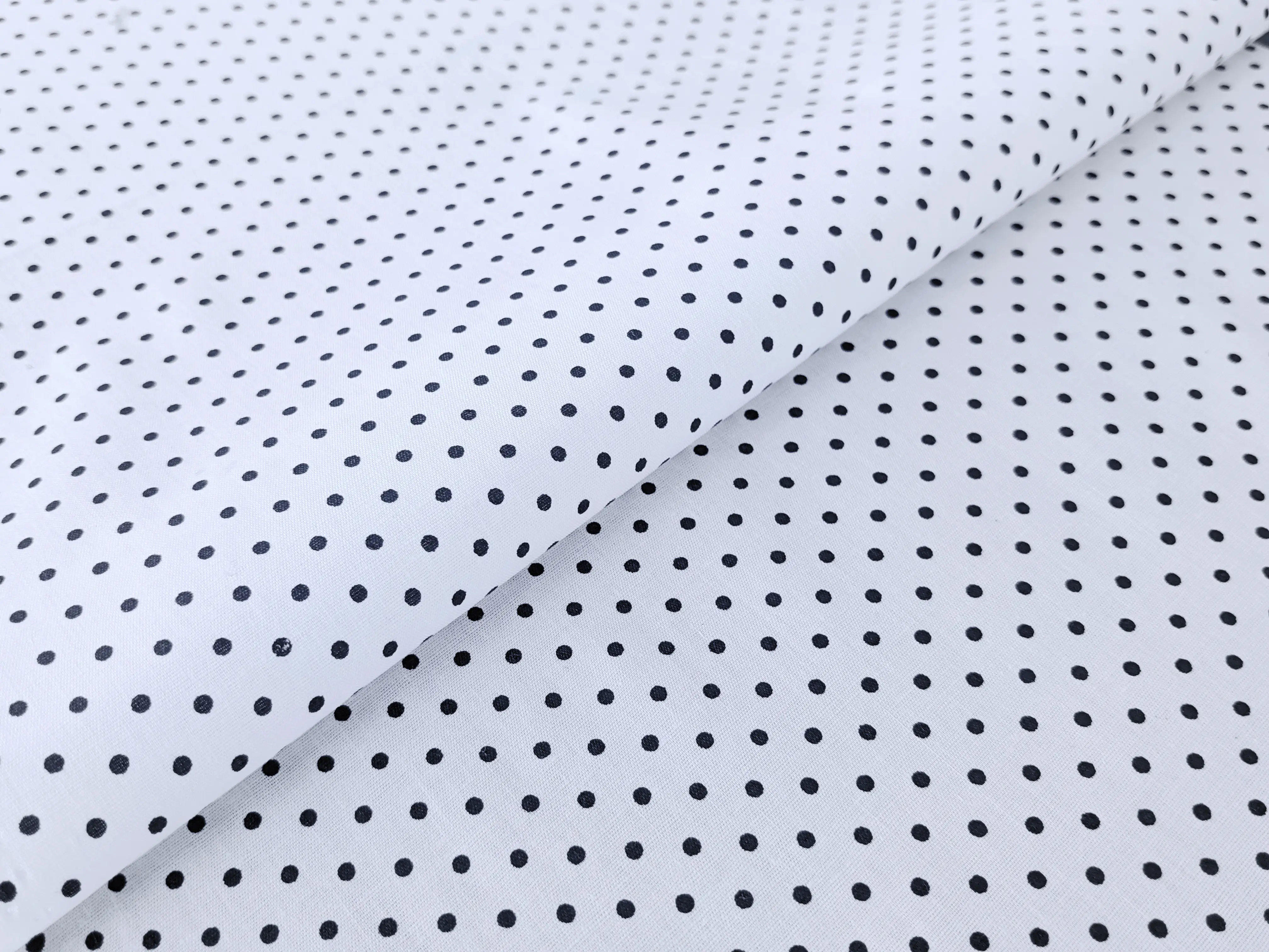 Поплін сорочечний горошки 2 мм, чорний на білому (відріз 3 м)