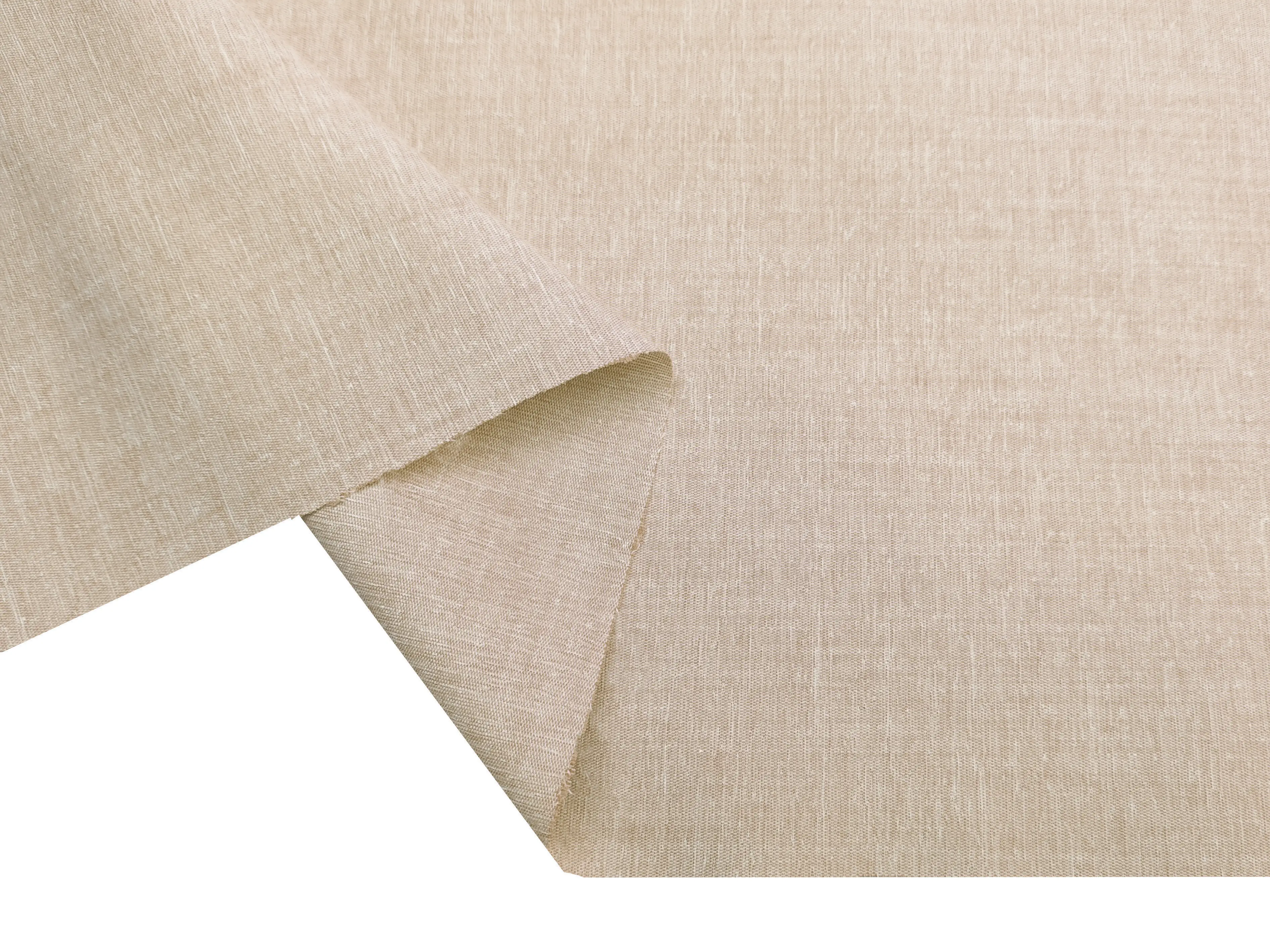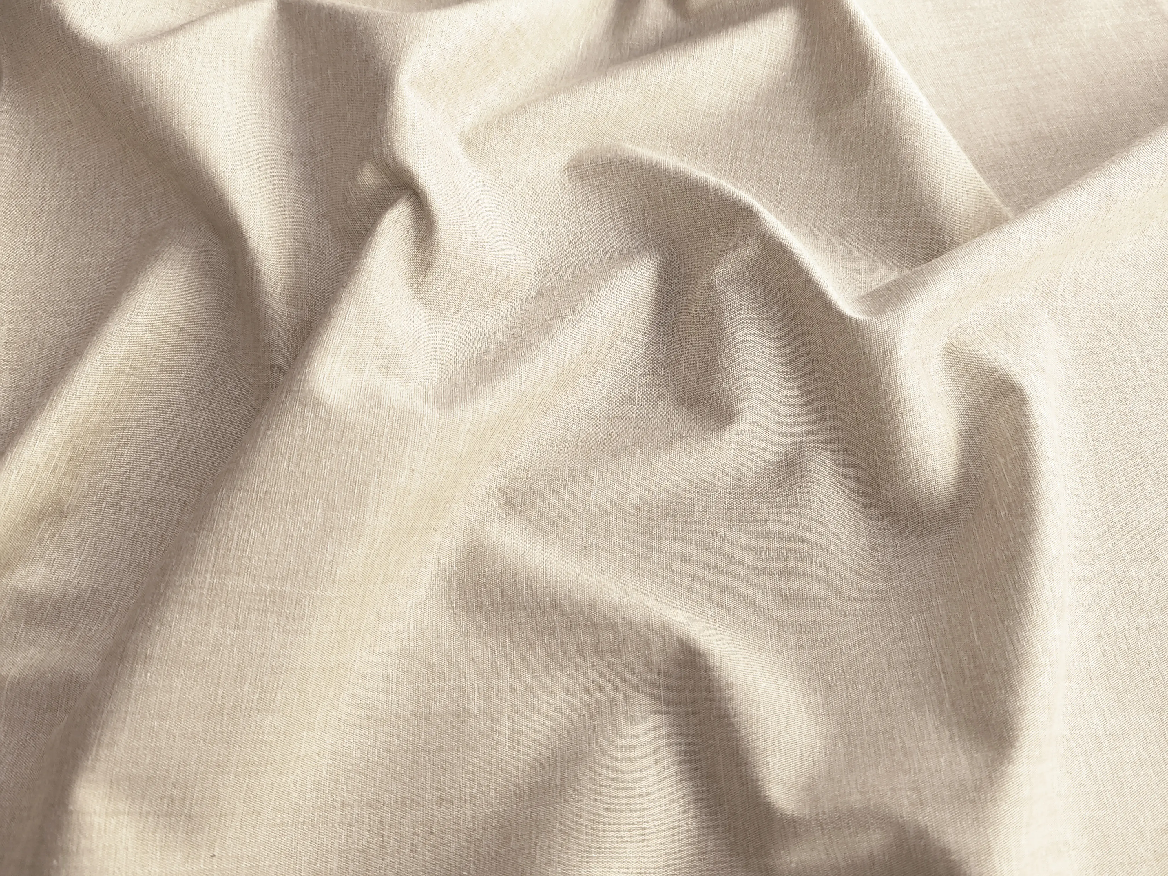 Поплін сорочковий - меланжевий, бавовняний матеріал із додаванням поліестеру. Тканина тонка, легка з матовою, гладкою поверхнею, ніжна на дотик і приємна до тіла. Дихає, не парить, гігроскопічна, міцна, еластична, добре драпірується і красиво тримає форму. Матеріал має невеликий силуетний просвіт, завдяки натуральному складу, присутнє зминання.