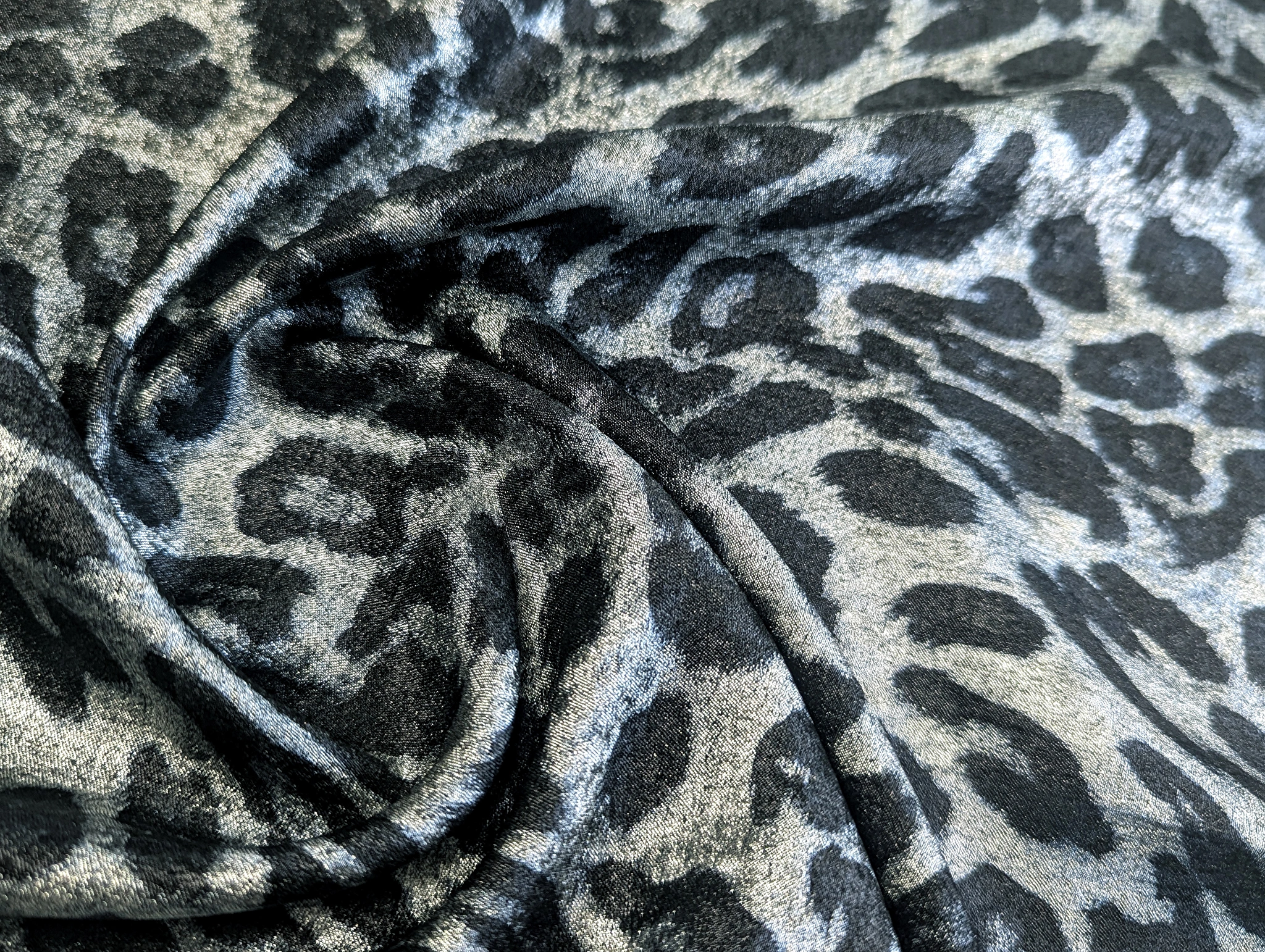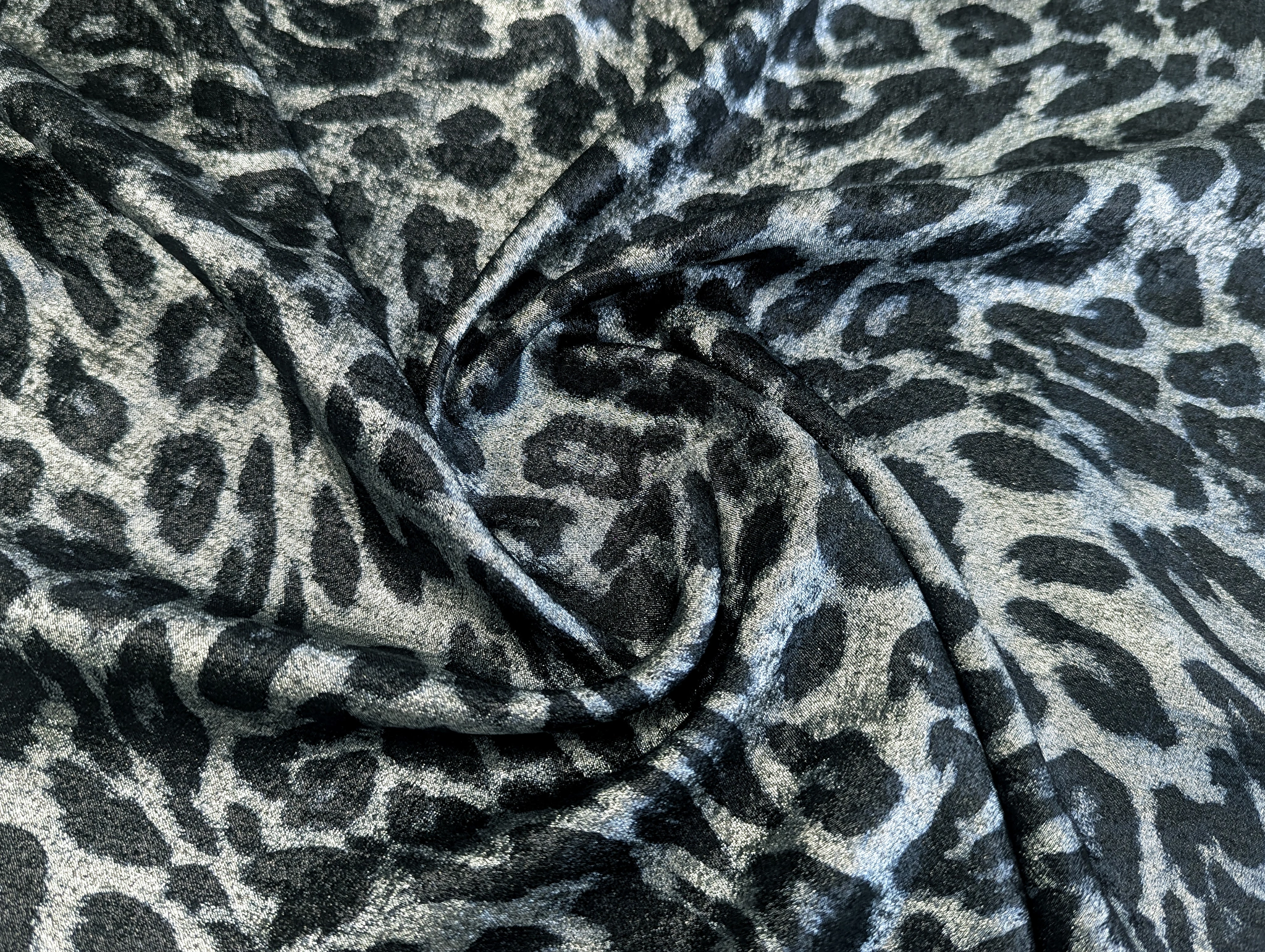 Сатін Шимер леопард, чорний зі сріблом