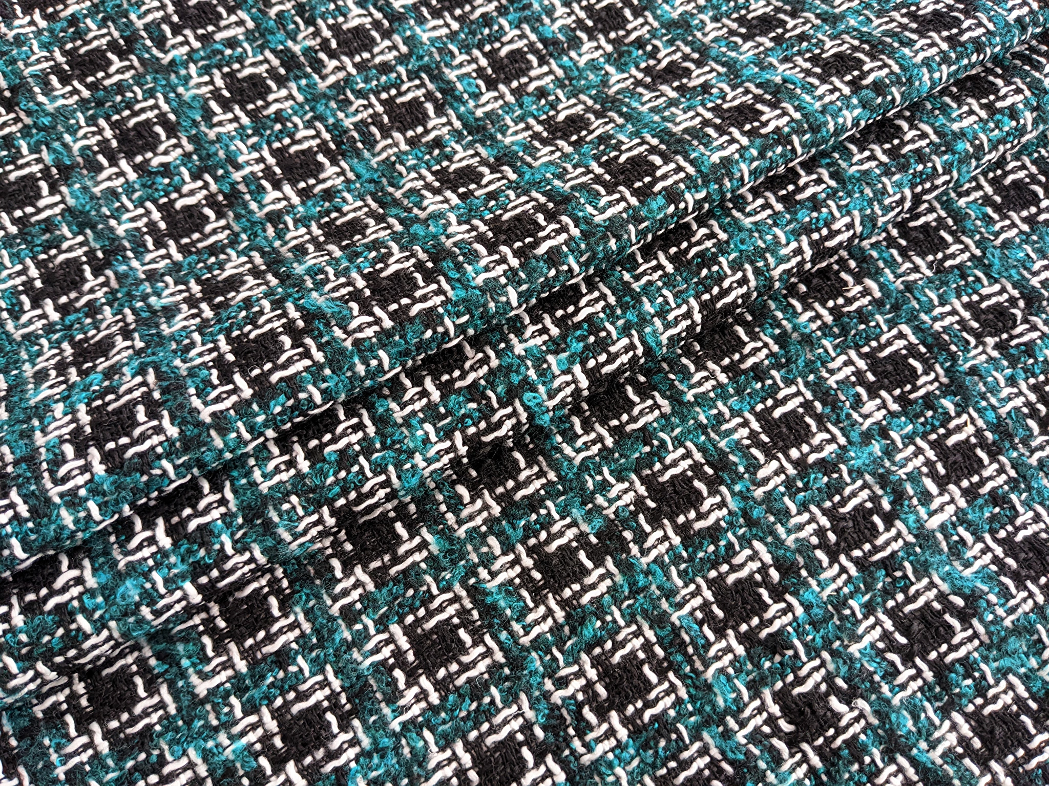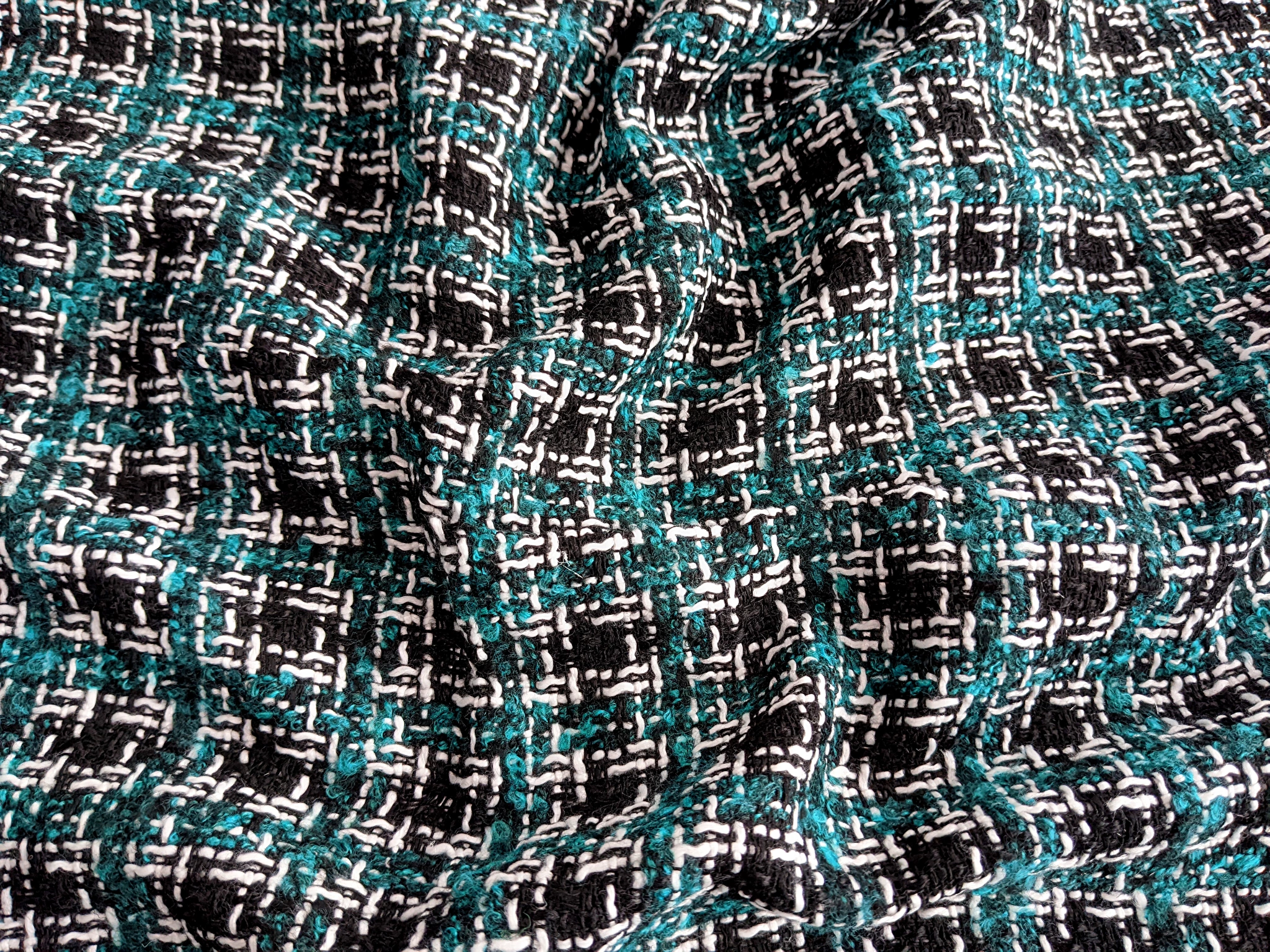 Шанель твид клетка, бирюзовый с черным