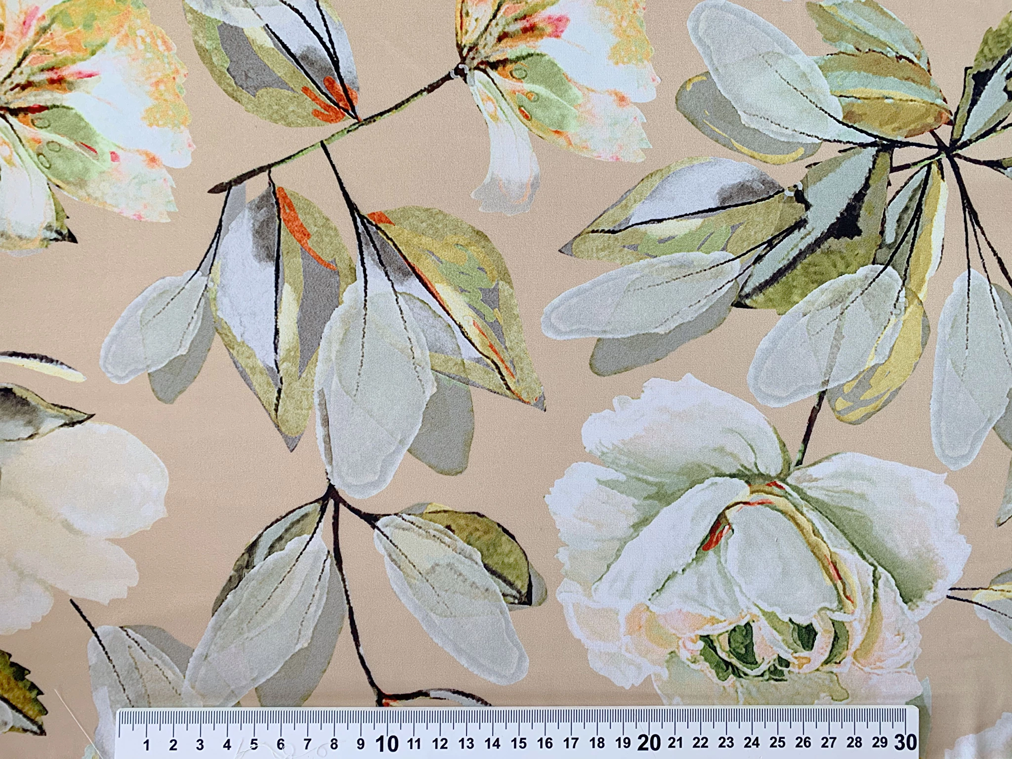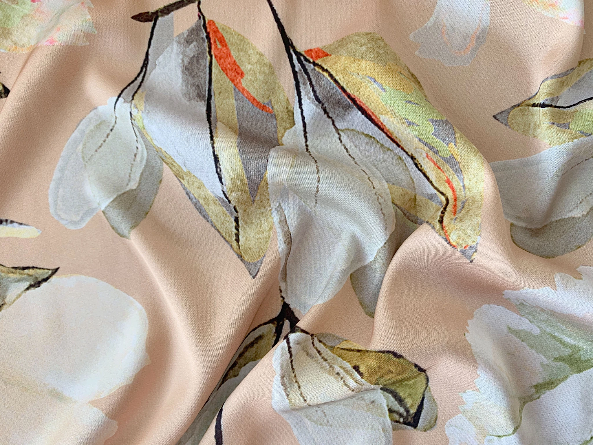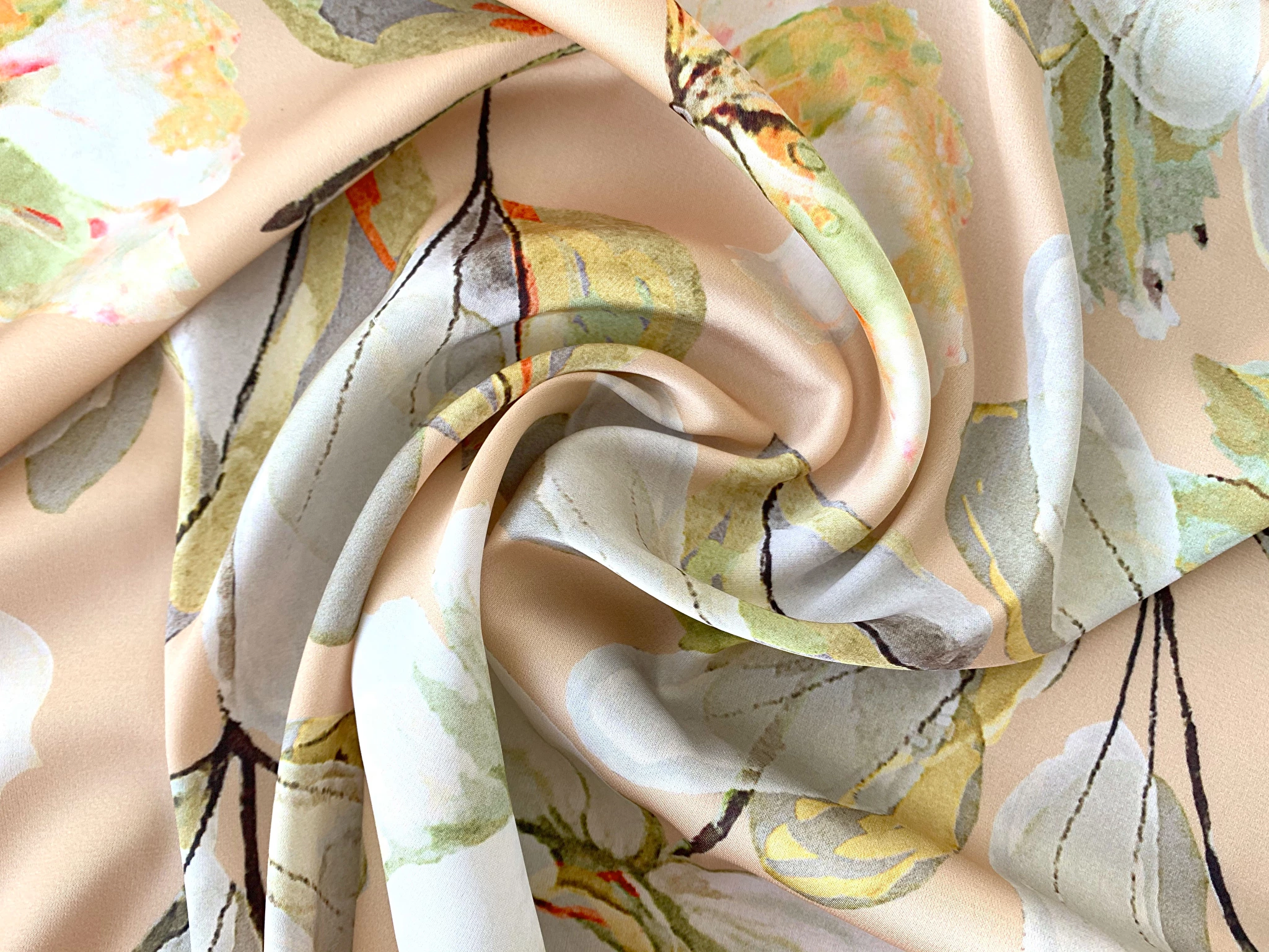 Шовк Армані квітковий букет, бежевий (а35, 1910077A, д5 цв3)