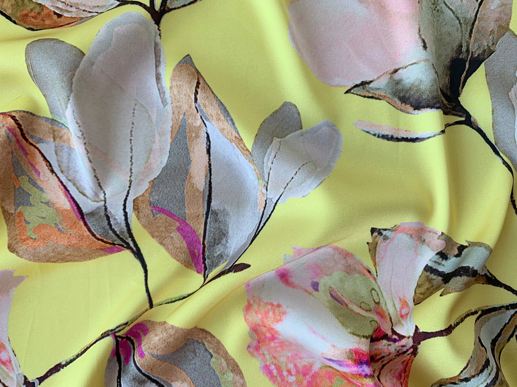 Шовк Армані квітковий букет, лимонно-жовтий