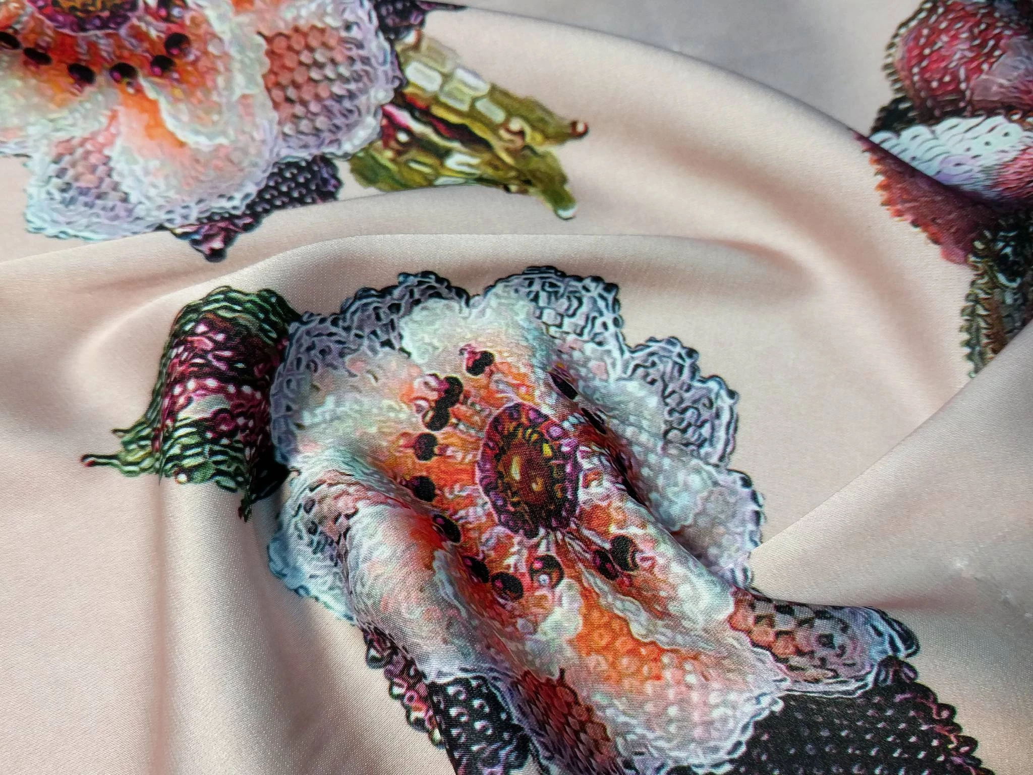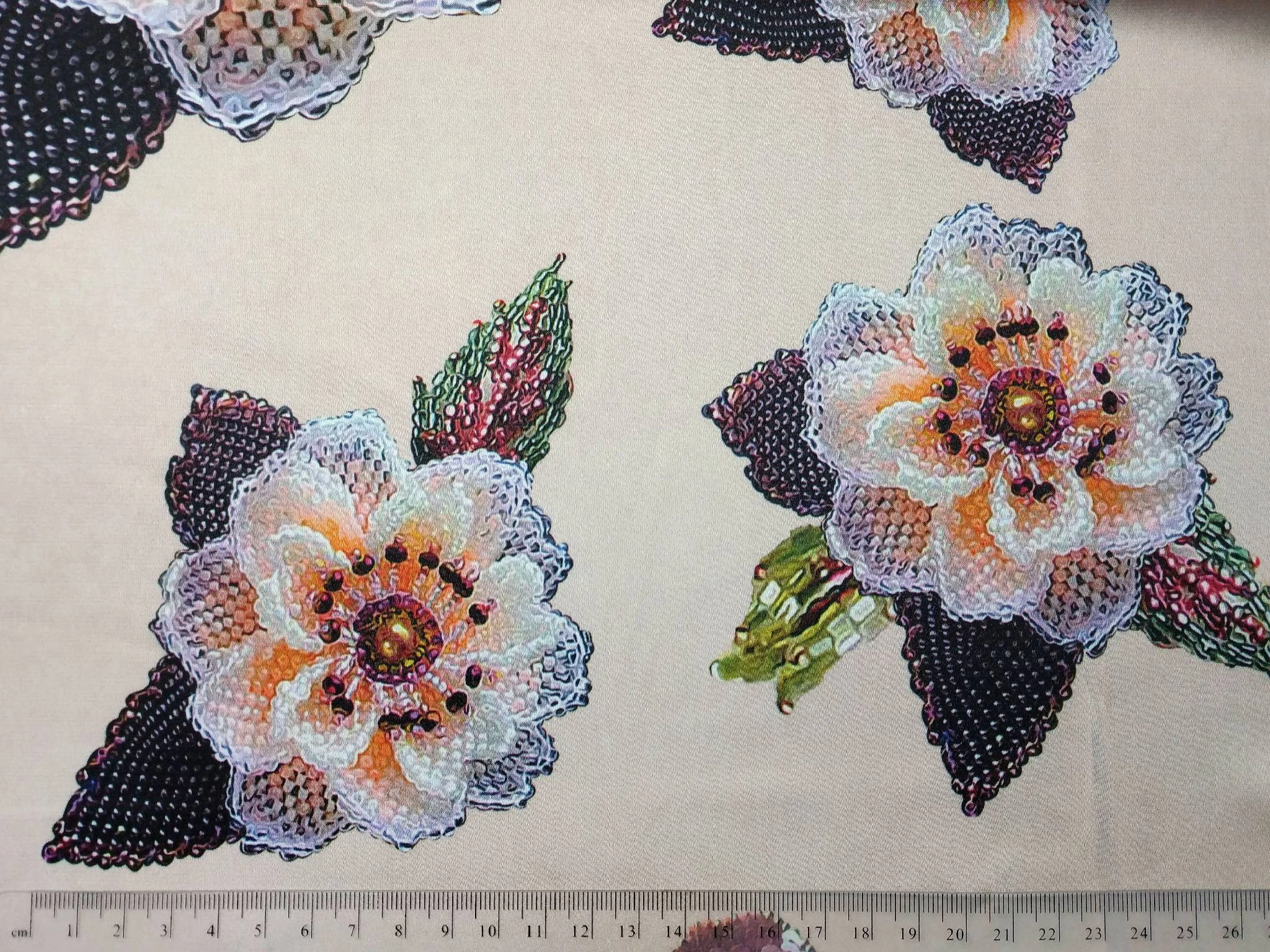 Шовк сатин квіткова мозаїка, бежевий (а32, 1809095A, д4 цв1)
