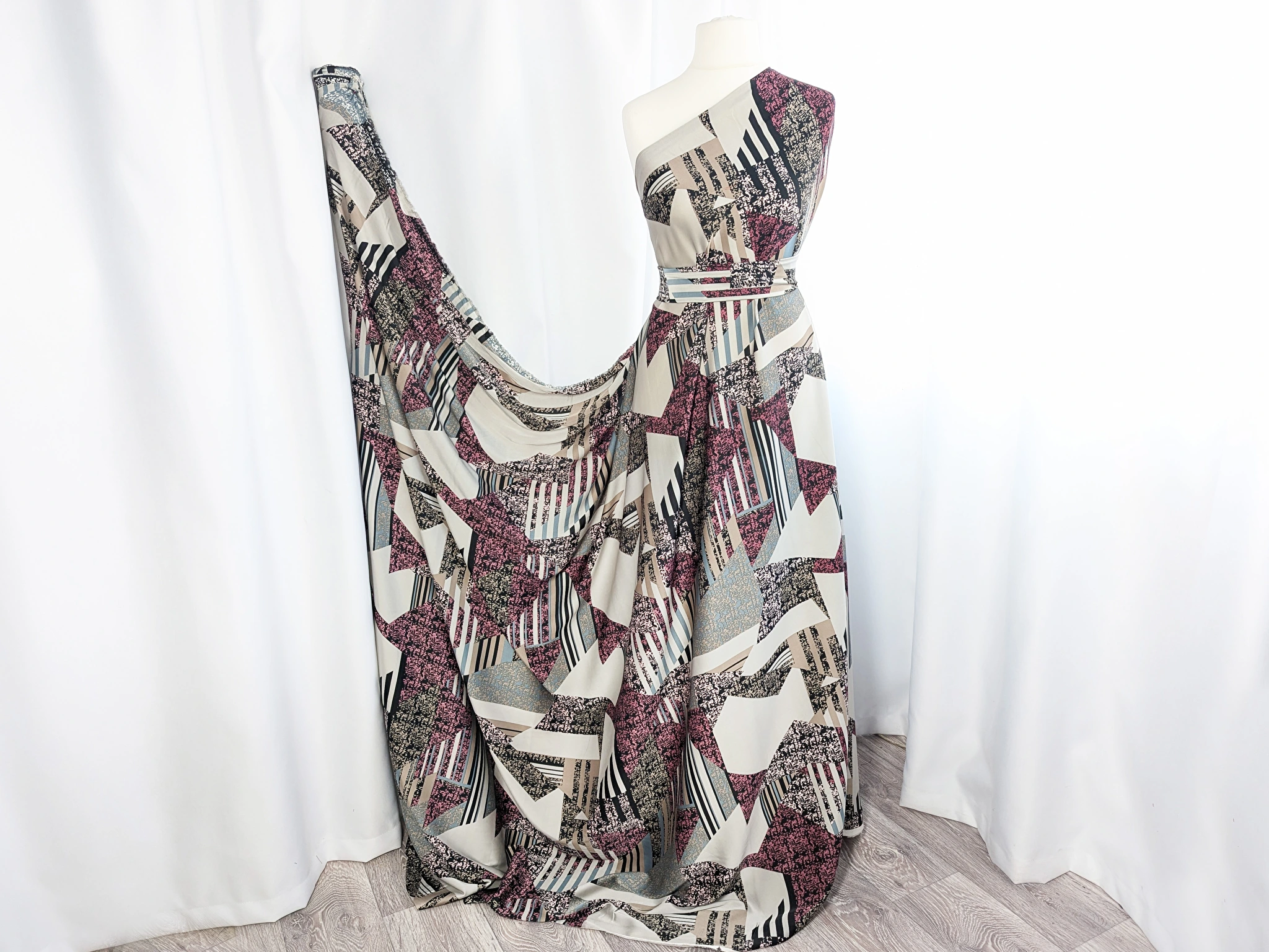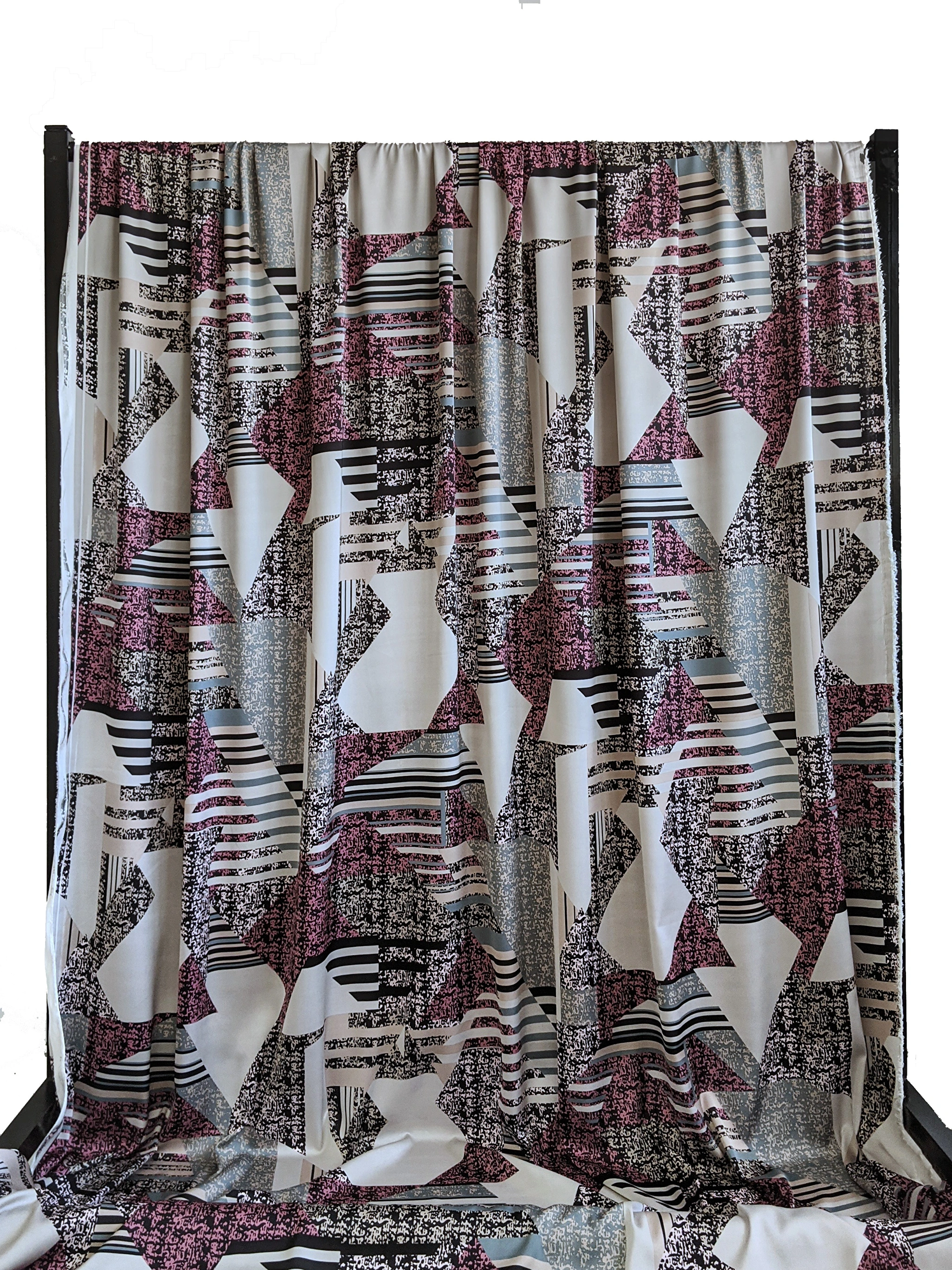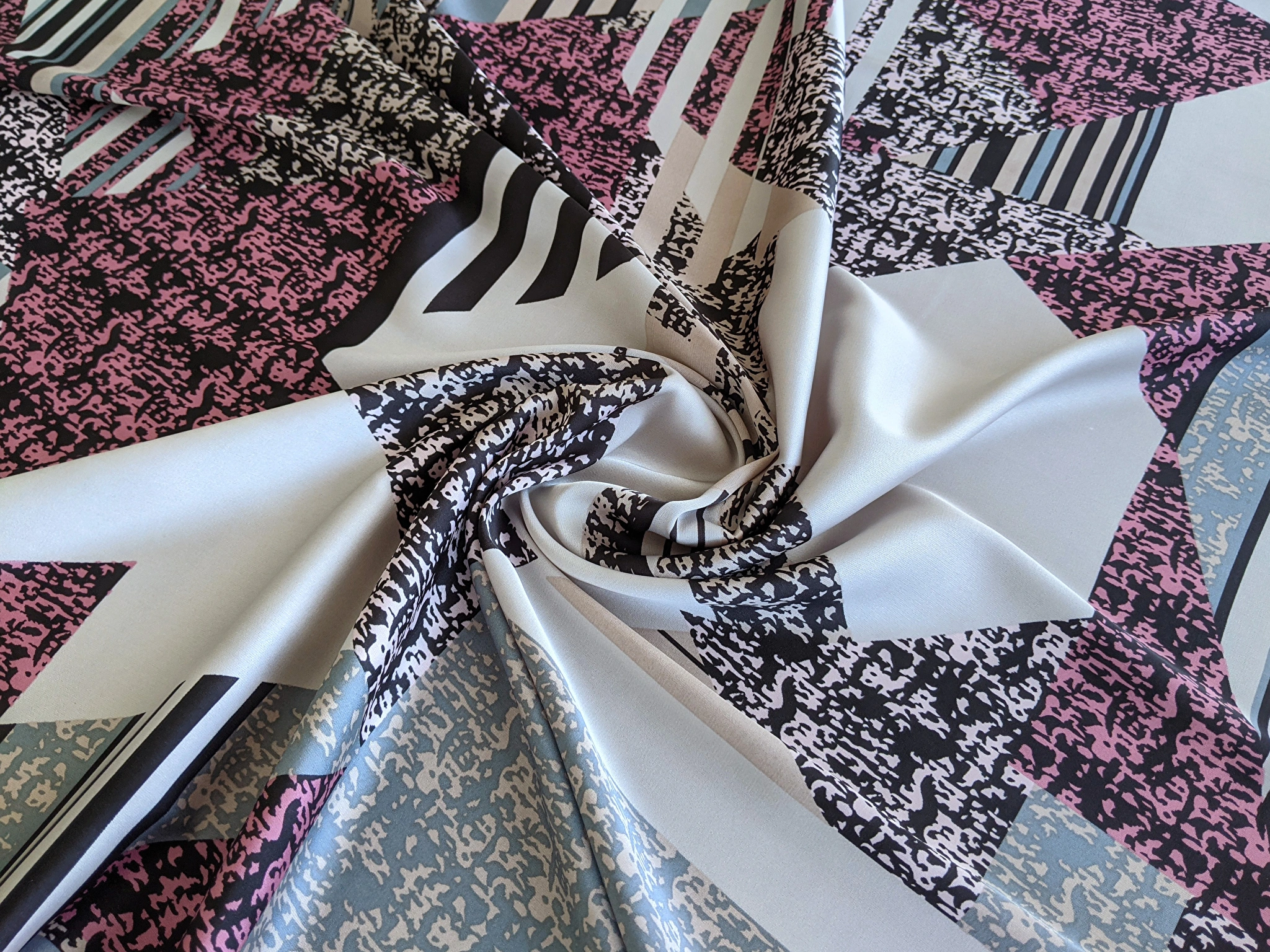 Шовк сатин геометрична абстракція, рожевий