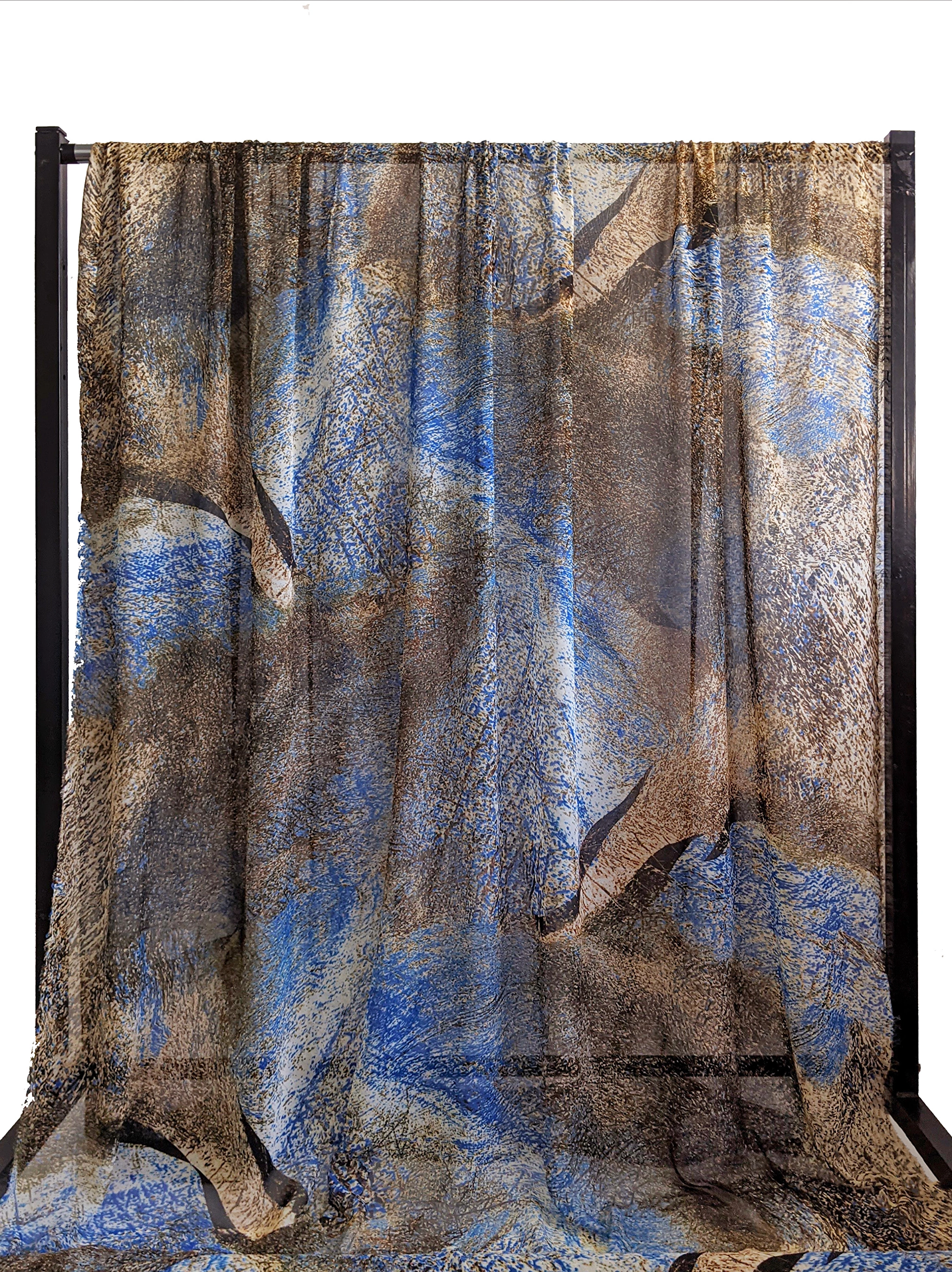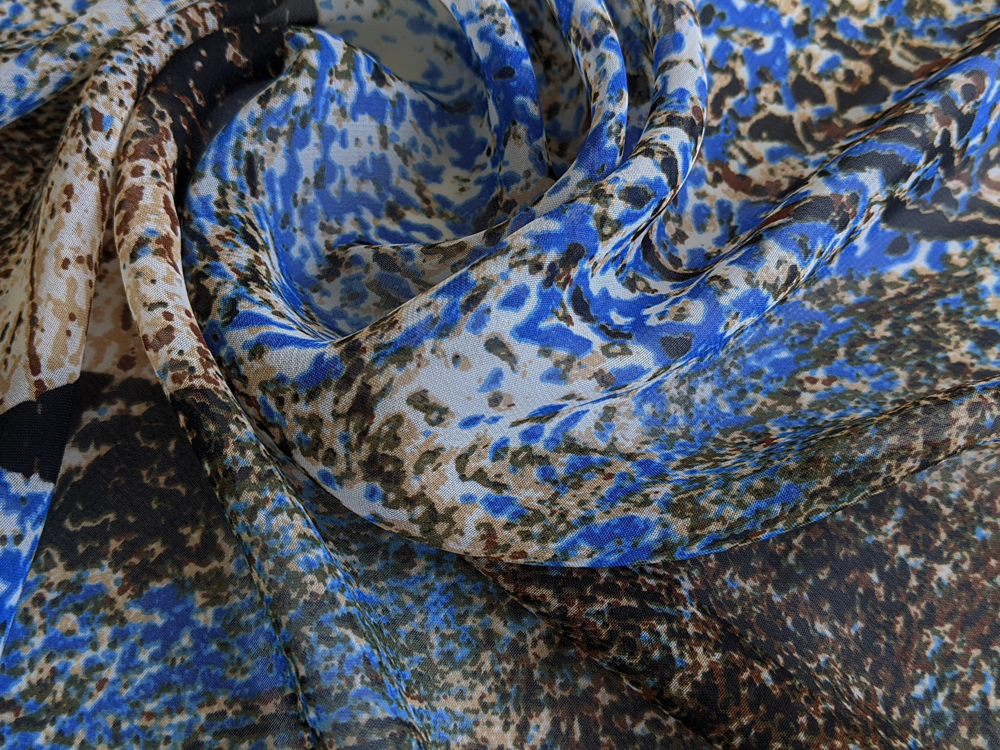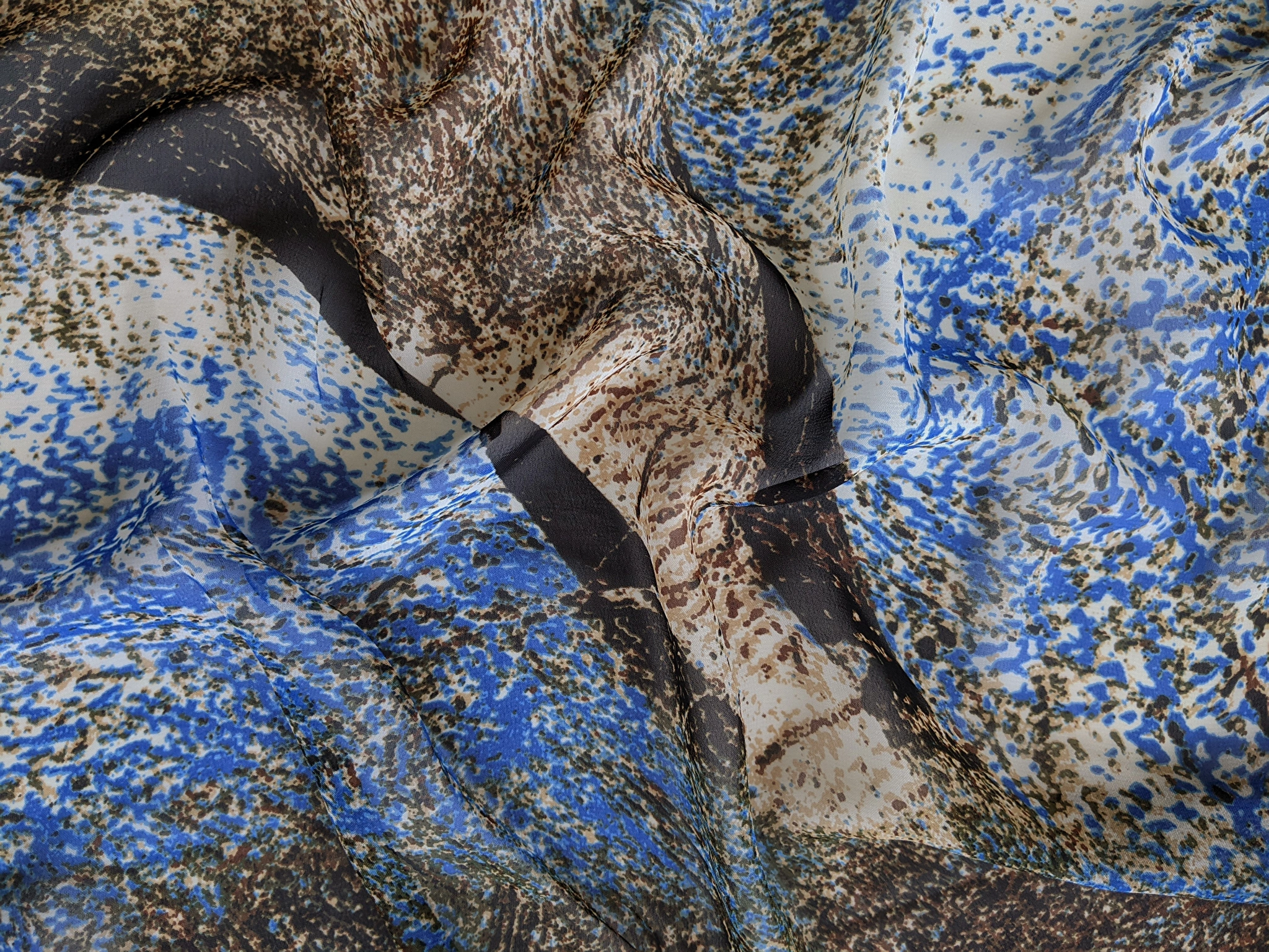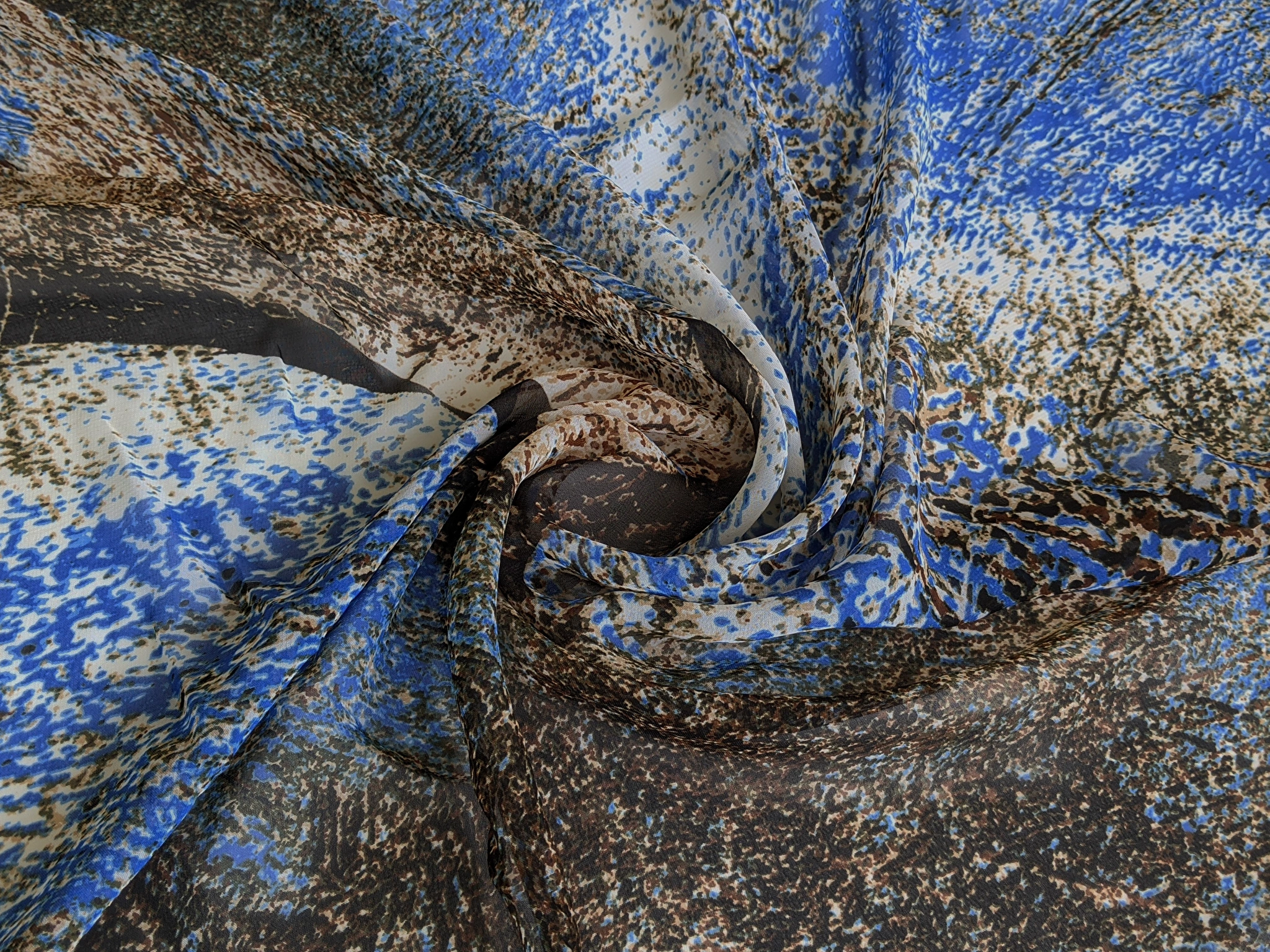 Шифон акварельні бризги, синій с коричневим