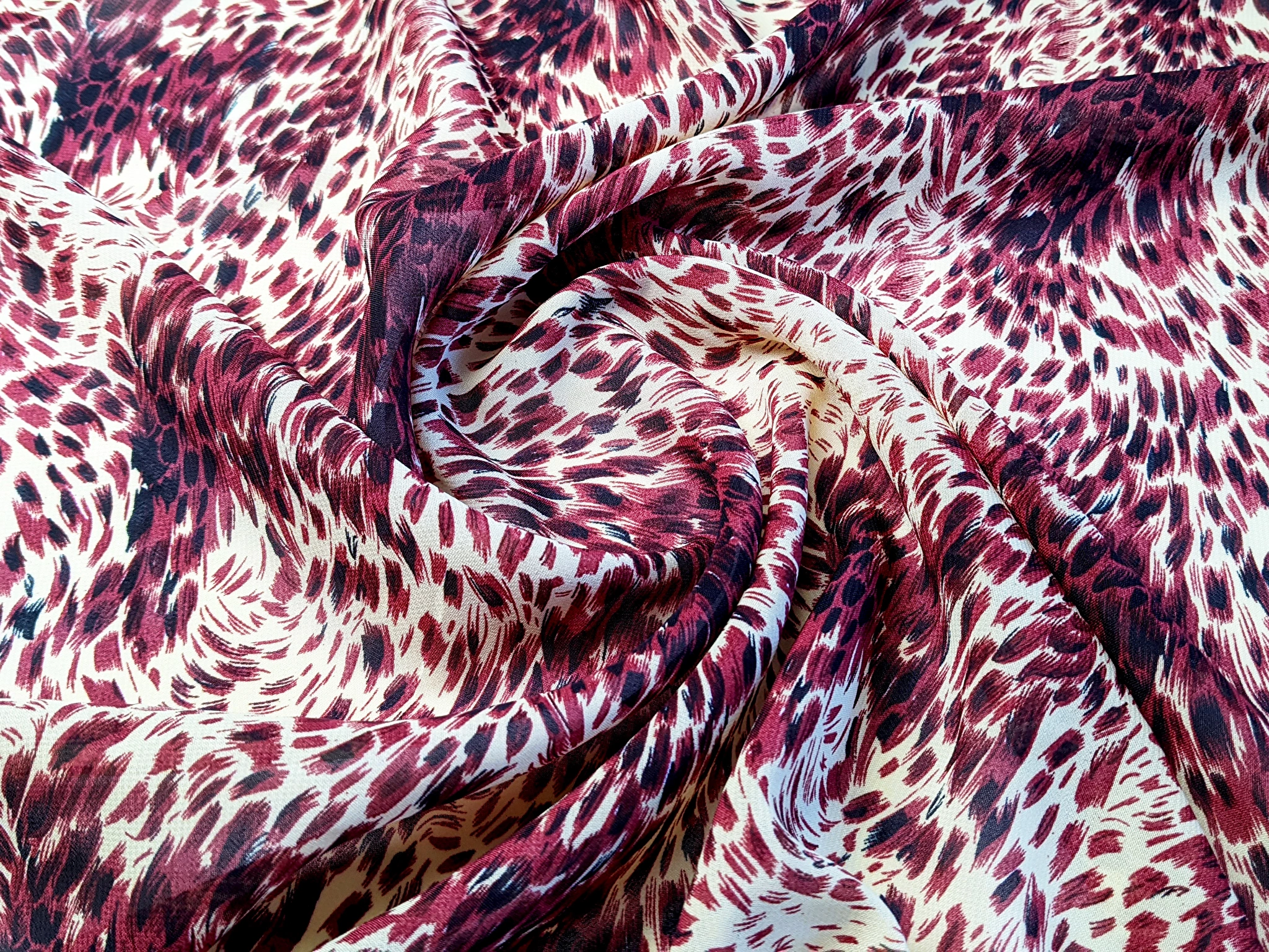 Шифон акварельні бризки, бордовий з бежевим