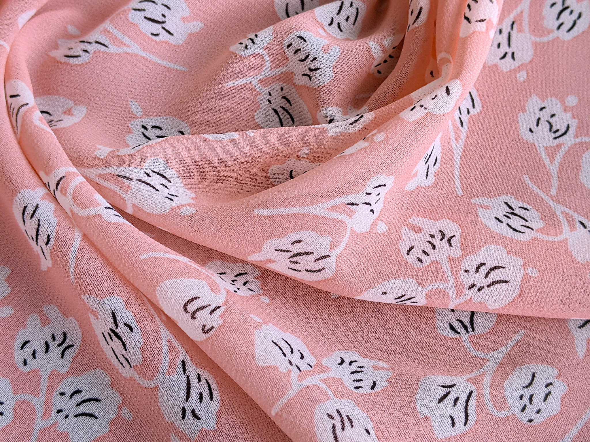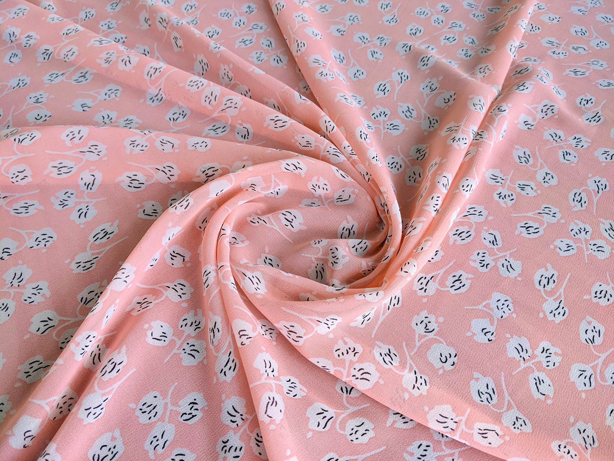 Шифон креповий квіткова ніжність, пудровий рожевий