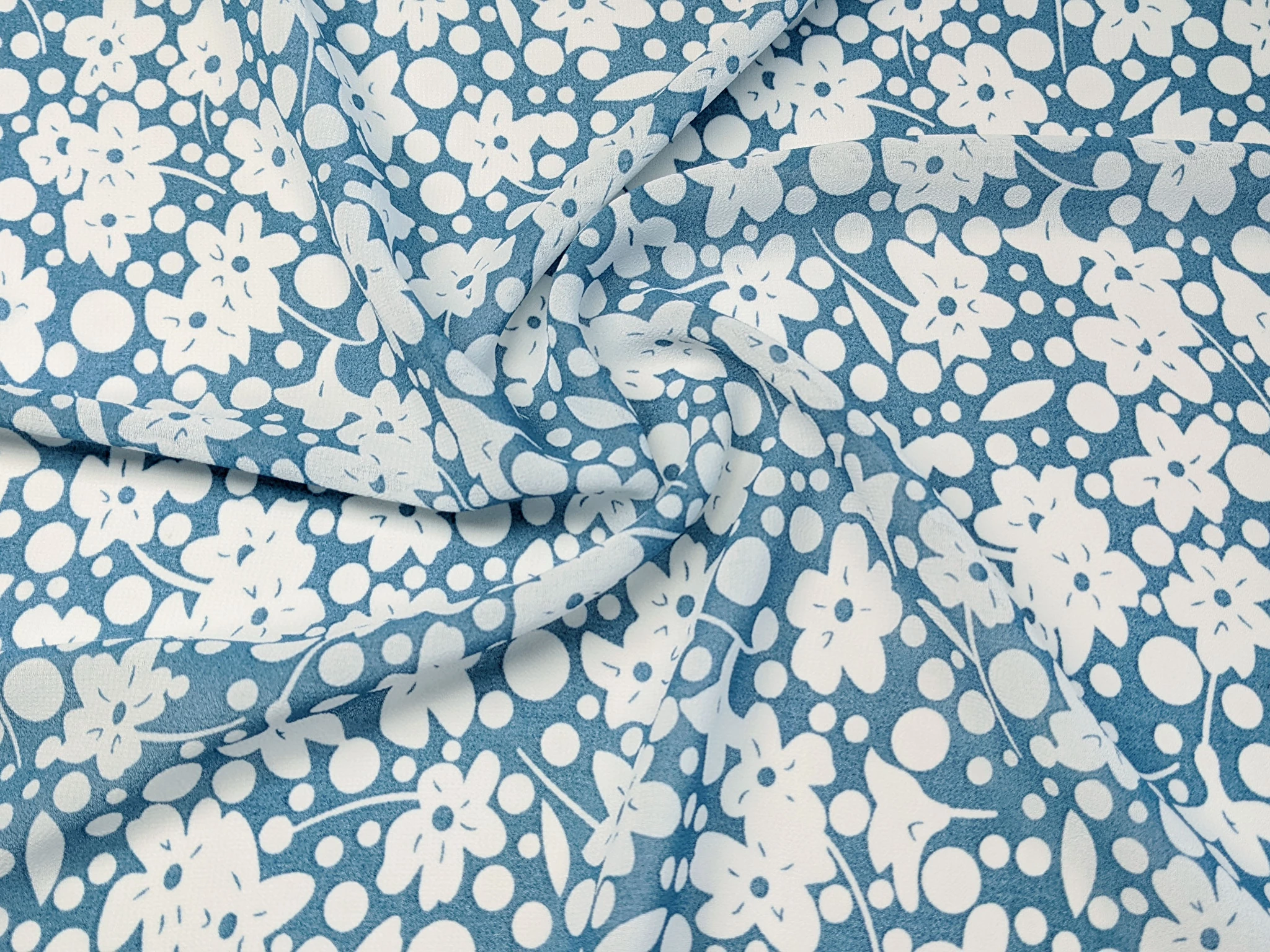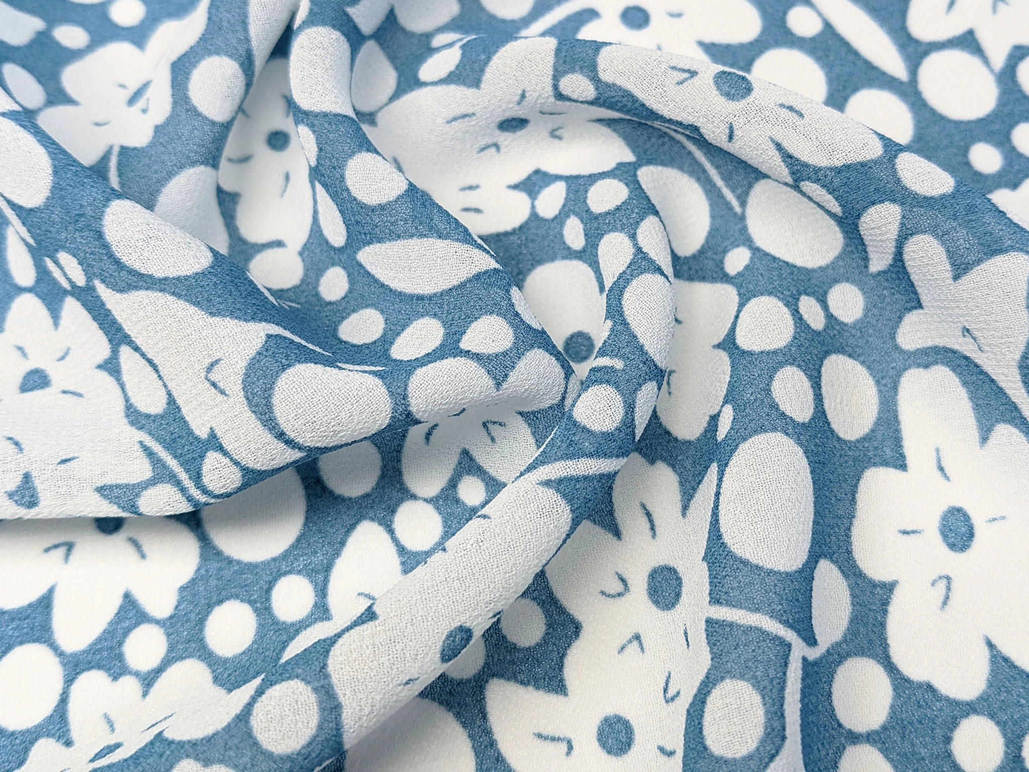 Шифон креповий квіткова примха, джинсовий