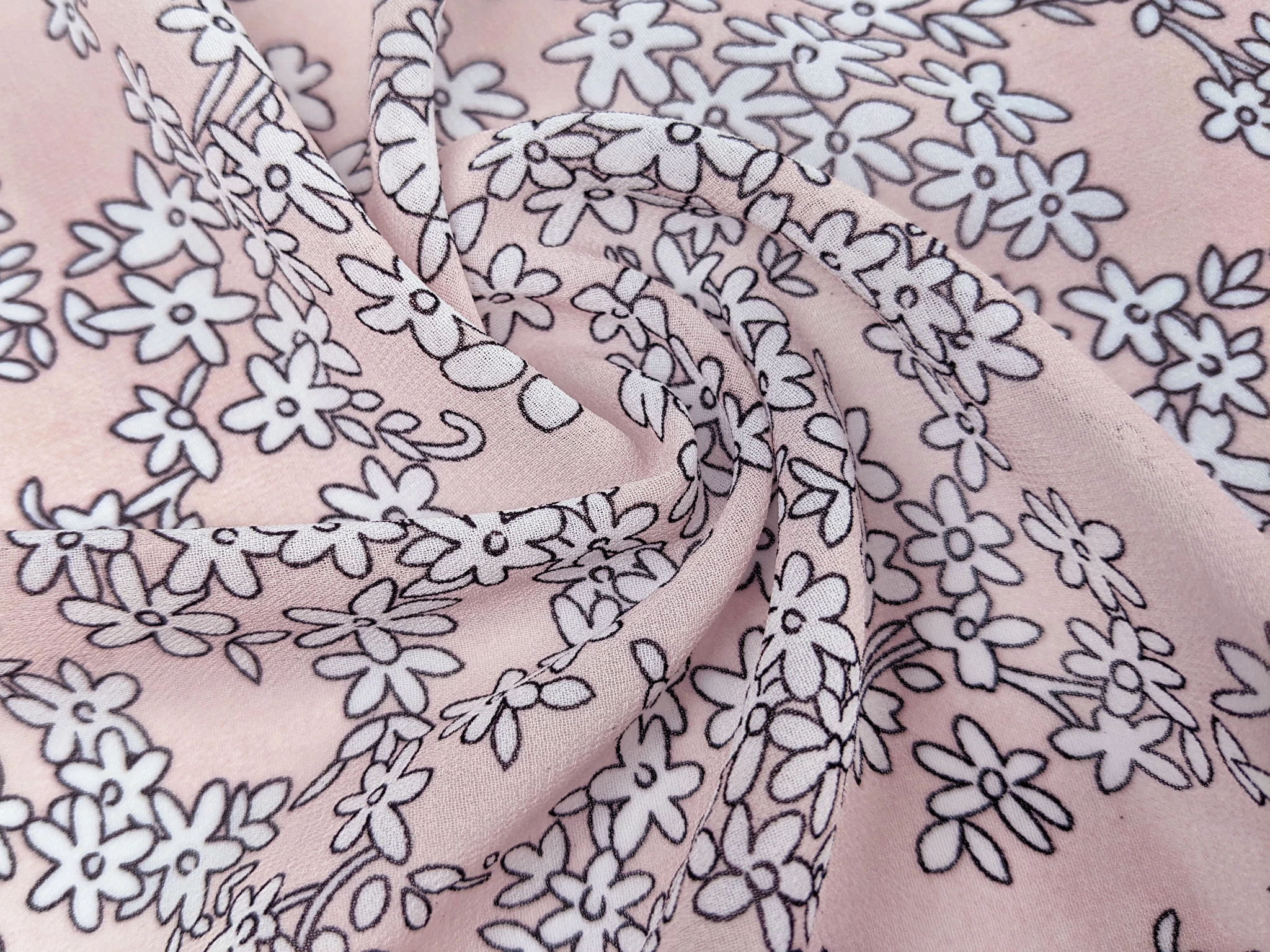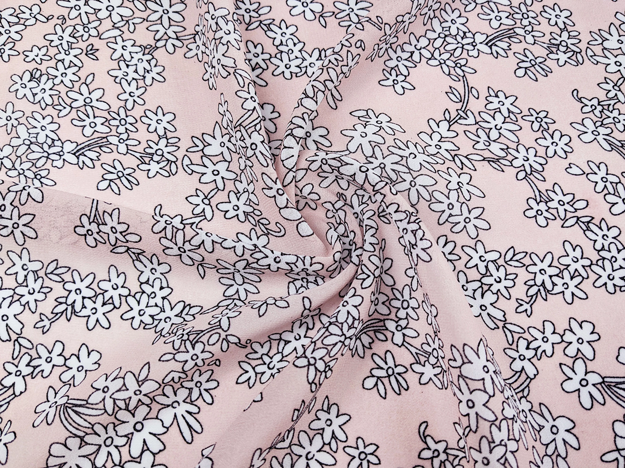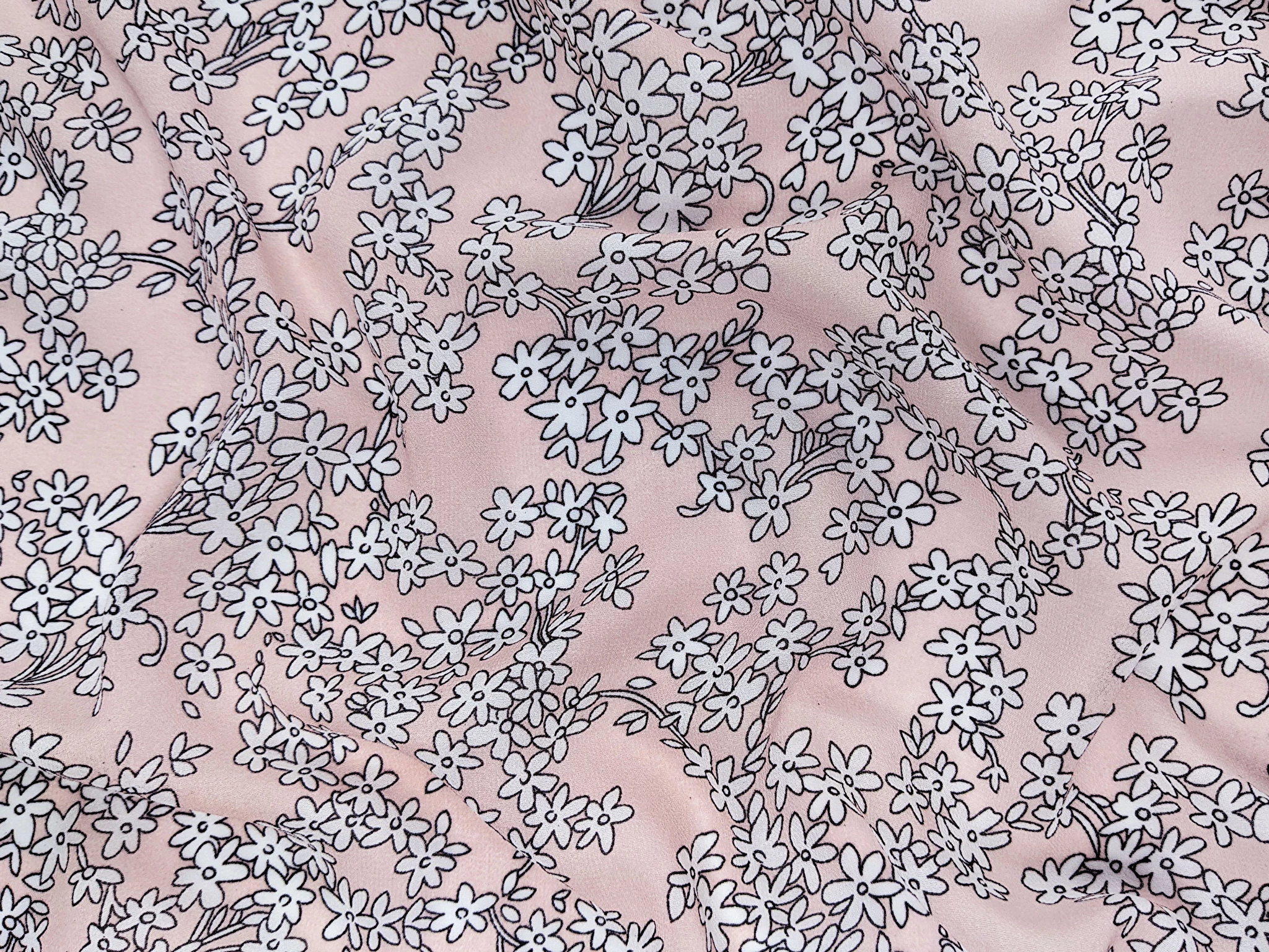 Шифон креповий квіткові акценти, пудровий
