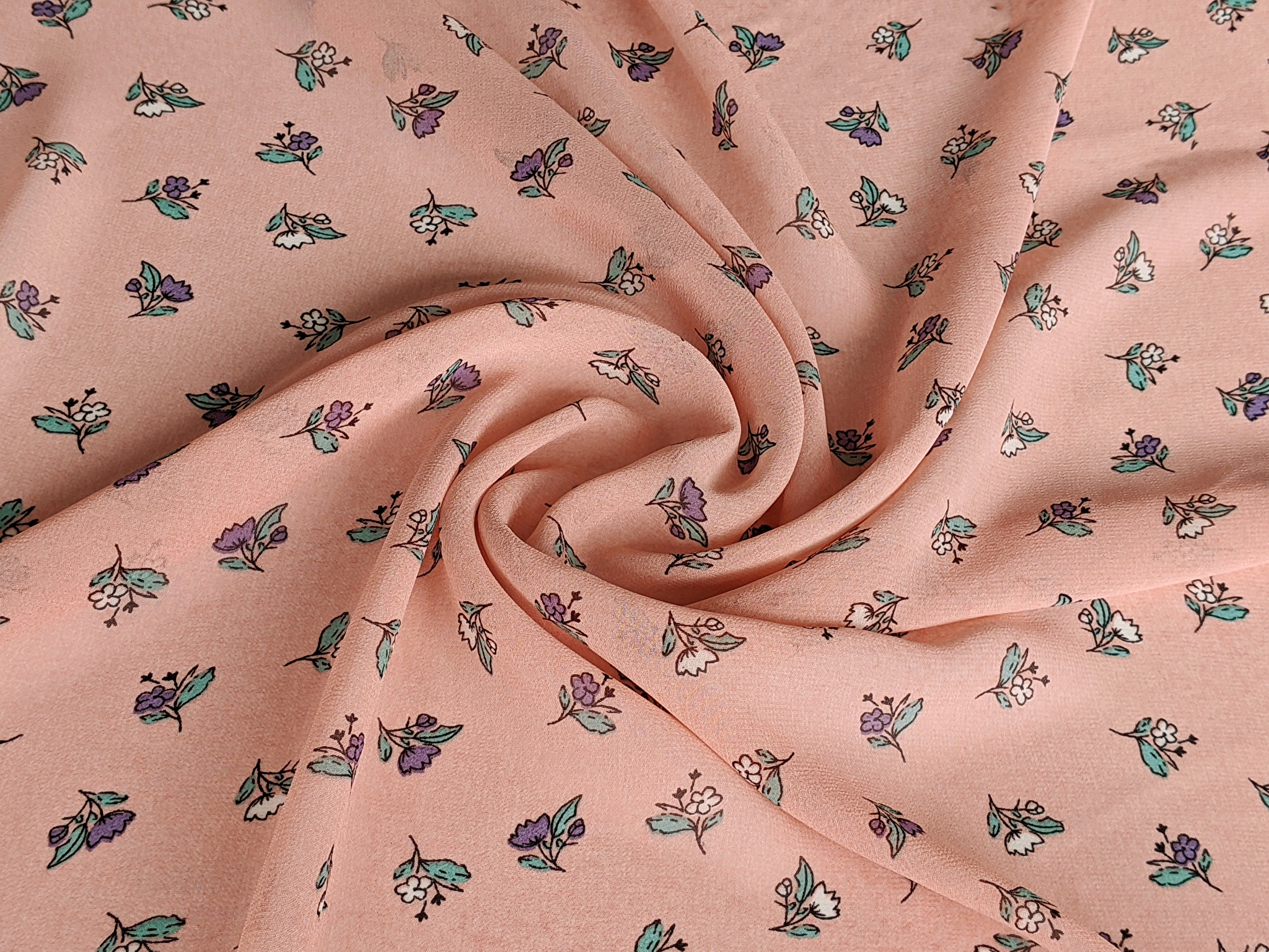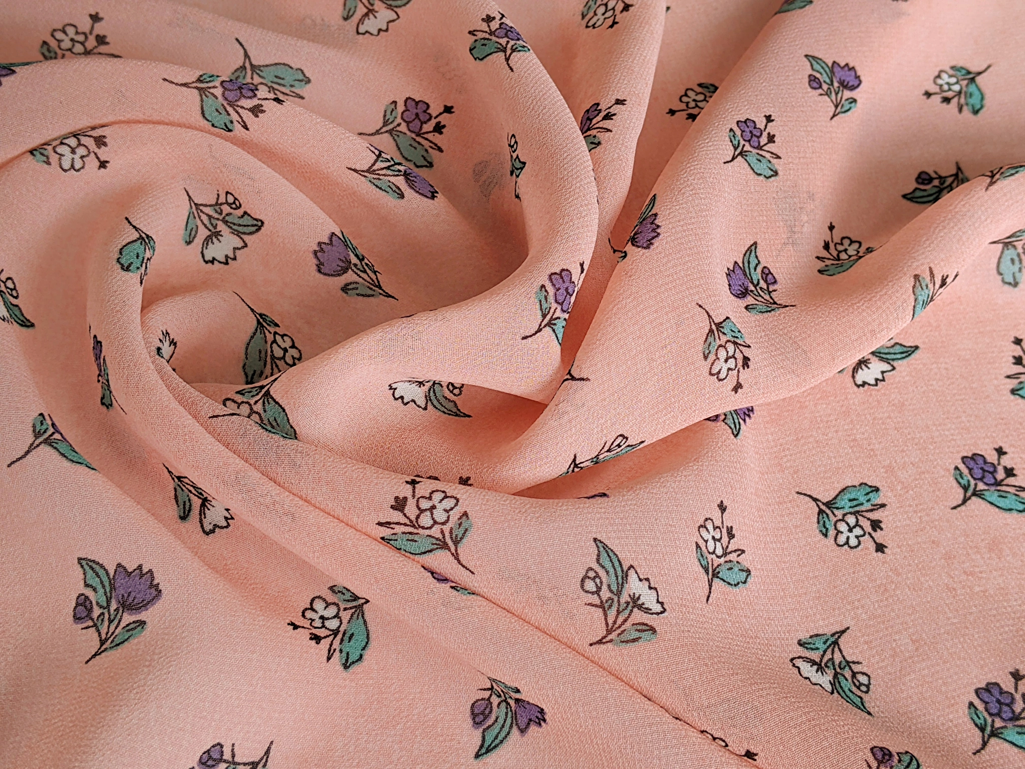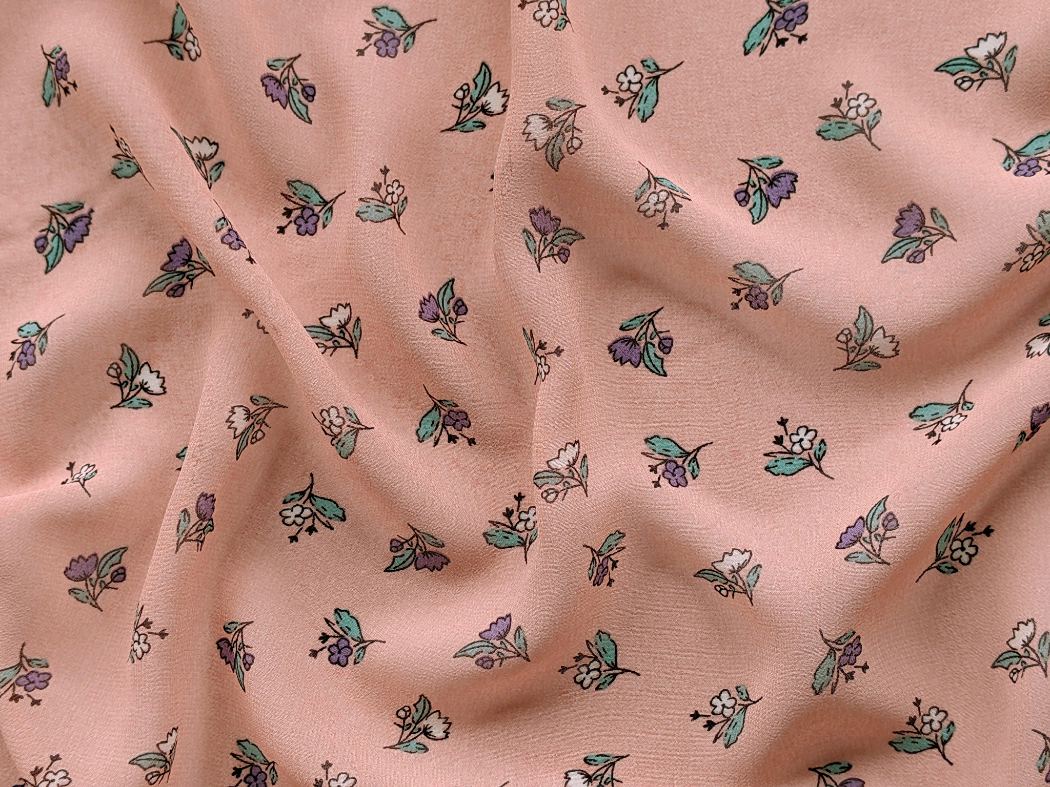 Шифон креповий польові квіти, персиковий