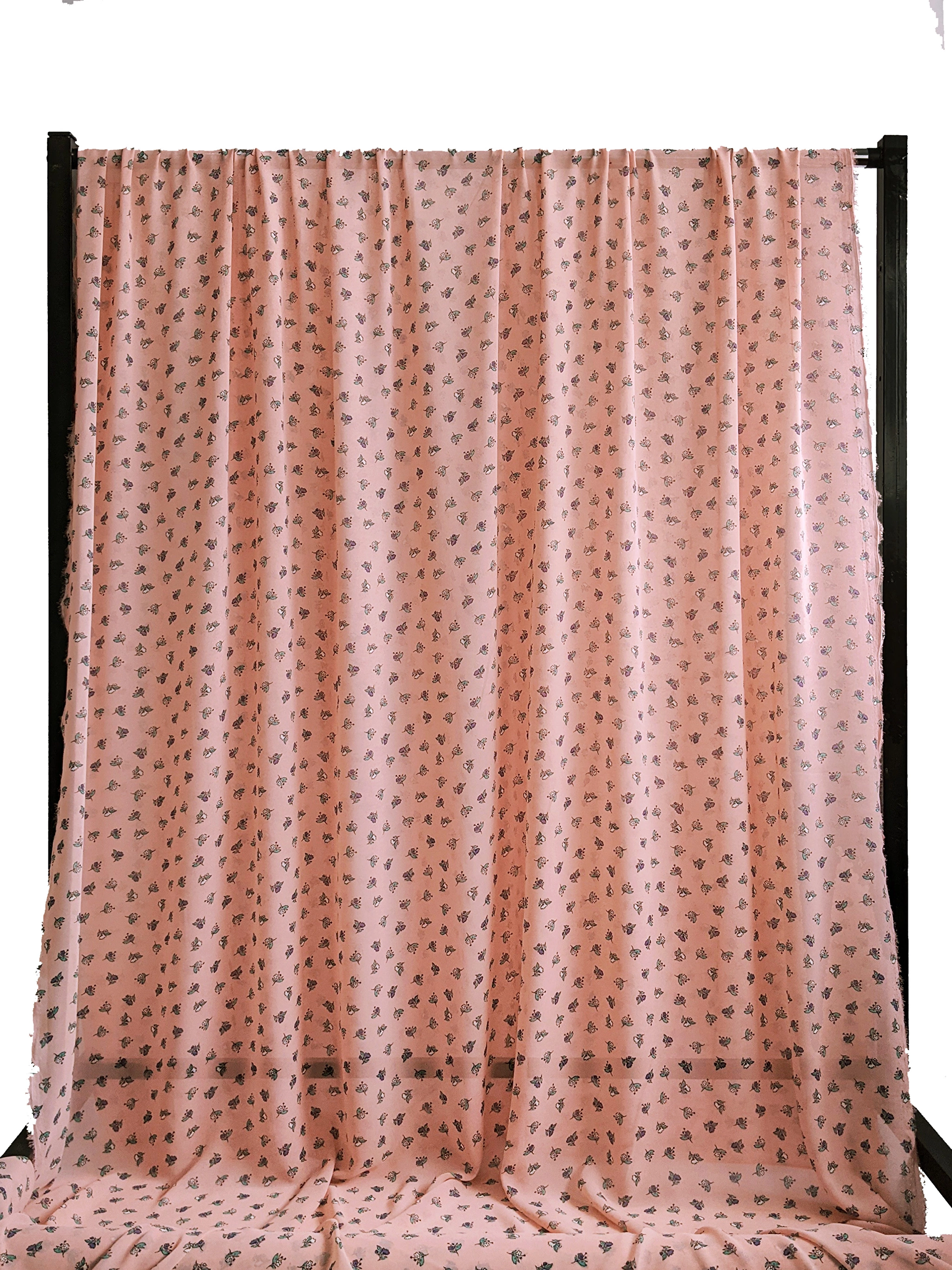 Принтований креп-шифон - це напівпрозора шорстка тканина. Тканина гарно драпірується. Прати й прасувати вироби з крепа- шифону коштує з обережністю, вибираючи делікатні режими. Полотно дуже міцне завдяки туго переплетених ниток. Для пошиття суконь рекомендуємо придбати легку підкладкову тканину.