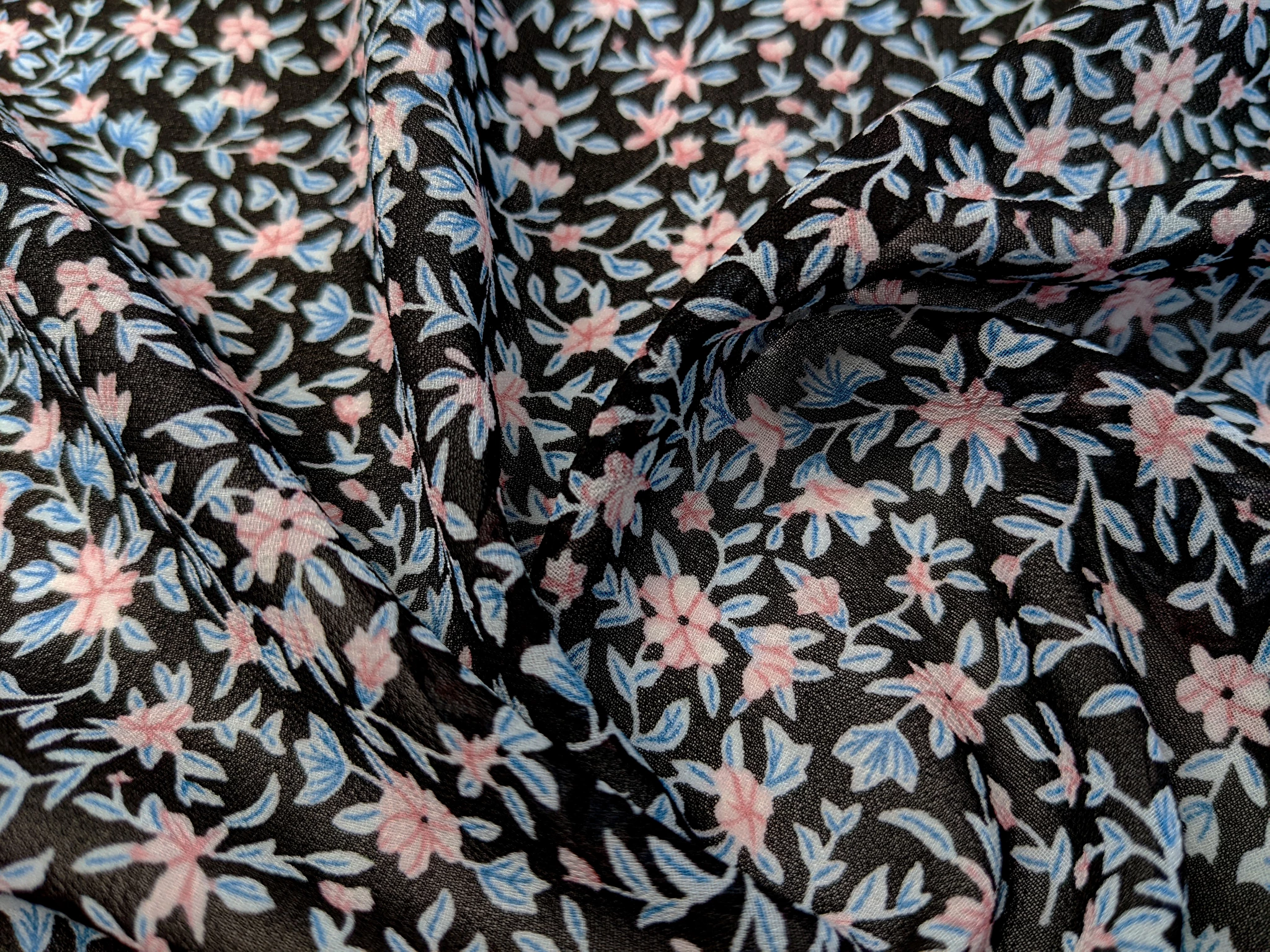 Шифон креповий райський сад, чорний