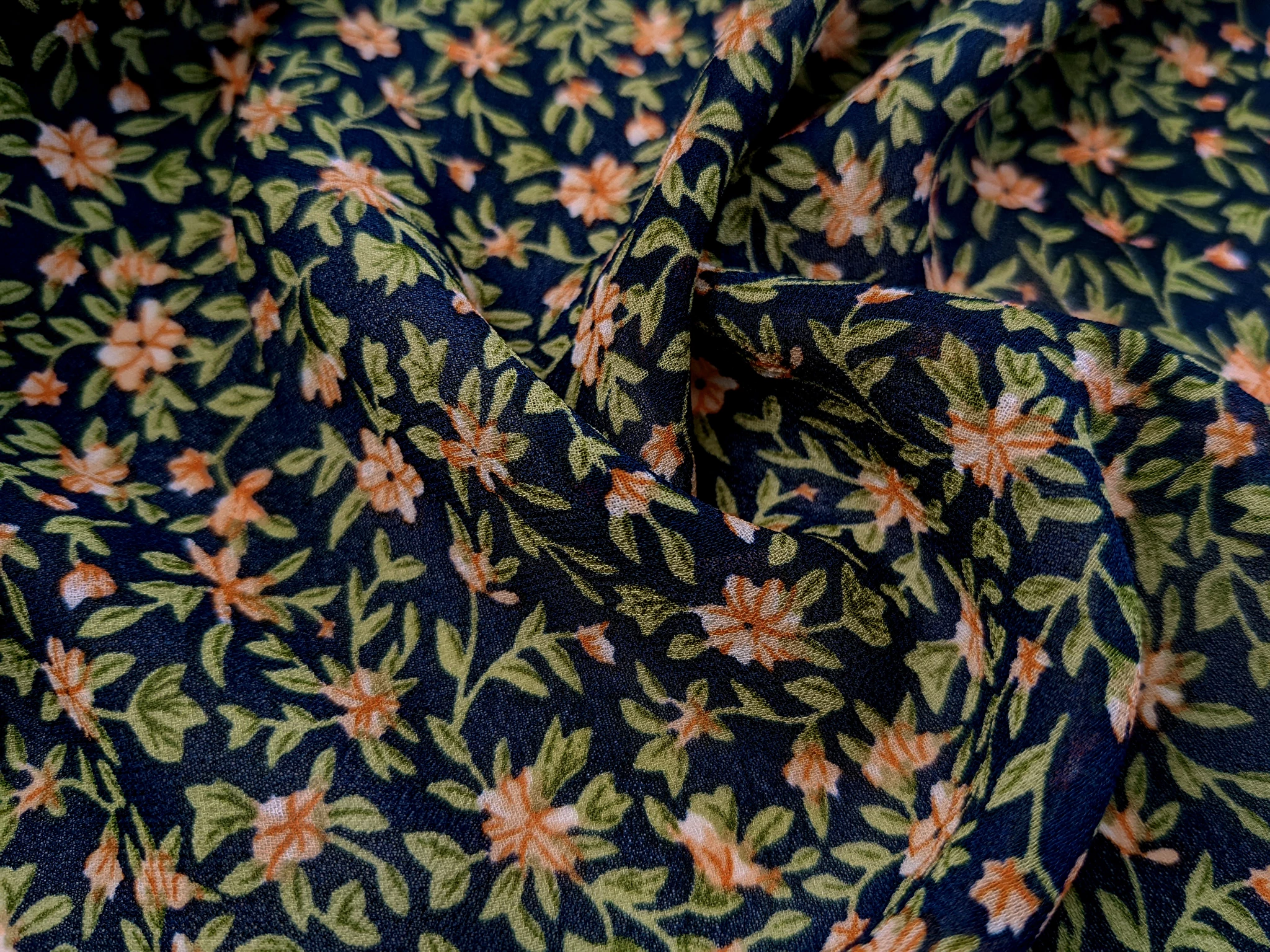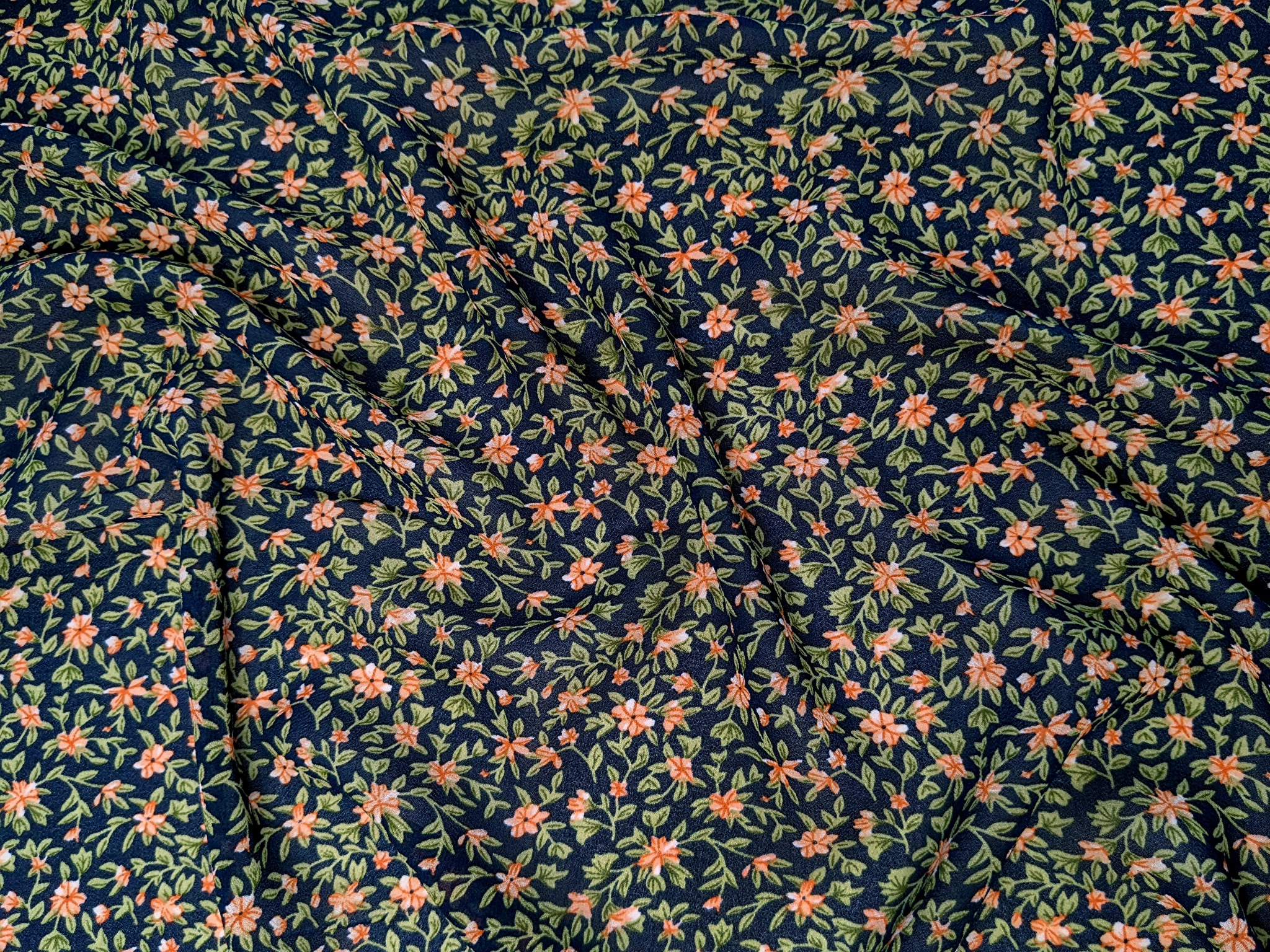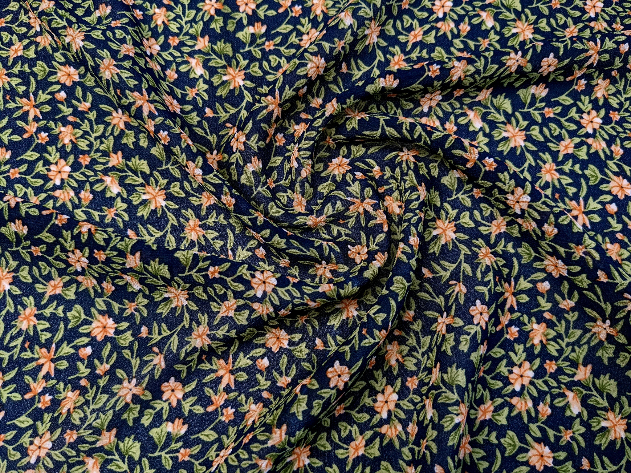 Шифон креповий райський сад, темно-синій