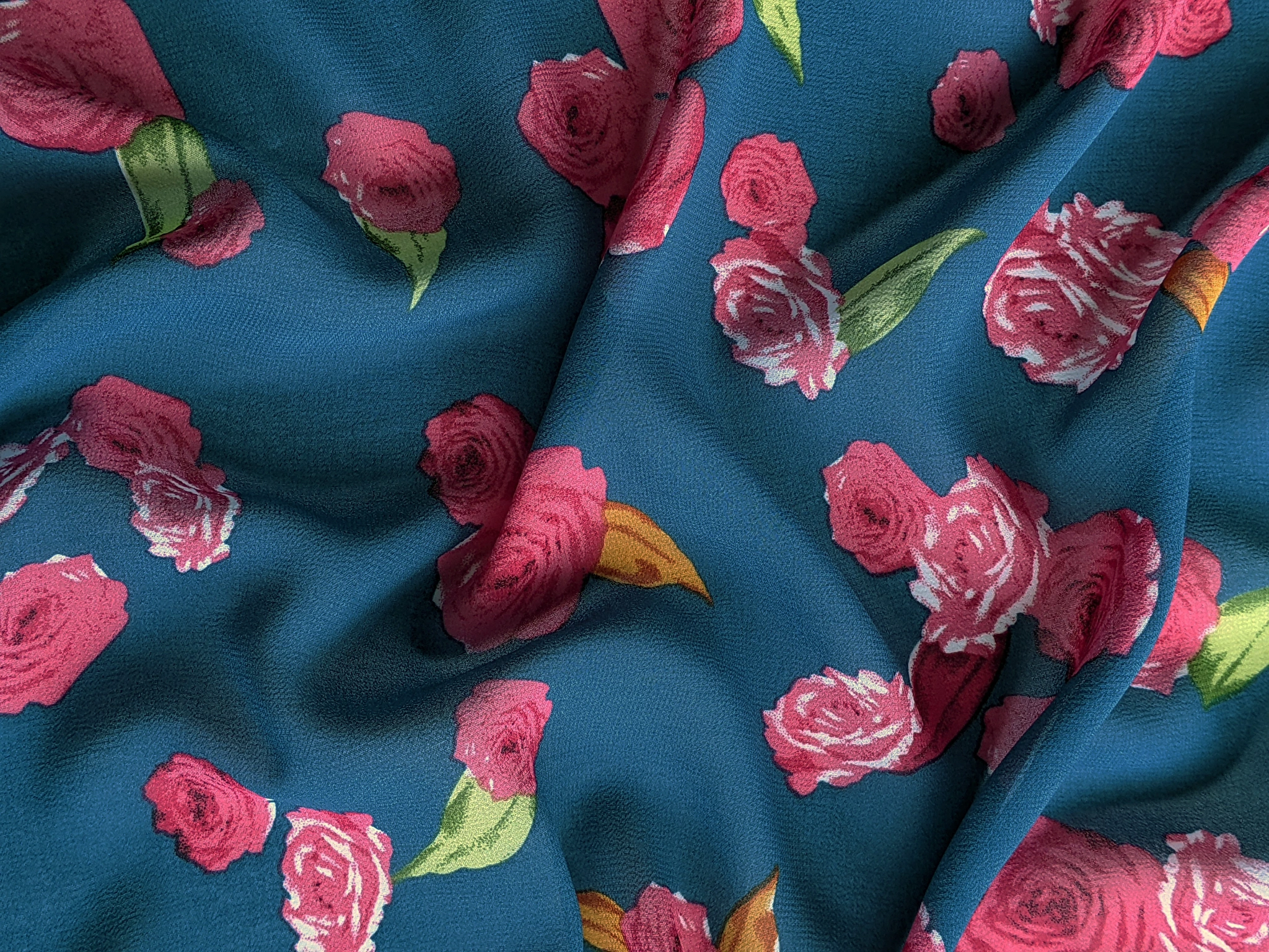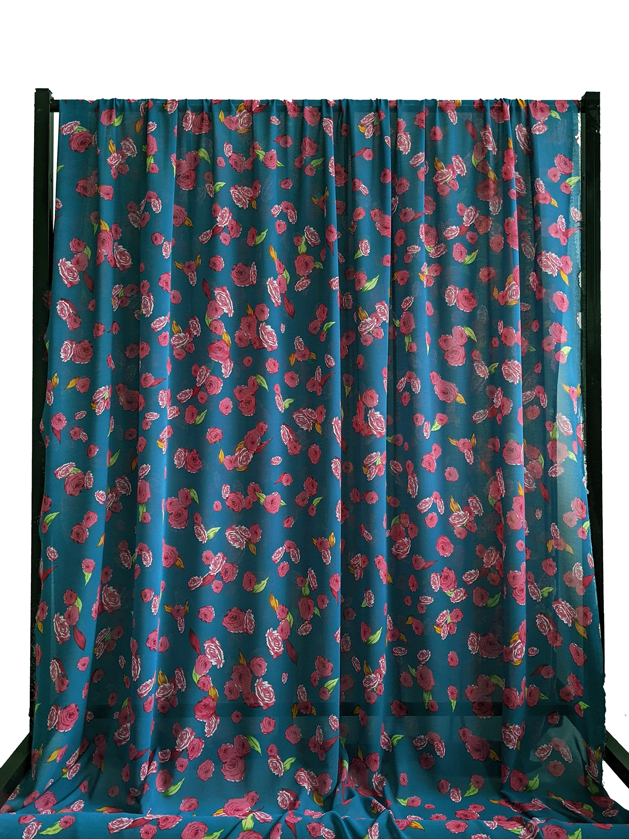 Шифон креповий троянди, блакитна бірюза (ш38, 2010001, д1 цв6)