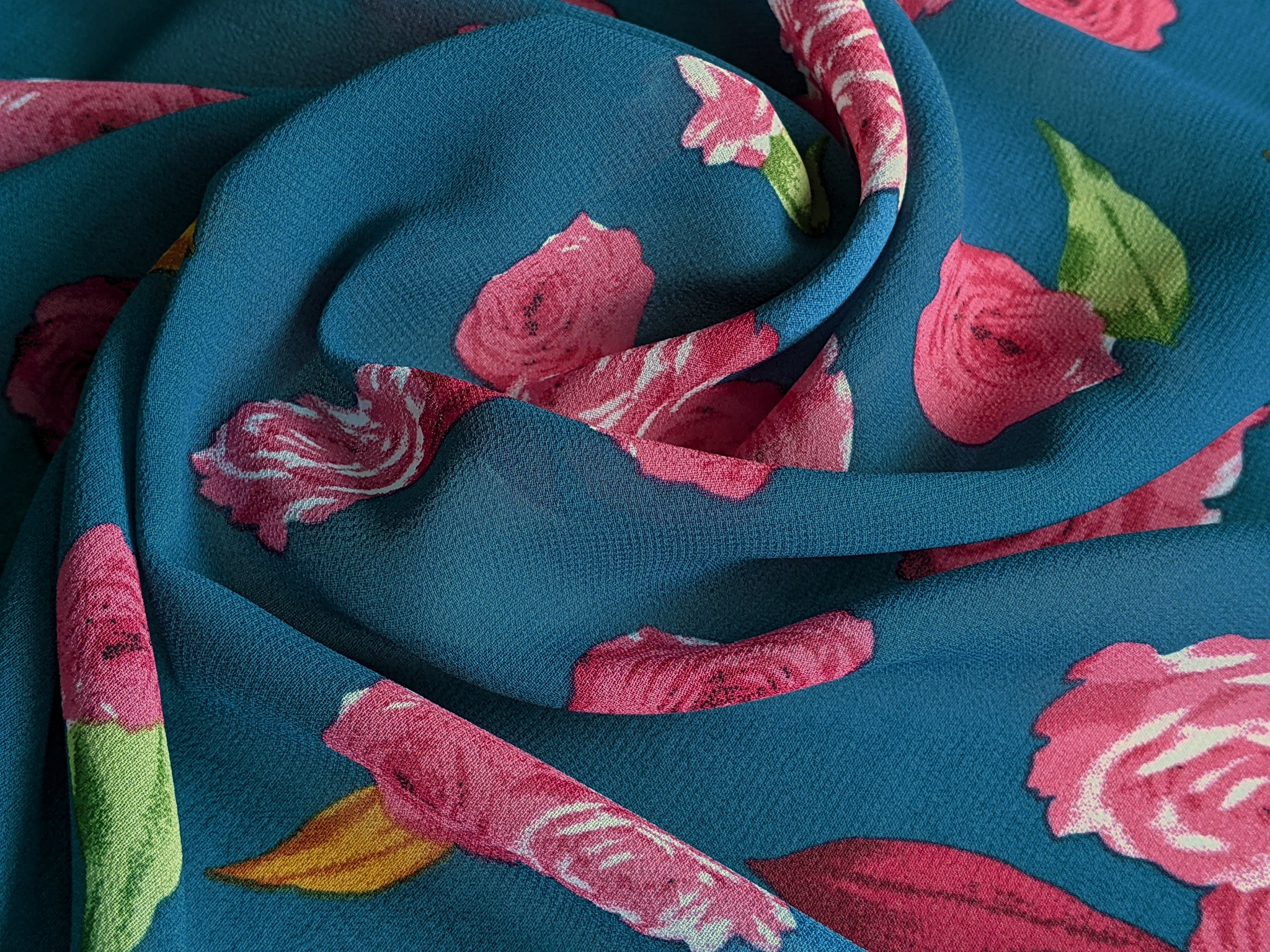 Шифон креповий троянди, блакитна бірюза