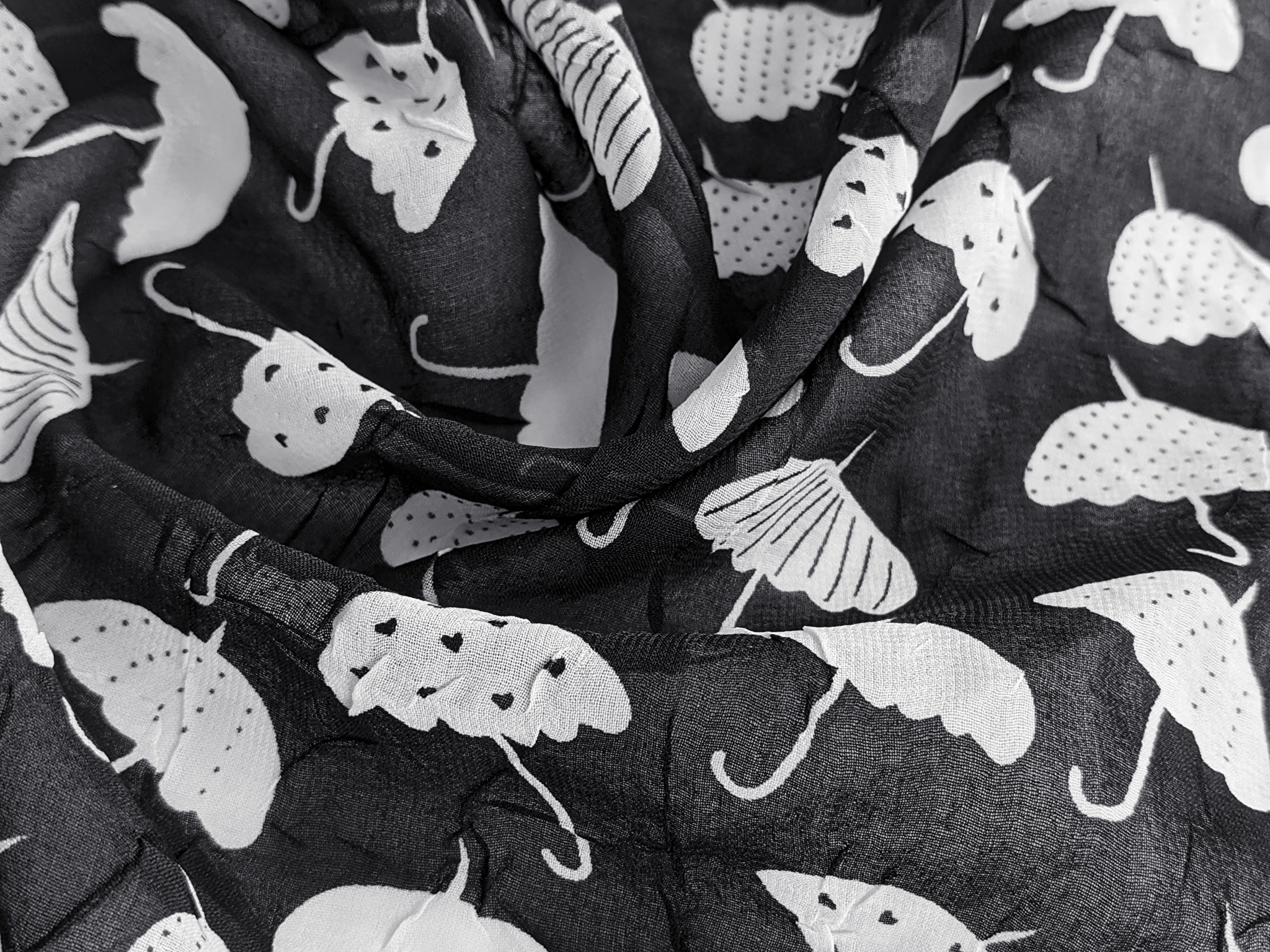 Цікаві принти на шовковистому шифоні зможуть стати яскравим акцентом як в повсякденному, так і в офісному стилі. Полотно застосовують для пошиття блуз, суконь, сарафанів і спідниць. Для шифонових тканин необхідна підкладкова основа, тк тканина напівпрозорі.
