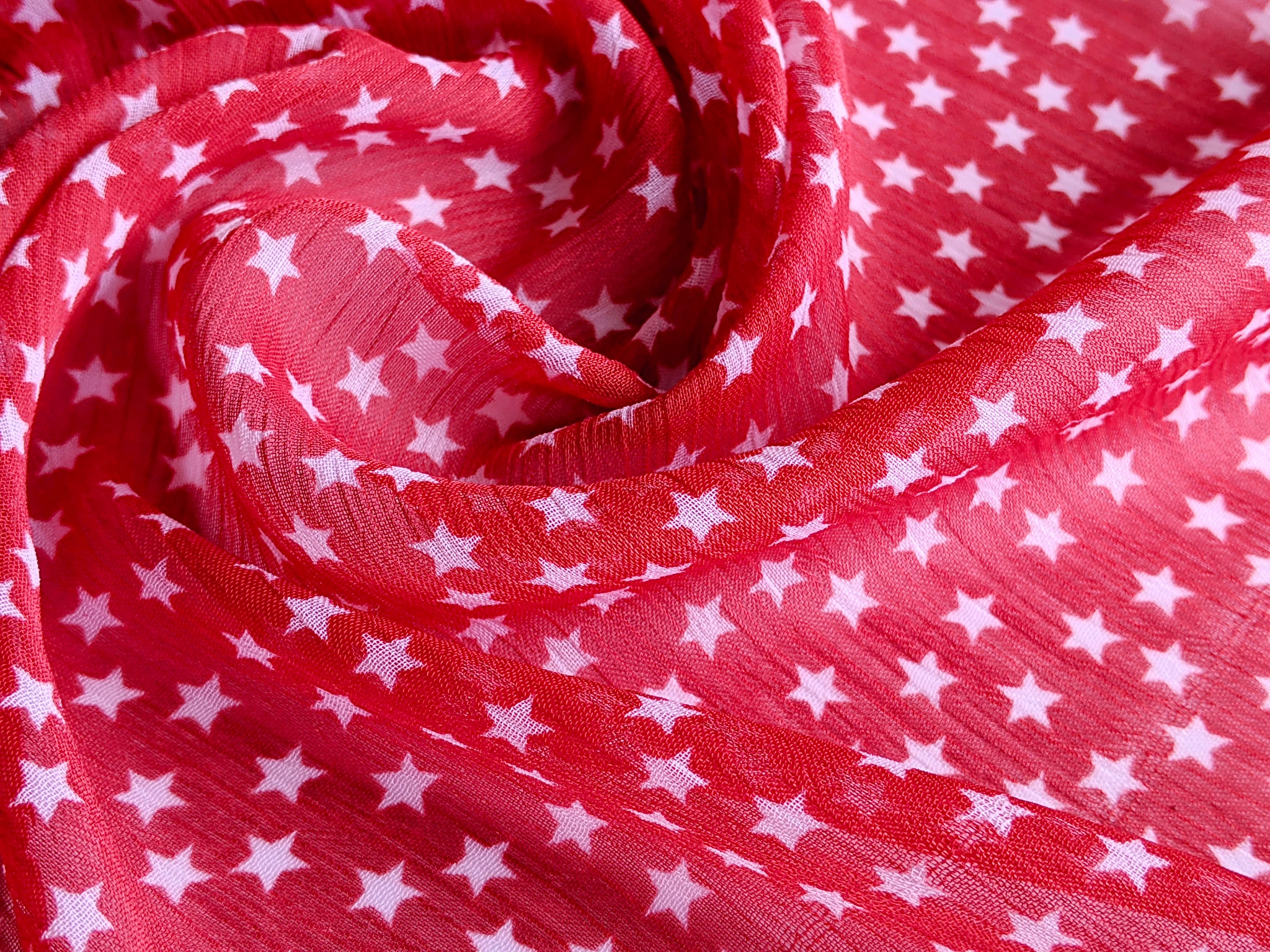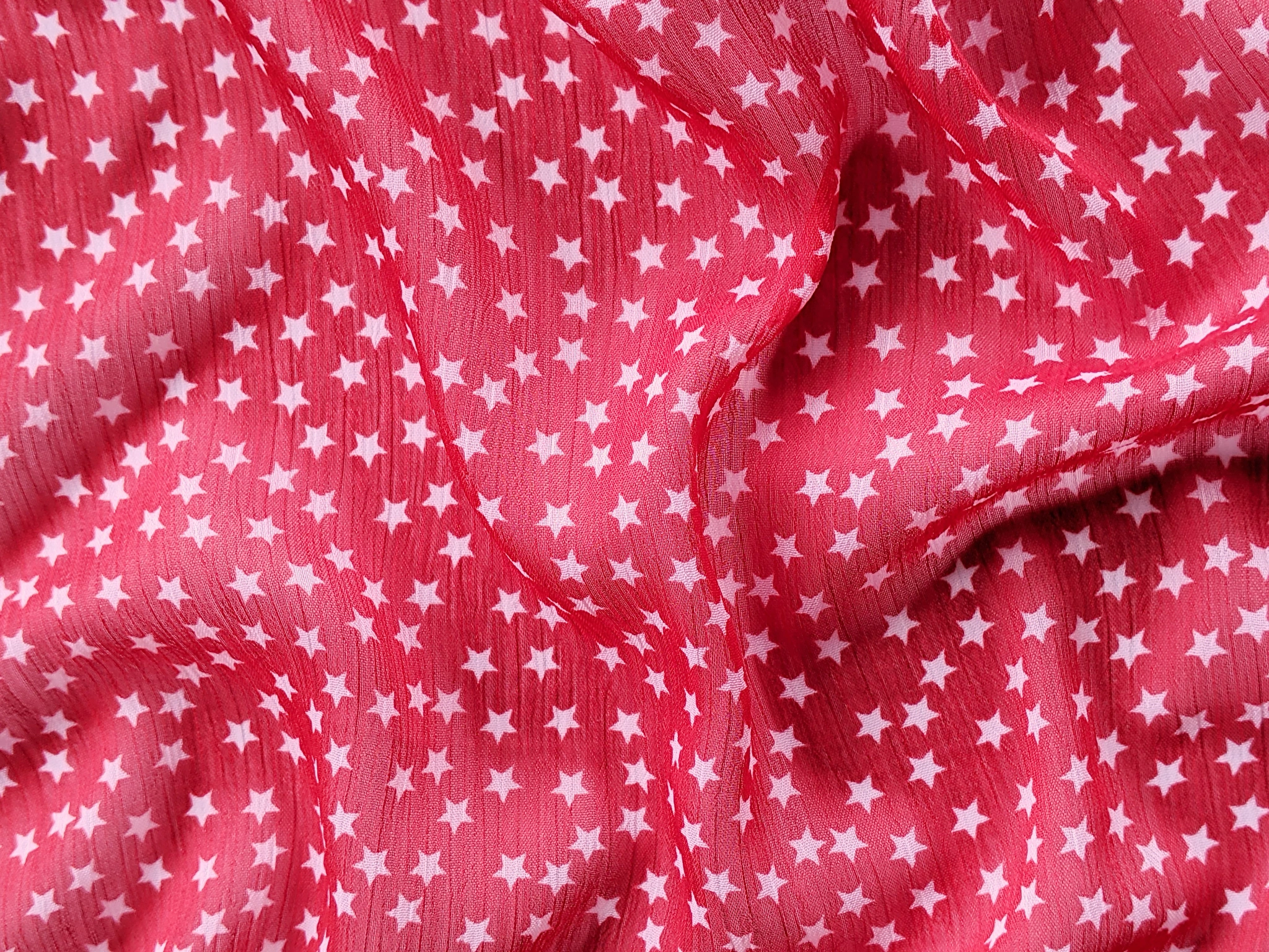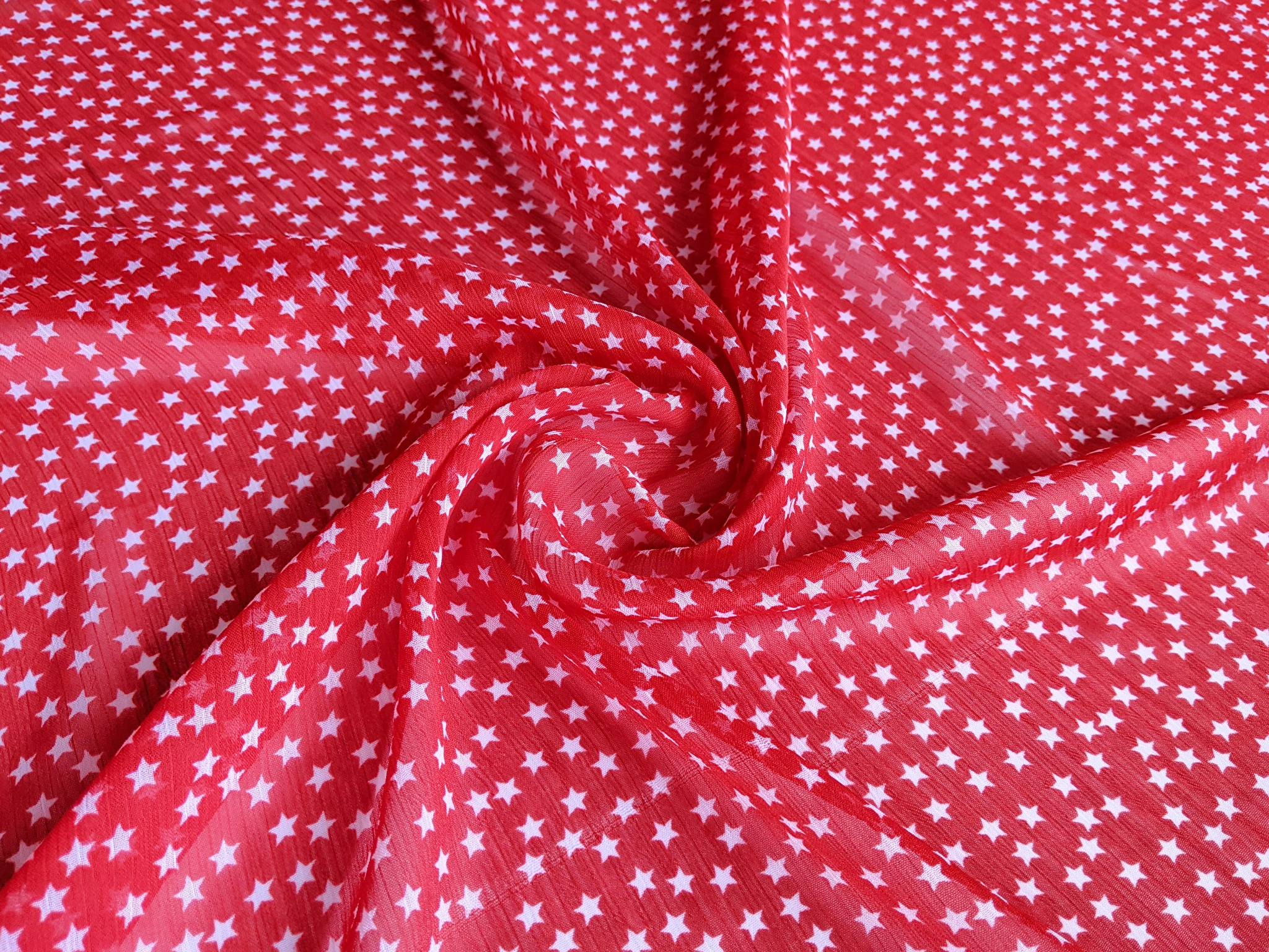 Шифон - це легка, тонка і прозора тканина. Тканина має піщану структуру і шорстку поверхню. Шифон асоціюється з жіночністю та ніжністю. Полотно не мнеться і красиво драпірується, тому використовується для пошиття блуз, суконь, спідниць та сарафанів. Шифон можна комбінувати з трикотажем в якості підкладки. Прати тканину краще в спеціальному мішечку в режимі ручного прання і прасувати через марлю.