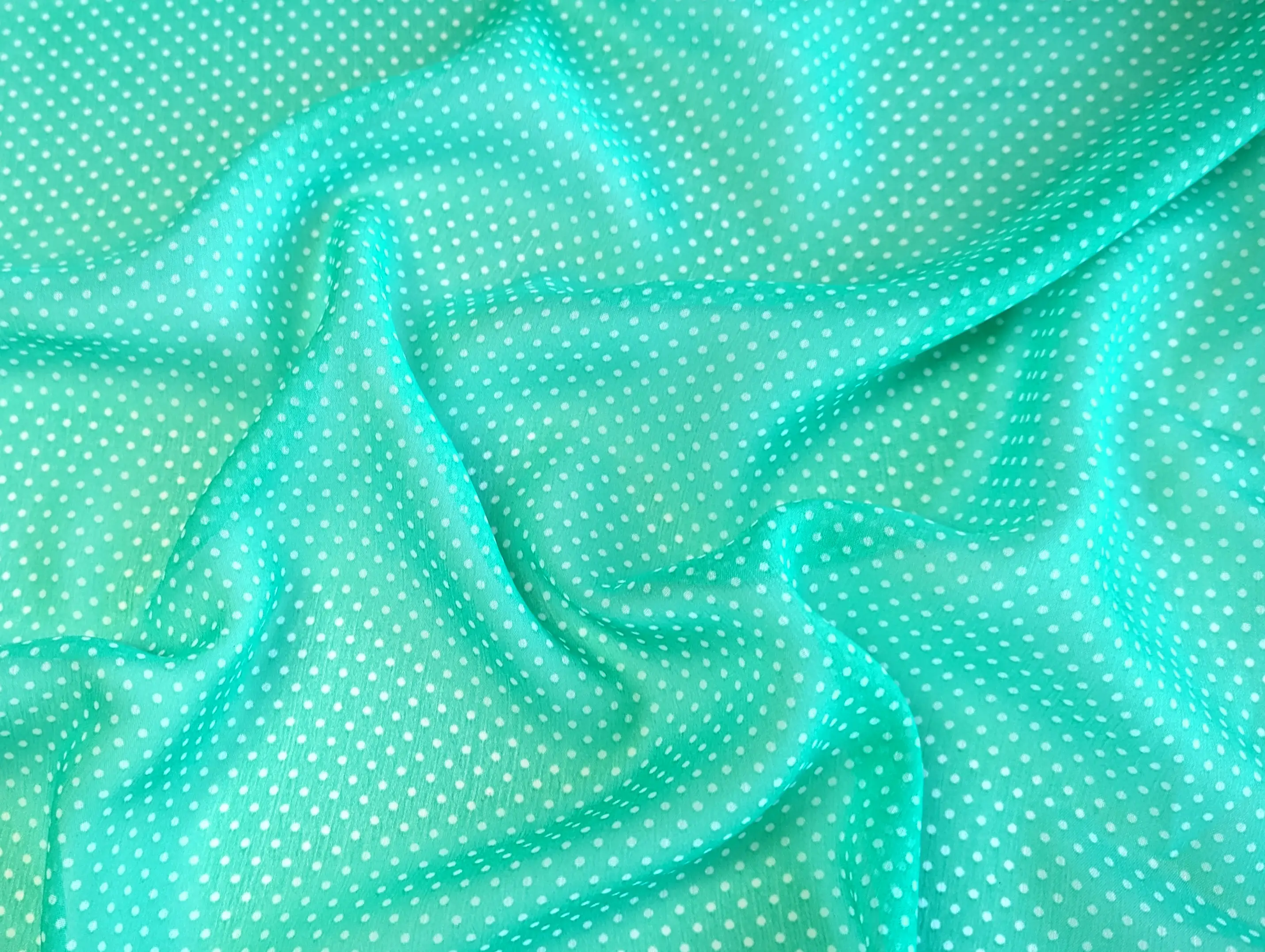 Шифон - це легка, тонка і прозора тканина. Тканина має піщану структуру і шорстку поверхню. Шифон асоціюється з жіночністю та ніжністю. Полотно не мнеться і красиво драпірується, тому використовується для пошиття блуз, суконь, спідниць та сарафанів. Шифон можна комбінувати з трикотажем в якості підкладки. Прати тканину краще в спеціальному мішечку в режимі ручного прання і прасувати через марлю.