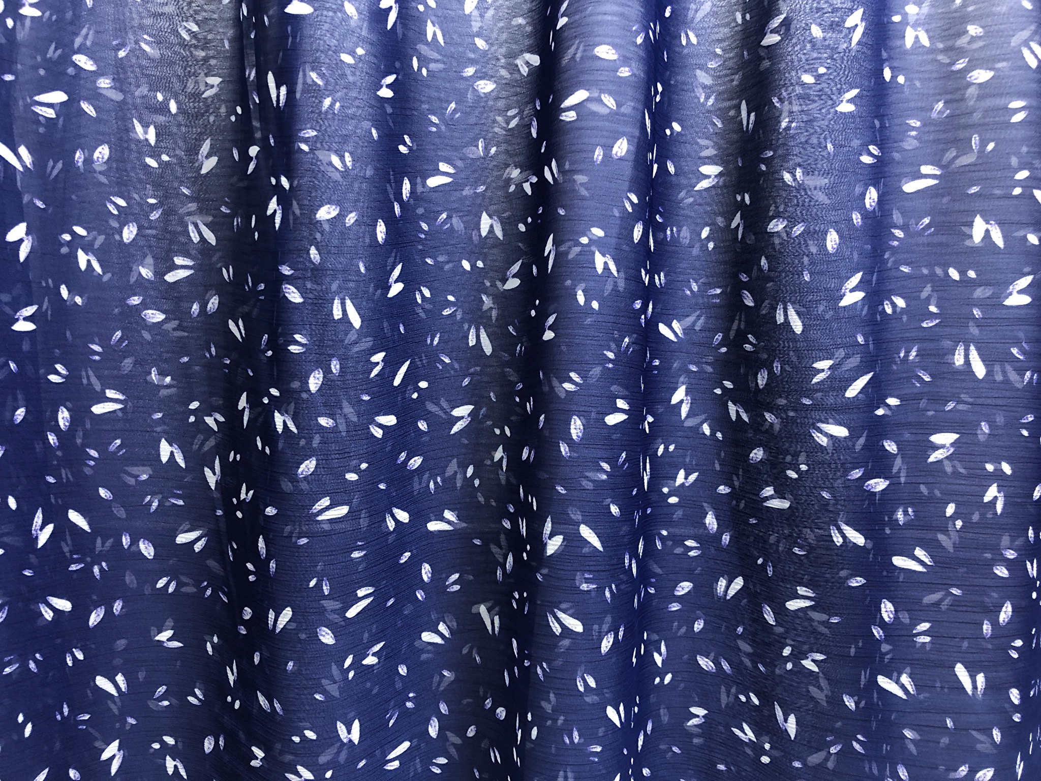 Шифон - це легка, тонка і прозора тканина. Тканина має піщану структуру і шорстку поверхню. Шифон асоціюється з жіночністю та ніжністю. Полотно не мнеться і красиво драпірується, тому використовується для пошиття блуз, суконь, спідниць та сарафанів. Шифон можна комбінувати з трикотажем в якості підкладки. Прати тканину краще в спеціальному мішечку в режимі ручного прання і прасувати через марлю.