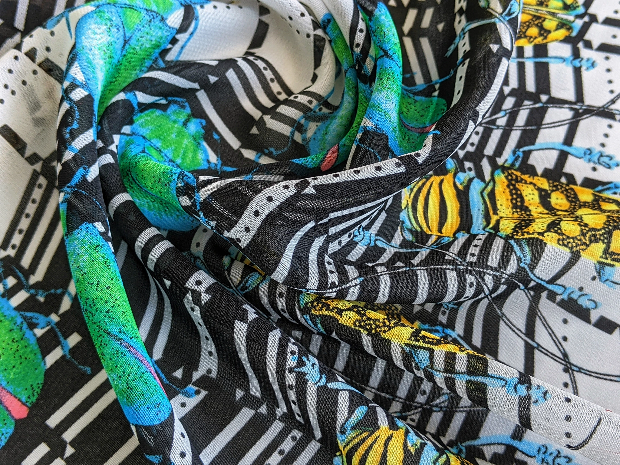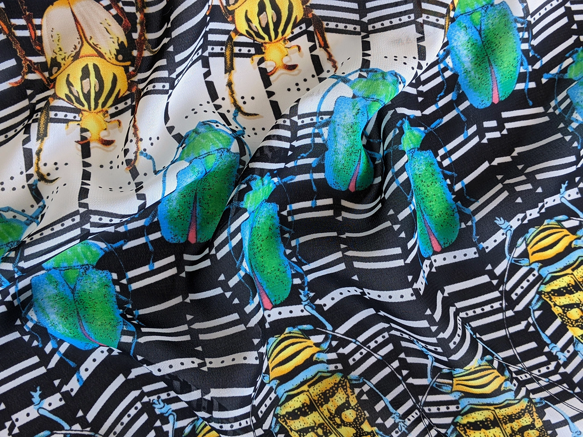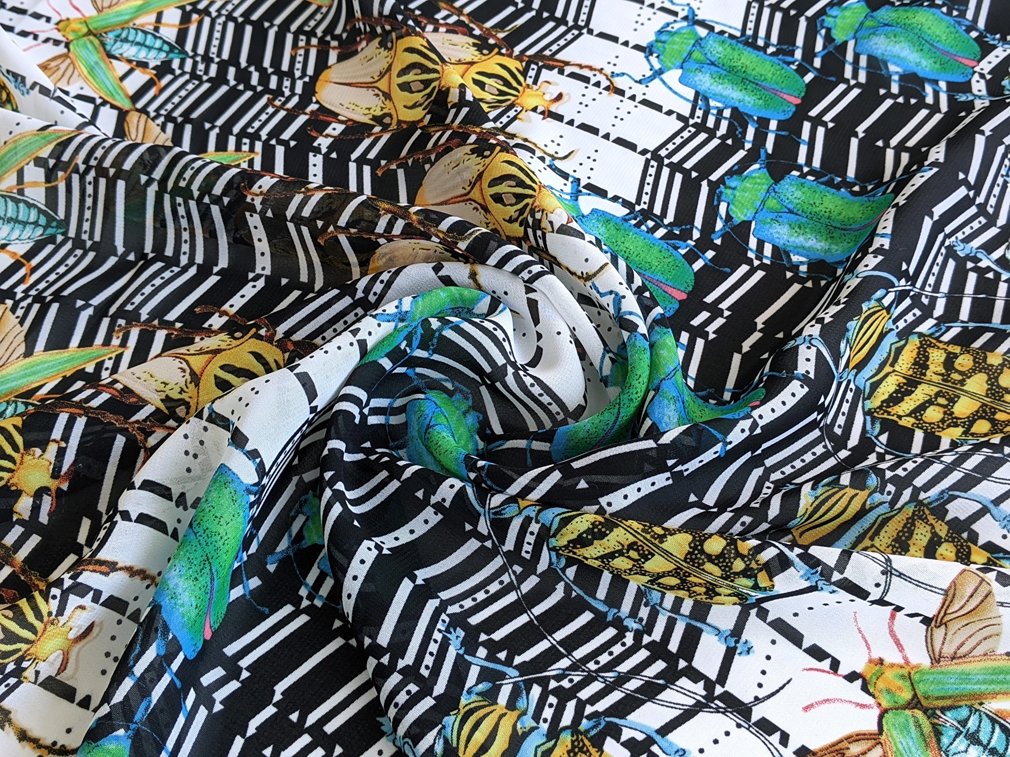 Шифон малюнок жуки, зелено-жовті